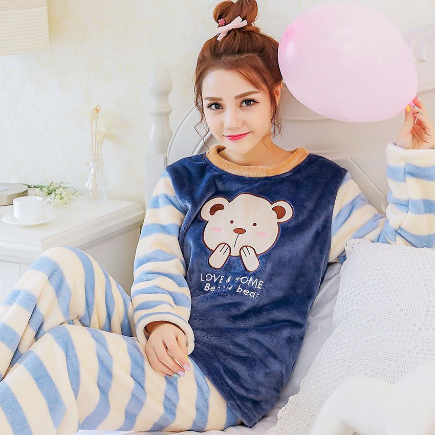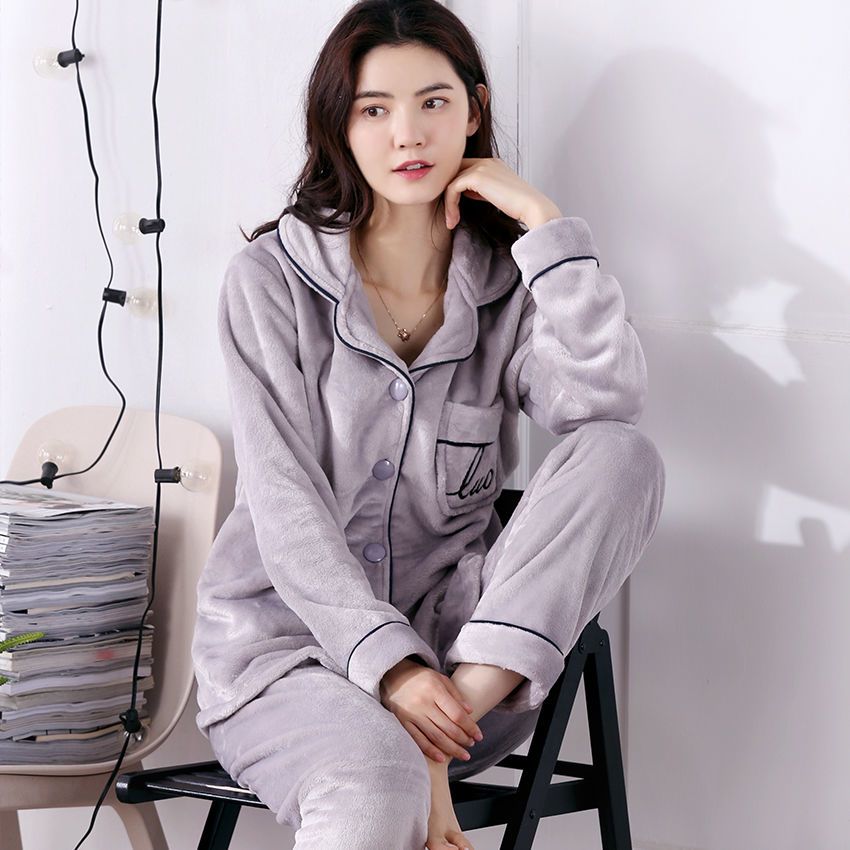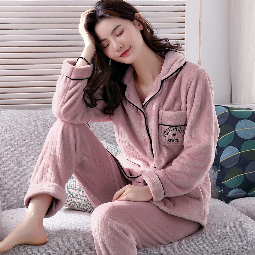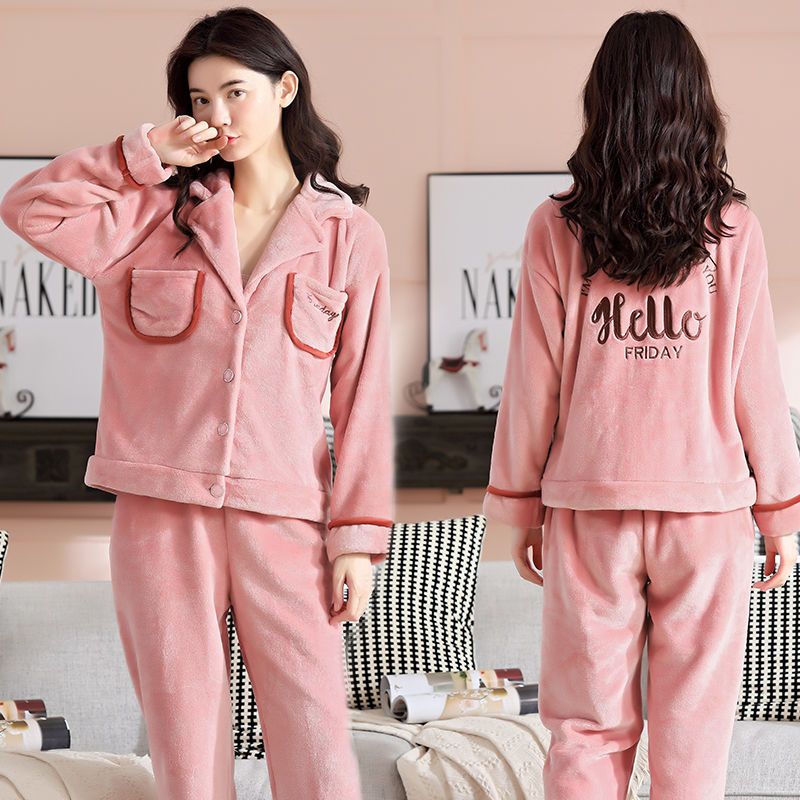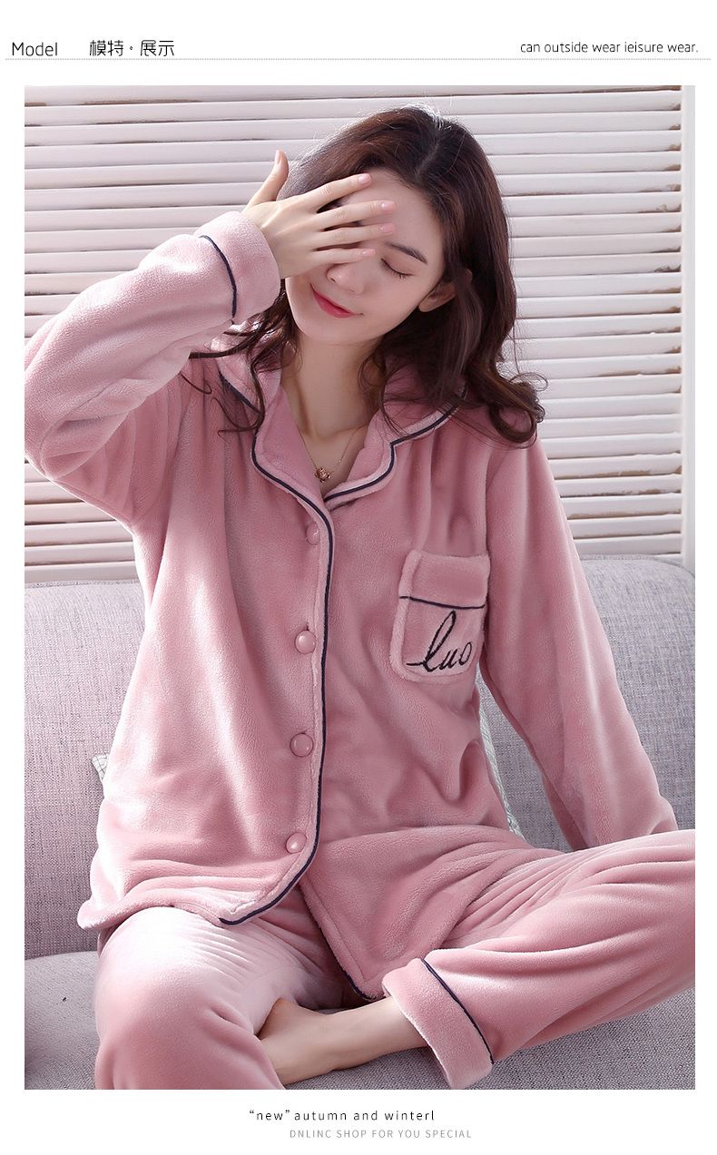 秋冬季珊瑚绒睡衣女冬加厚女士中年加绒法兰绒保暖内衣套装家居服