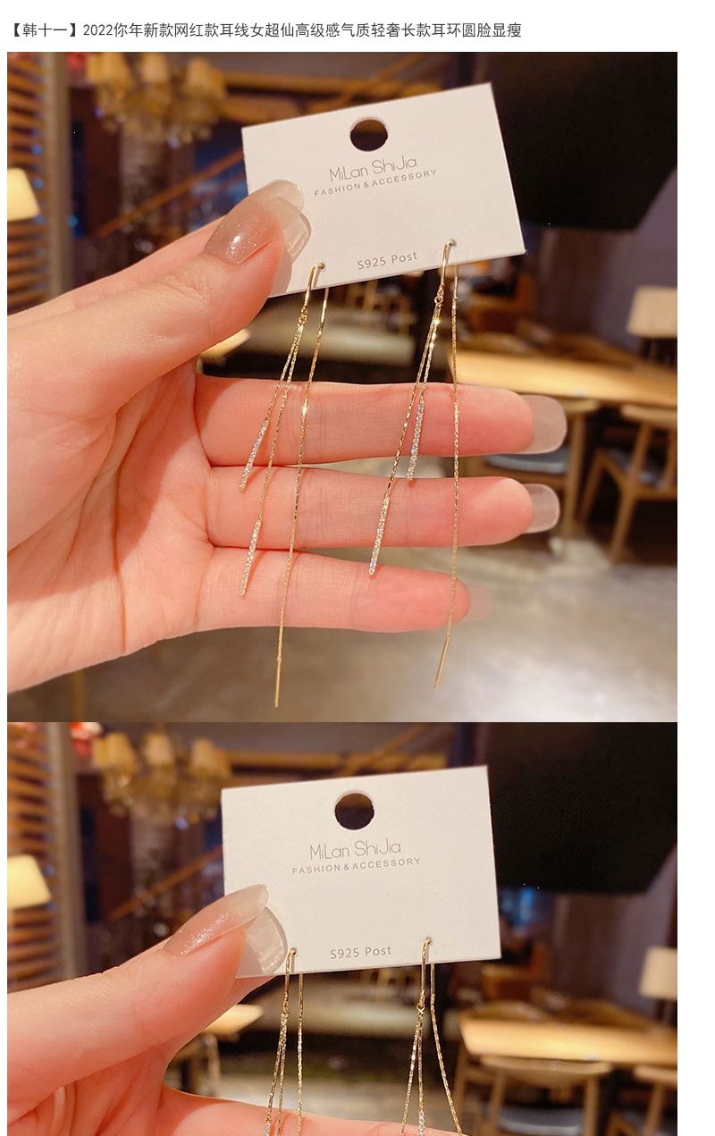 2024新款网红款耳线女超仙高级感气质轻奢长款耳环圆脸显瘦