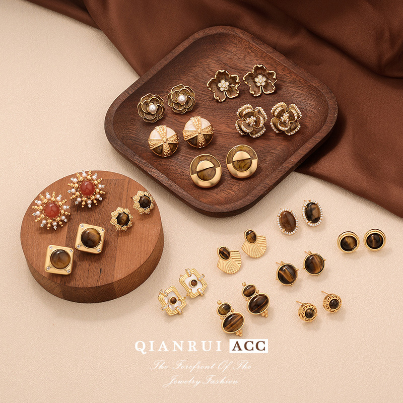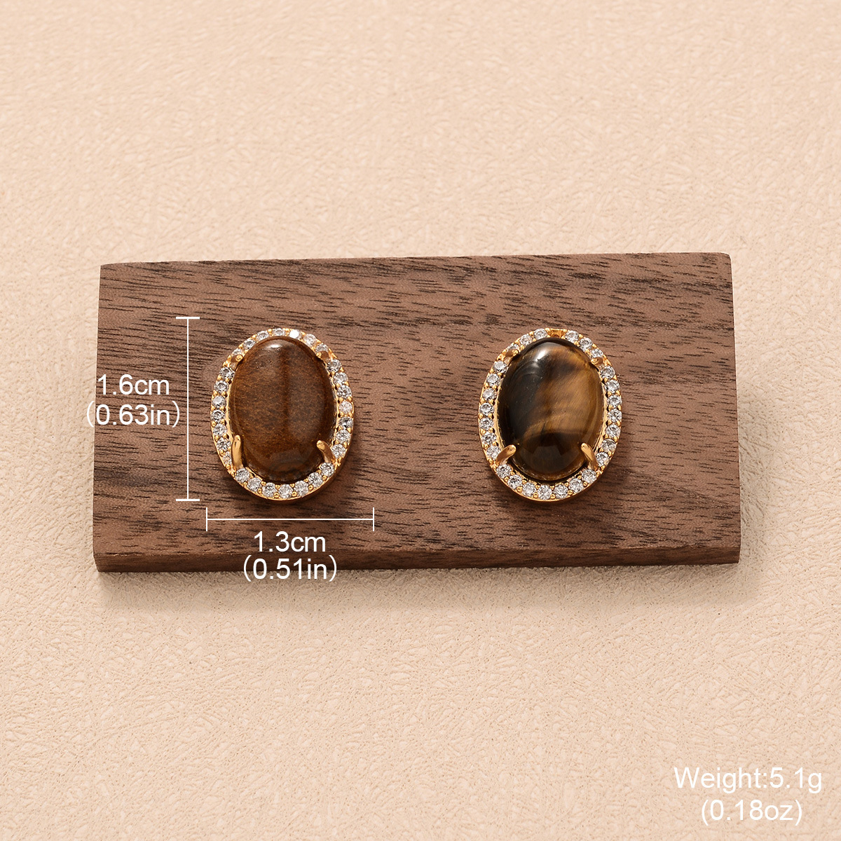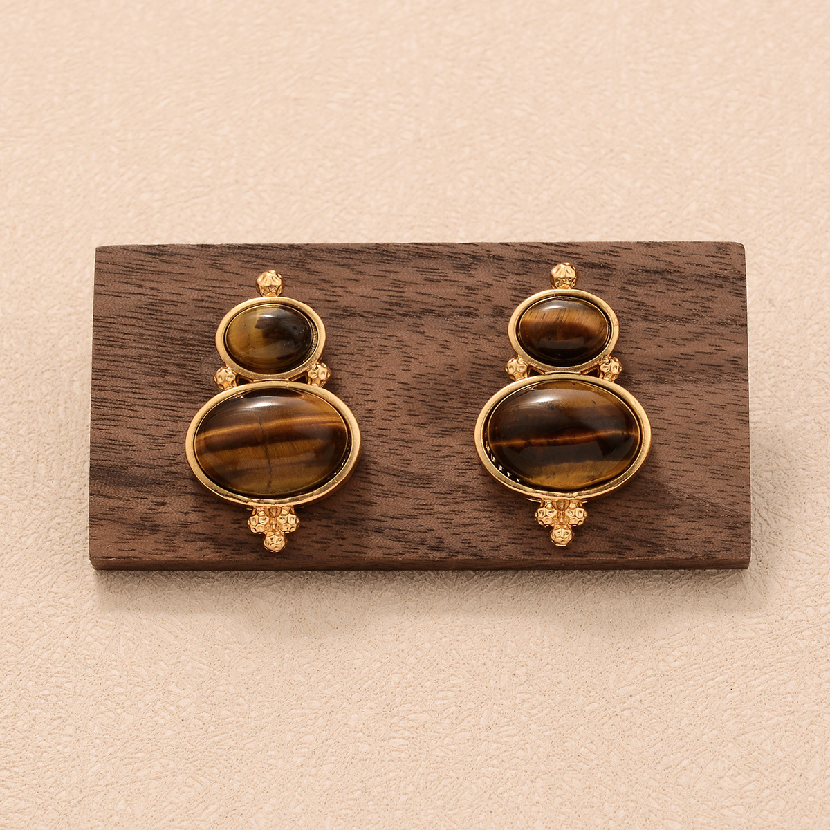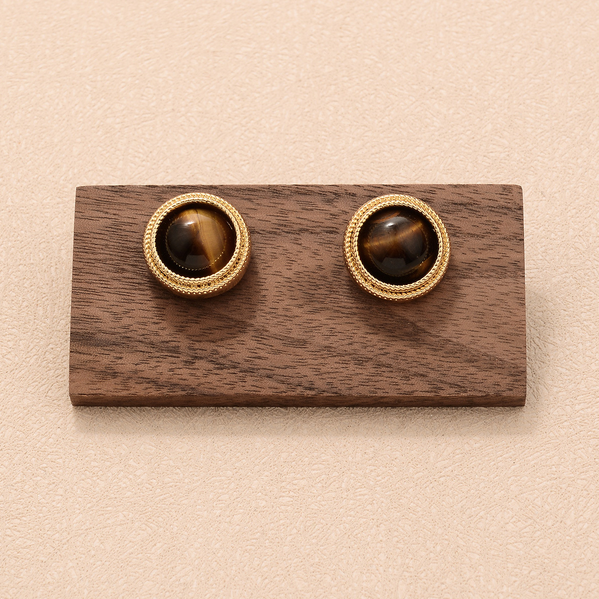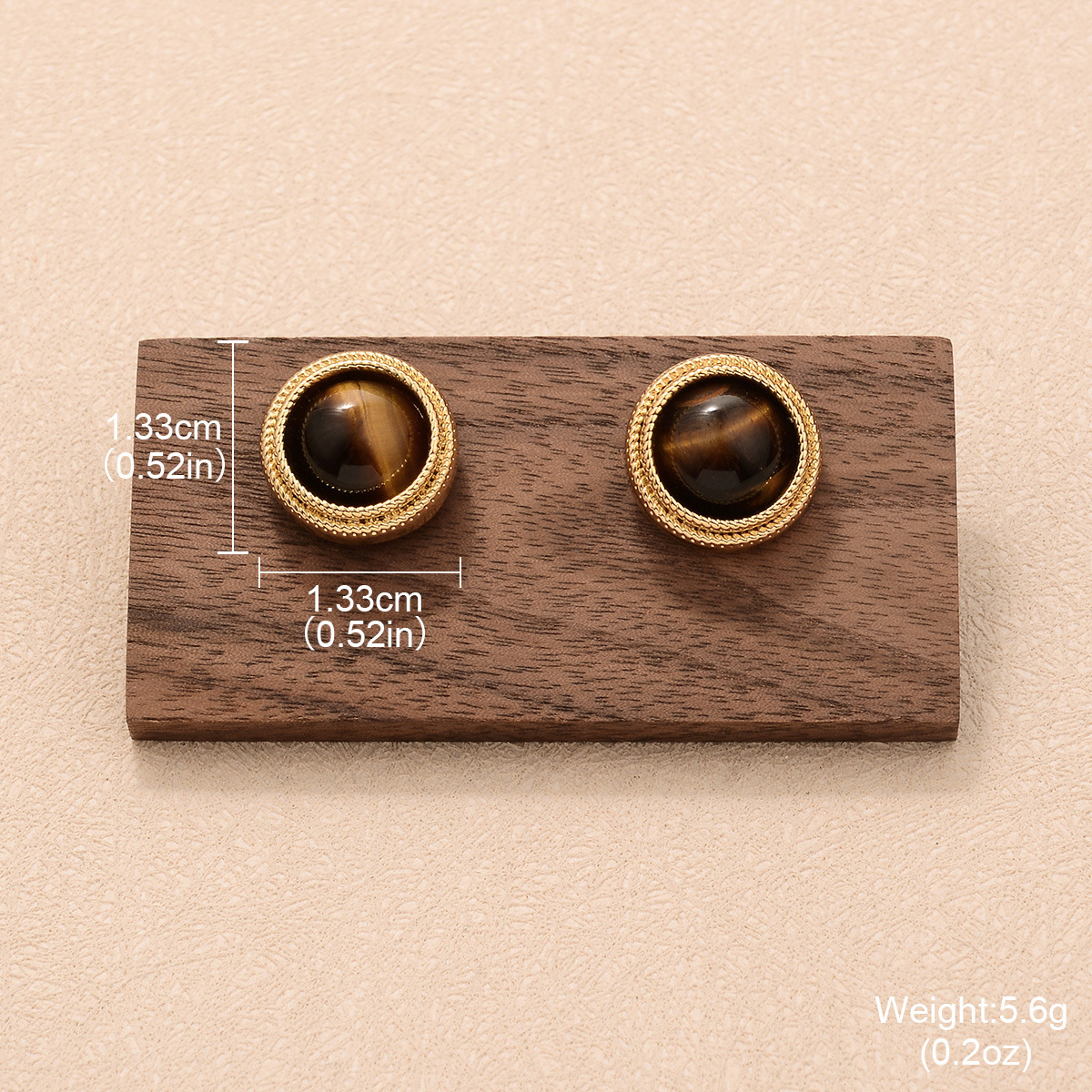 美拉德风秋冬耳环2024年文艺复古咖色虎眼显白氛围感耳钉复古简约