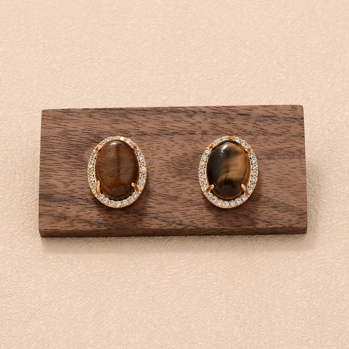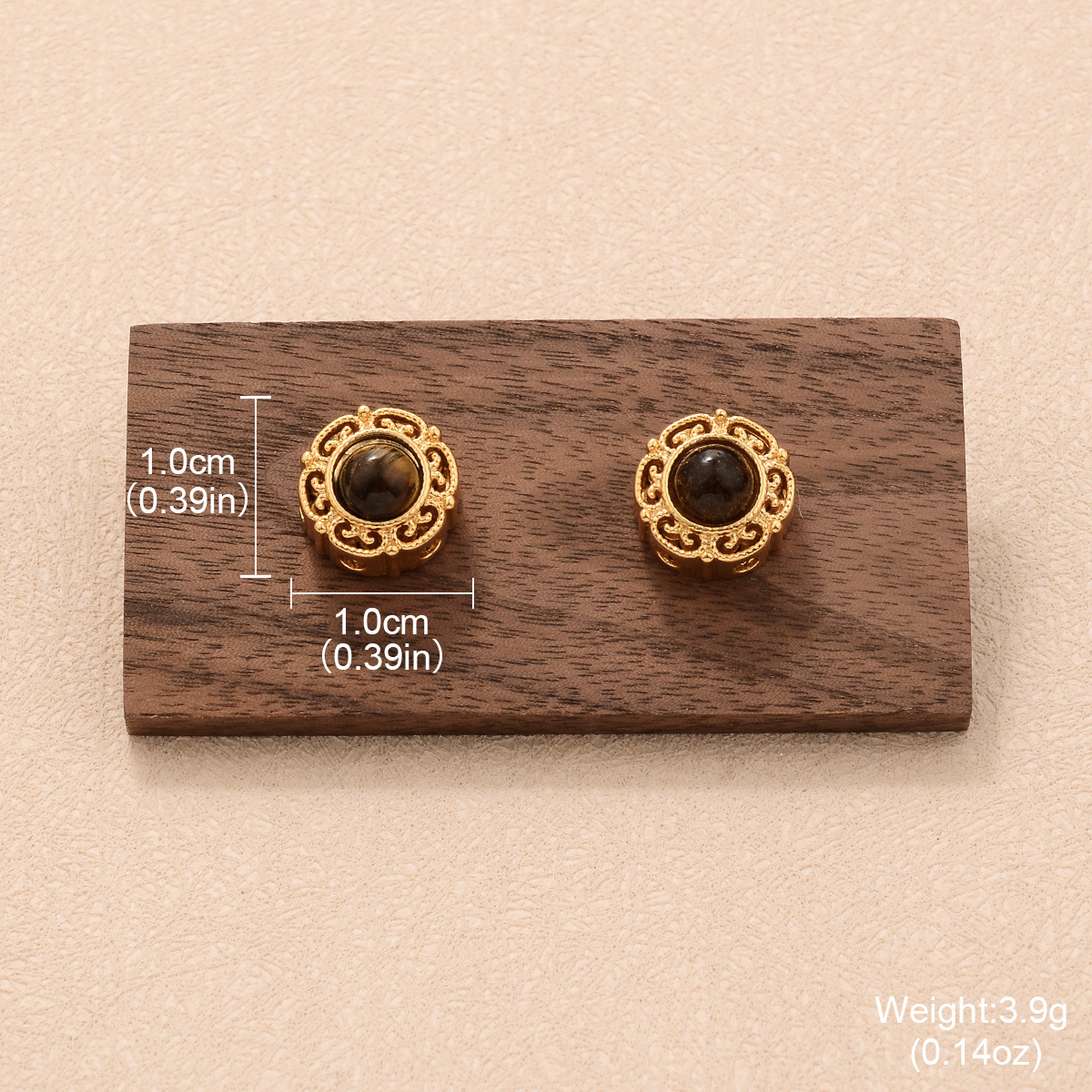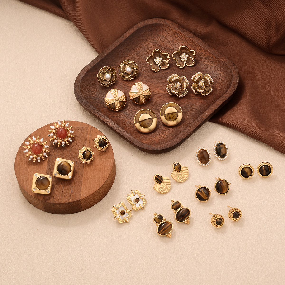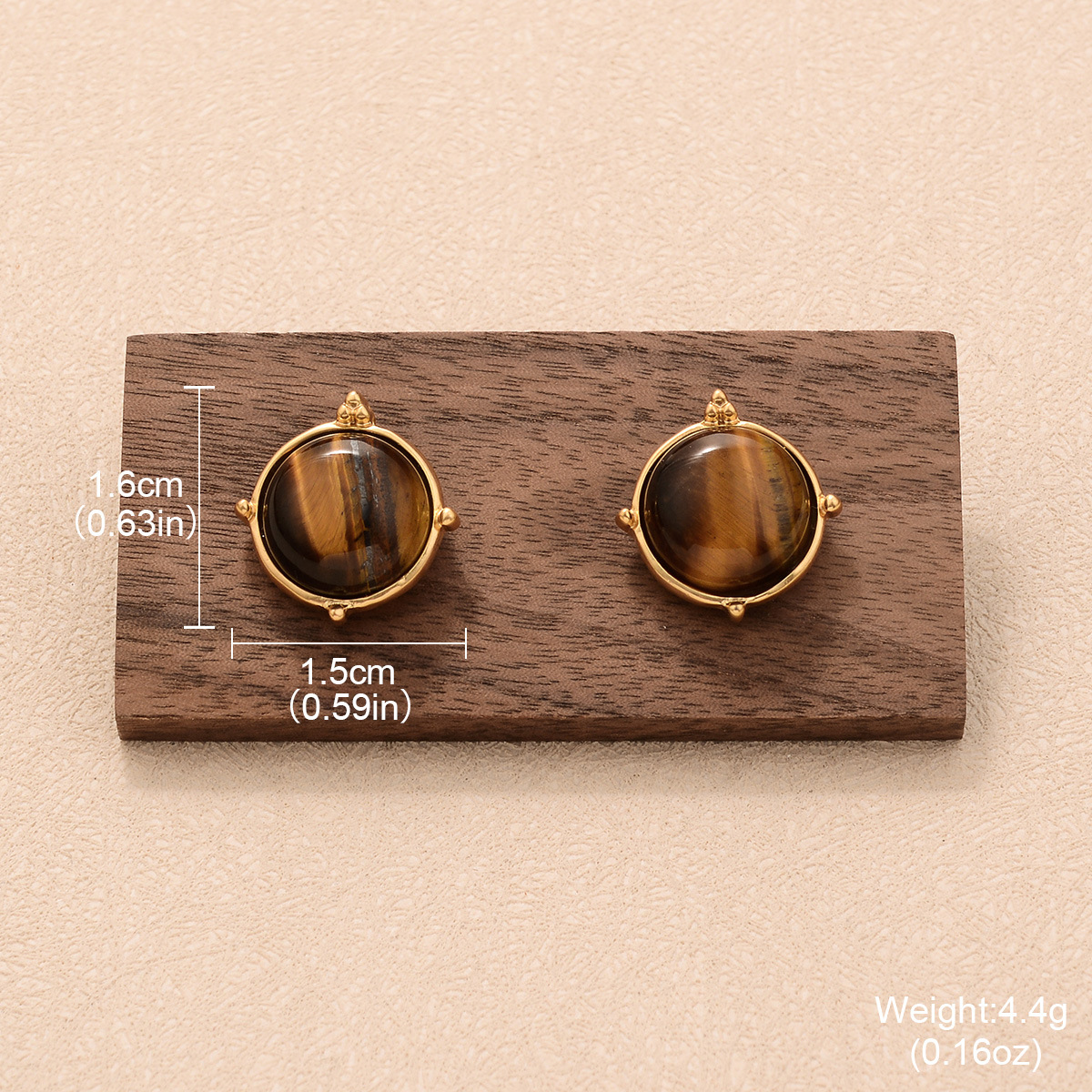 美拉德风秋冬耳环2024年文艺复古咖色虎眼显白氛围感耳钉复古简约