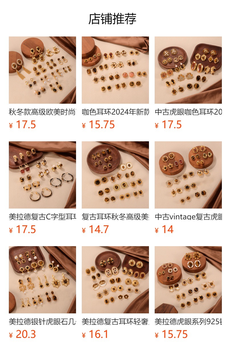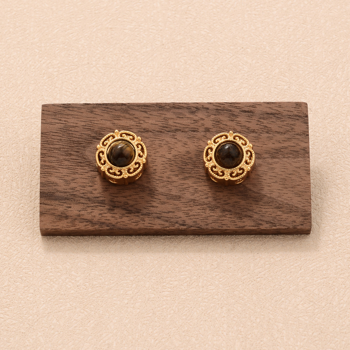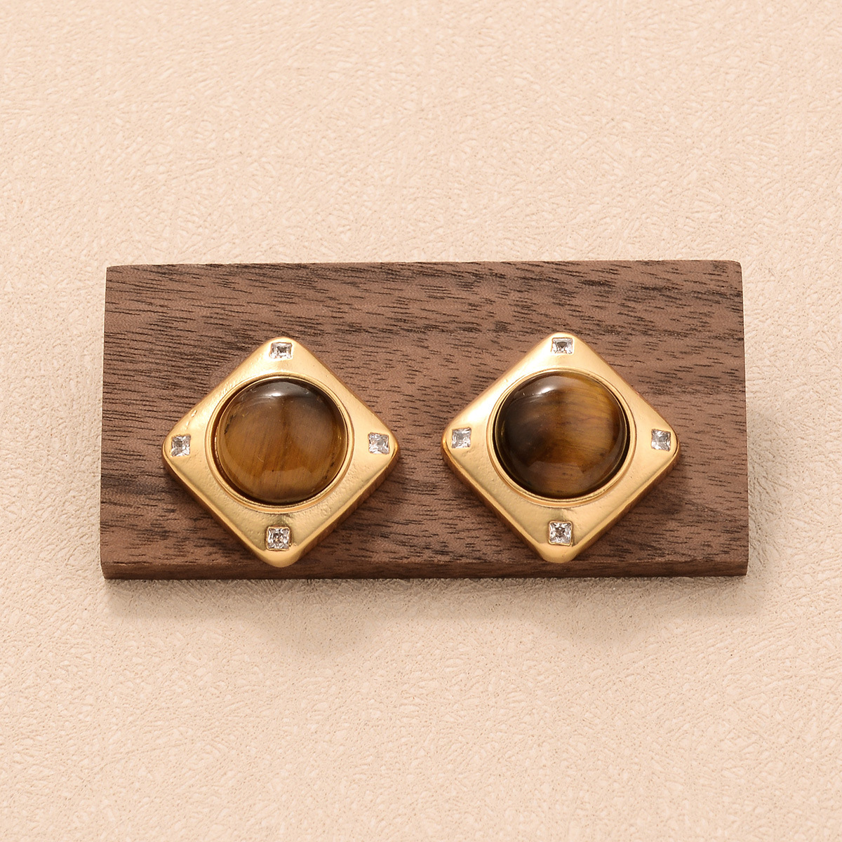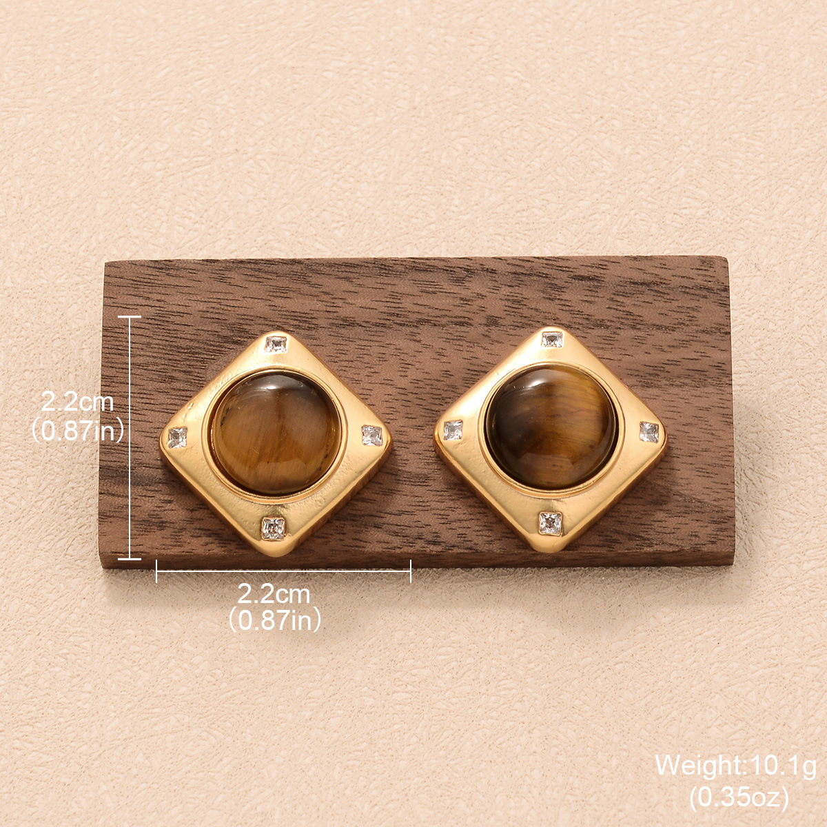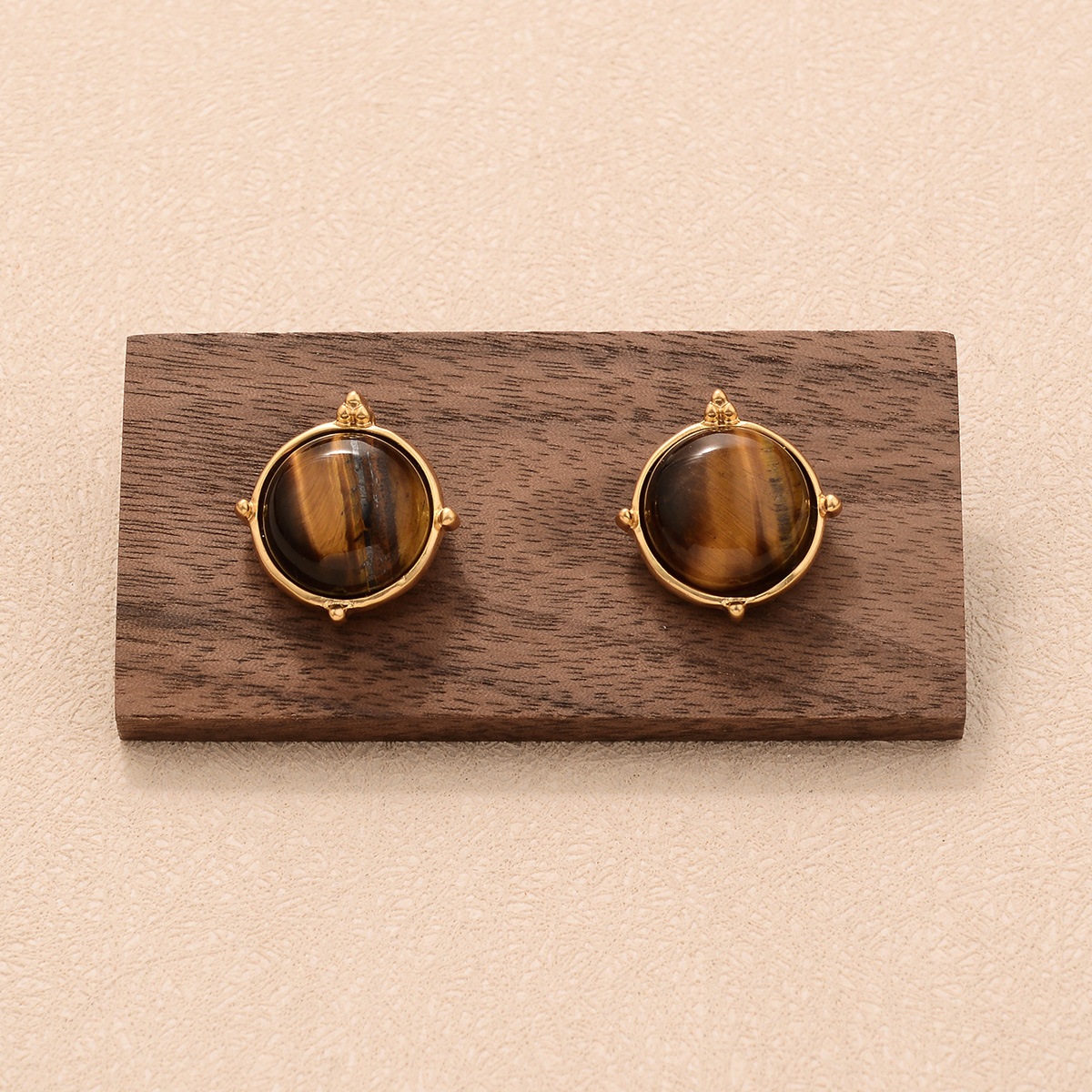 美拉德风秋冬耳环2024年文艺复古咖色虎眼显白氛围感耳钉复古简约