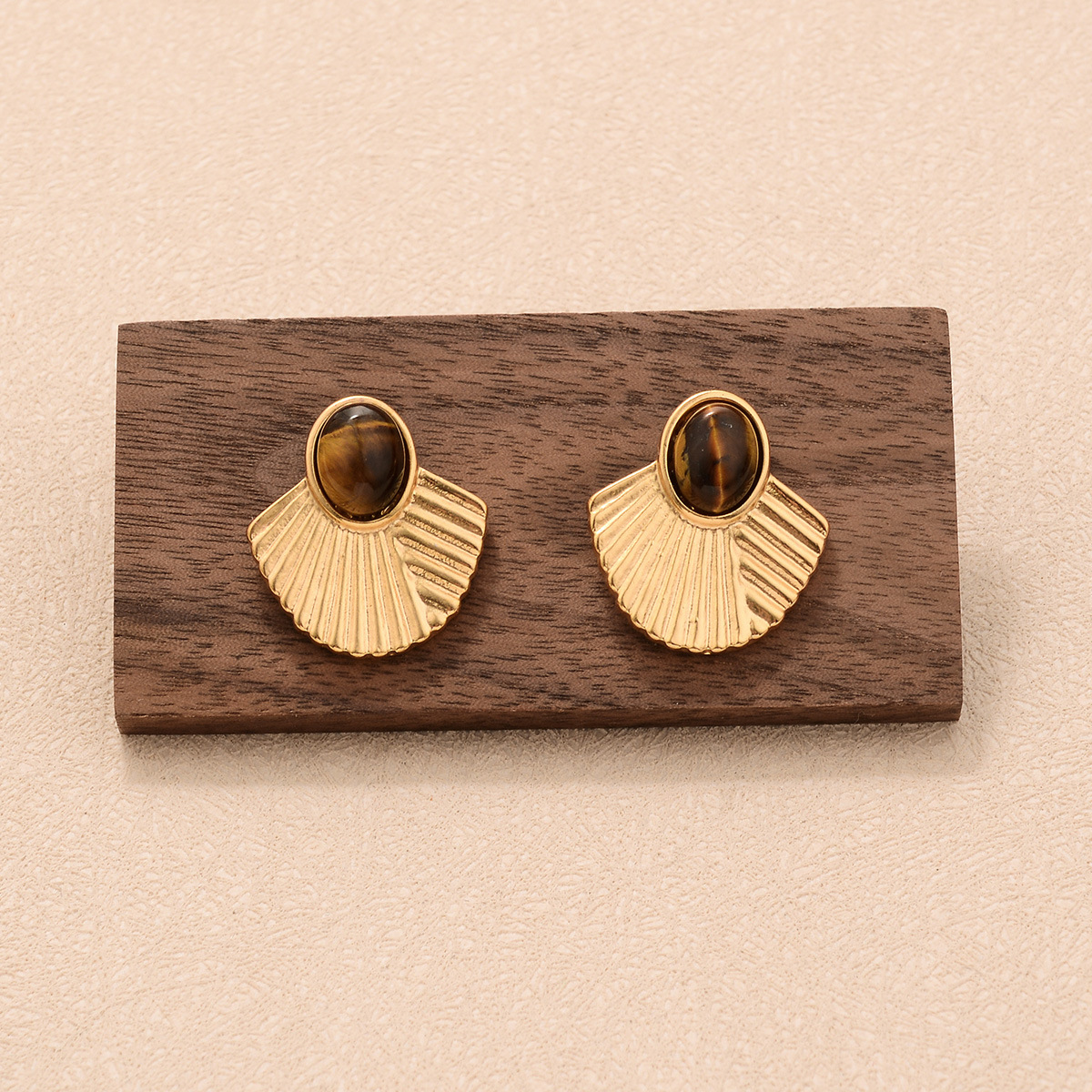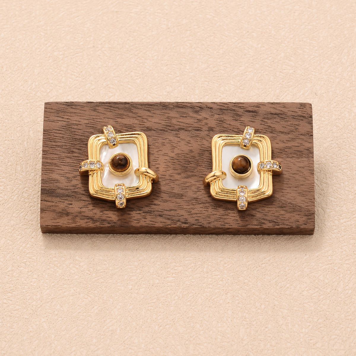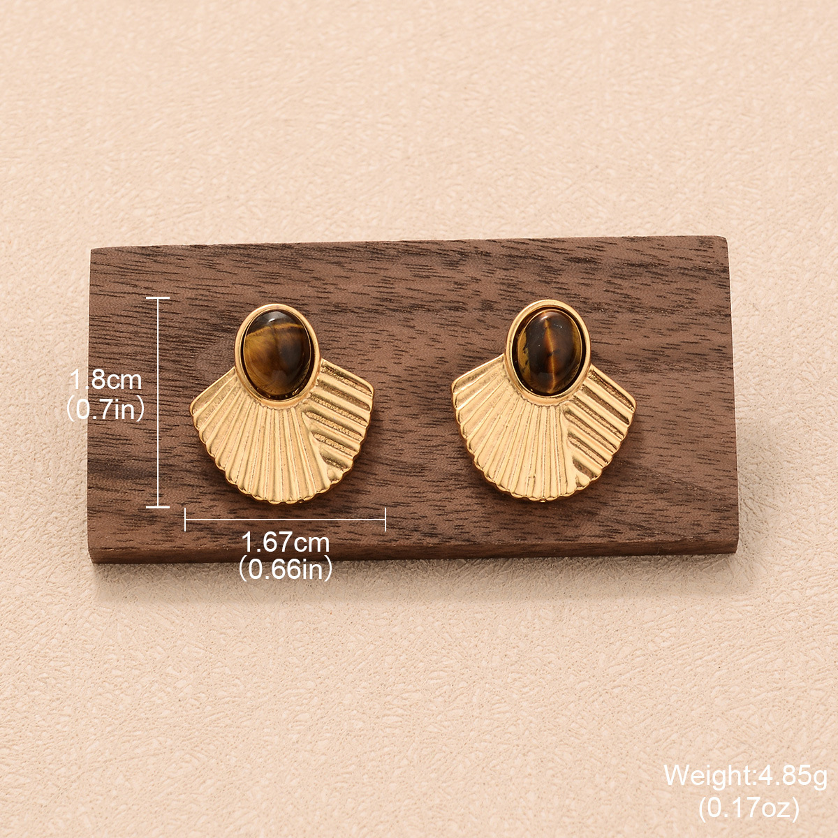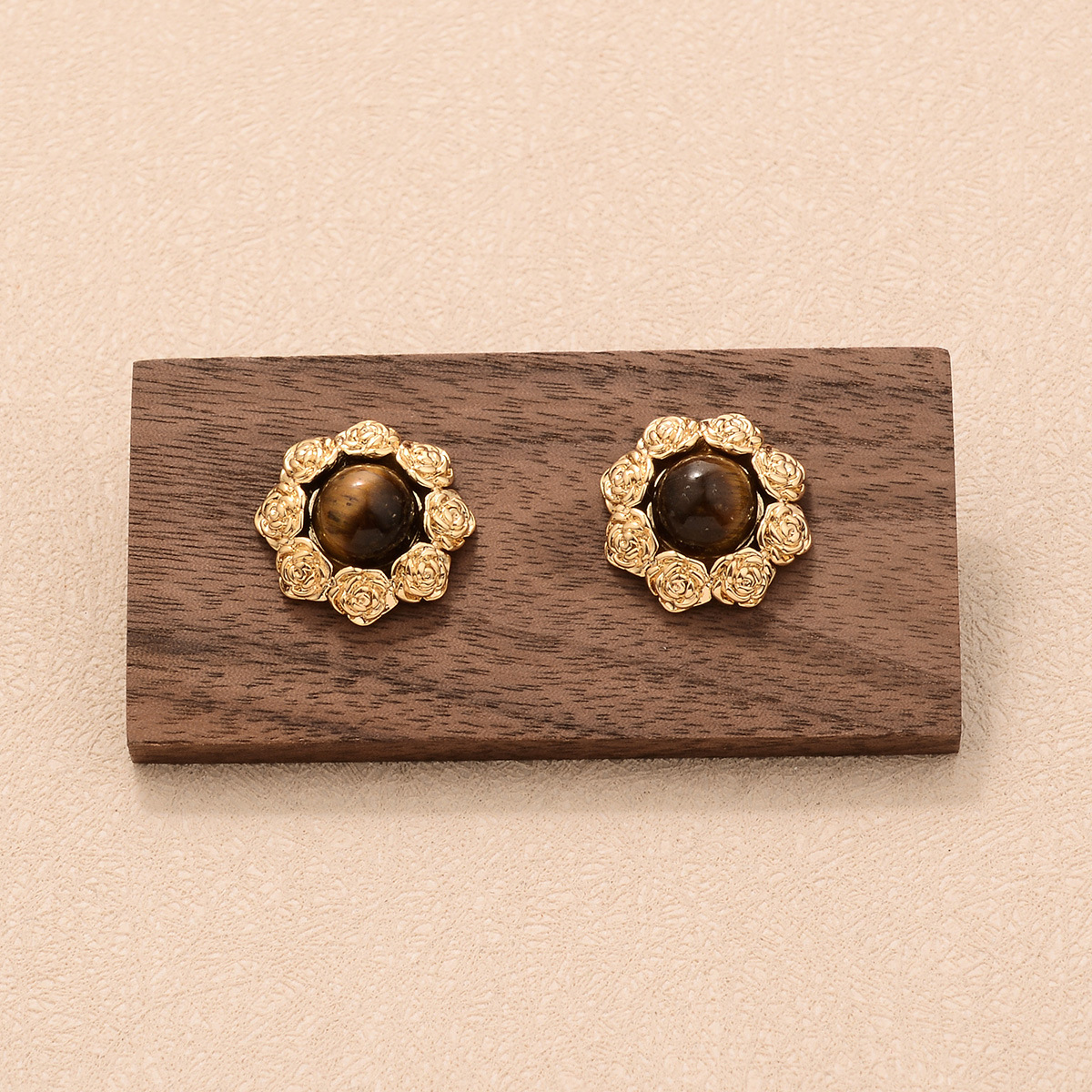 美拉德风秋冬耳环2024年文艺复古咖色虎眼显白氛围感耳钉复古简约