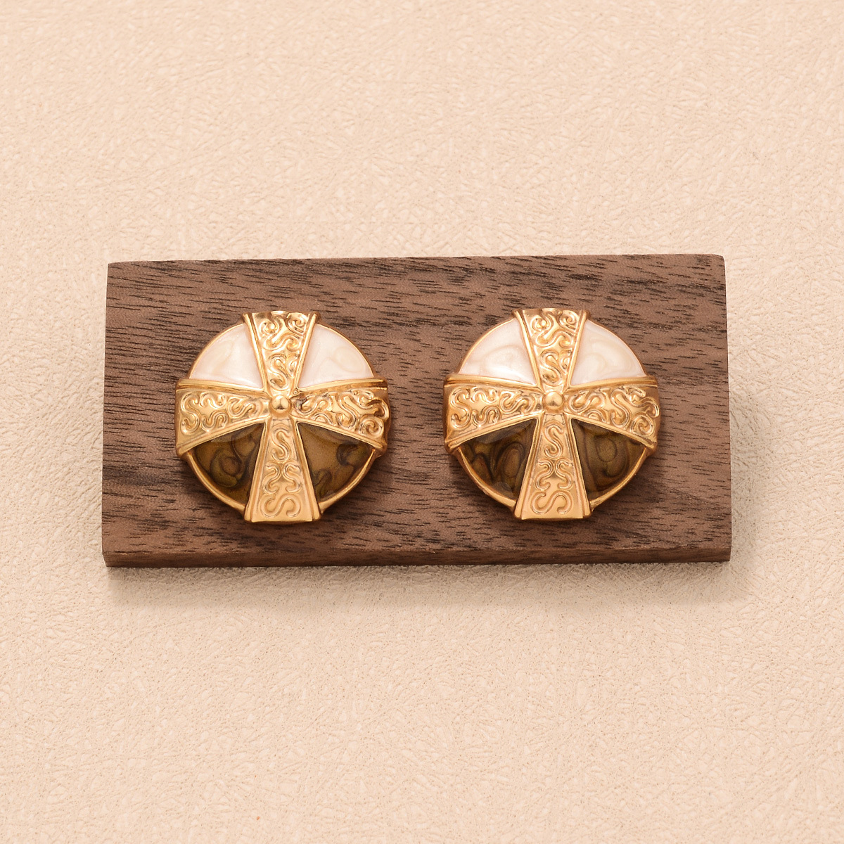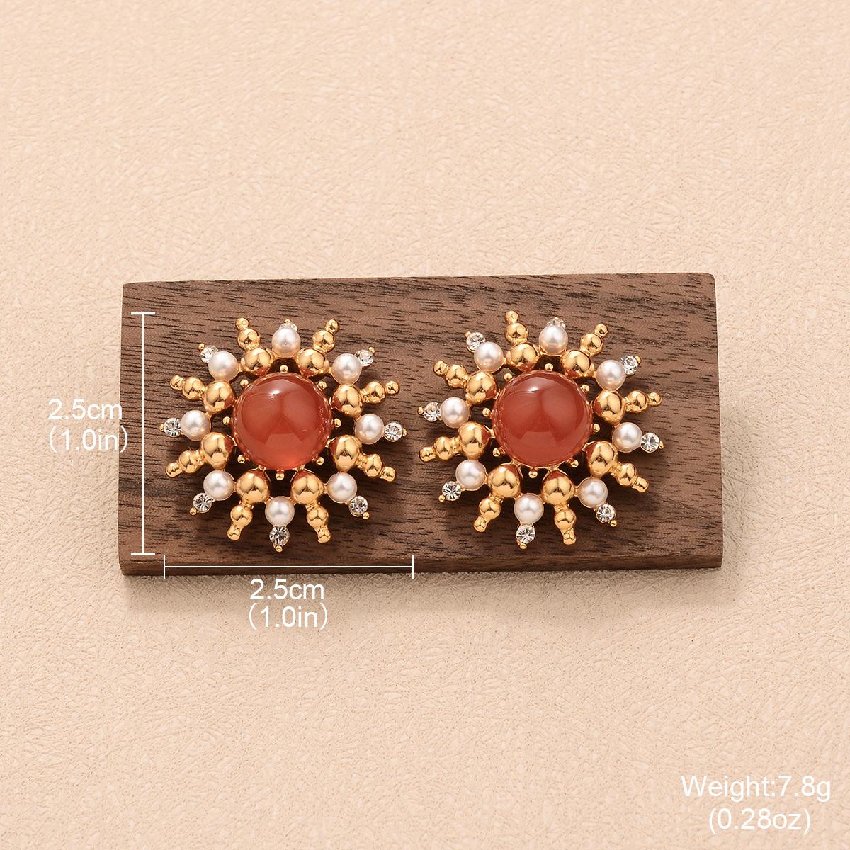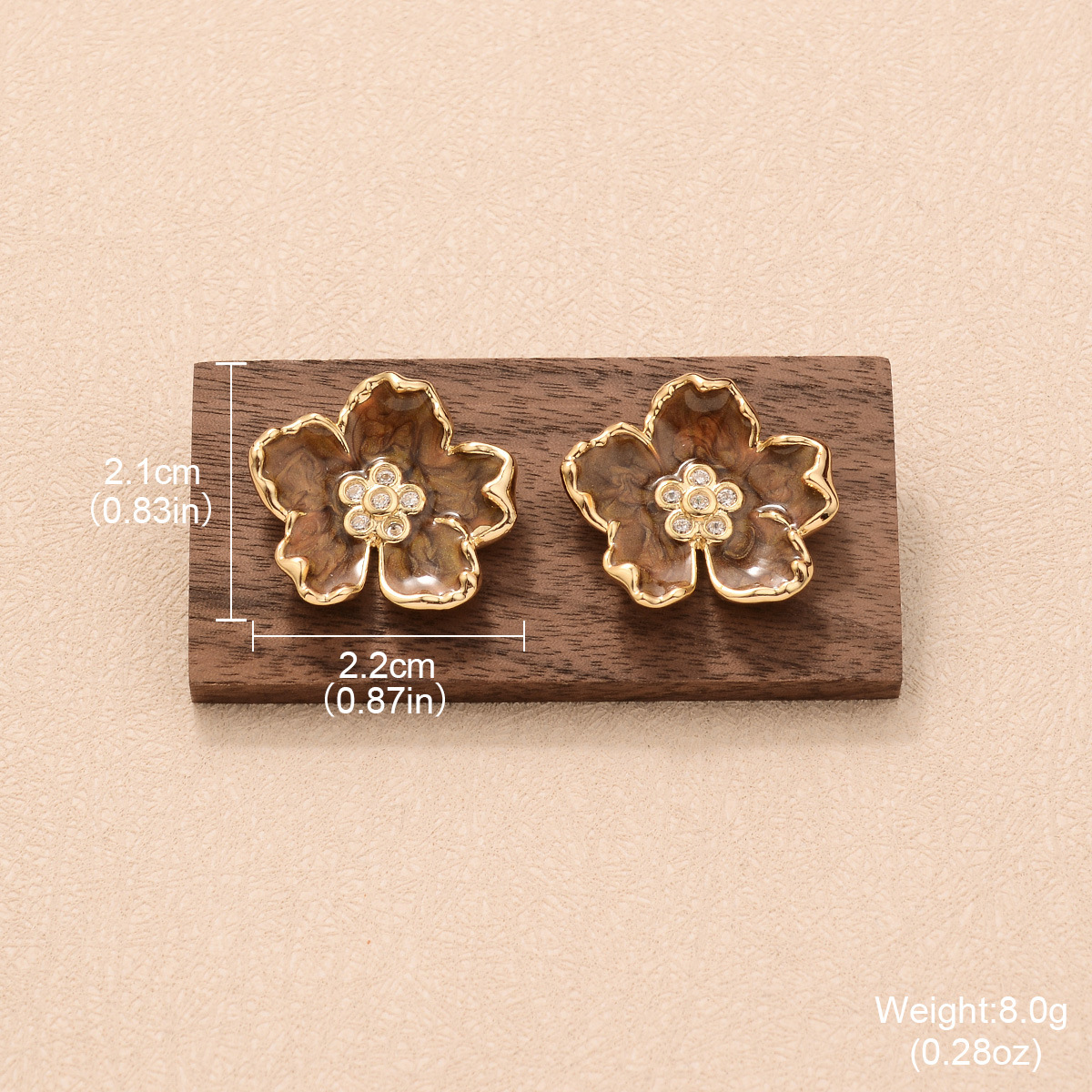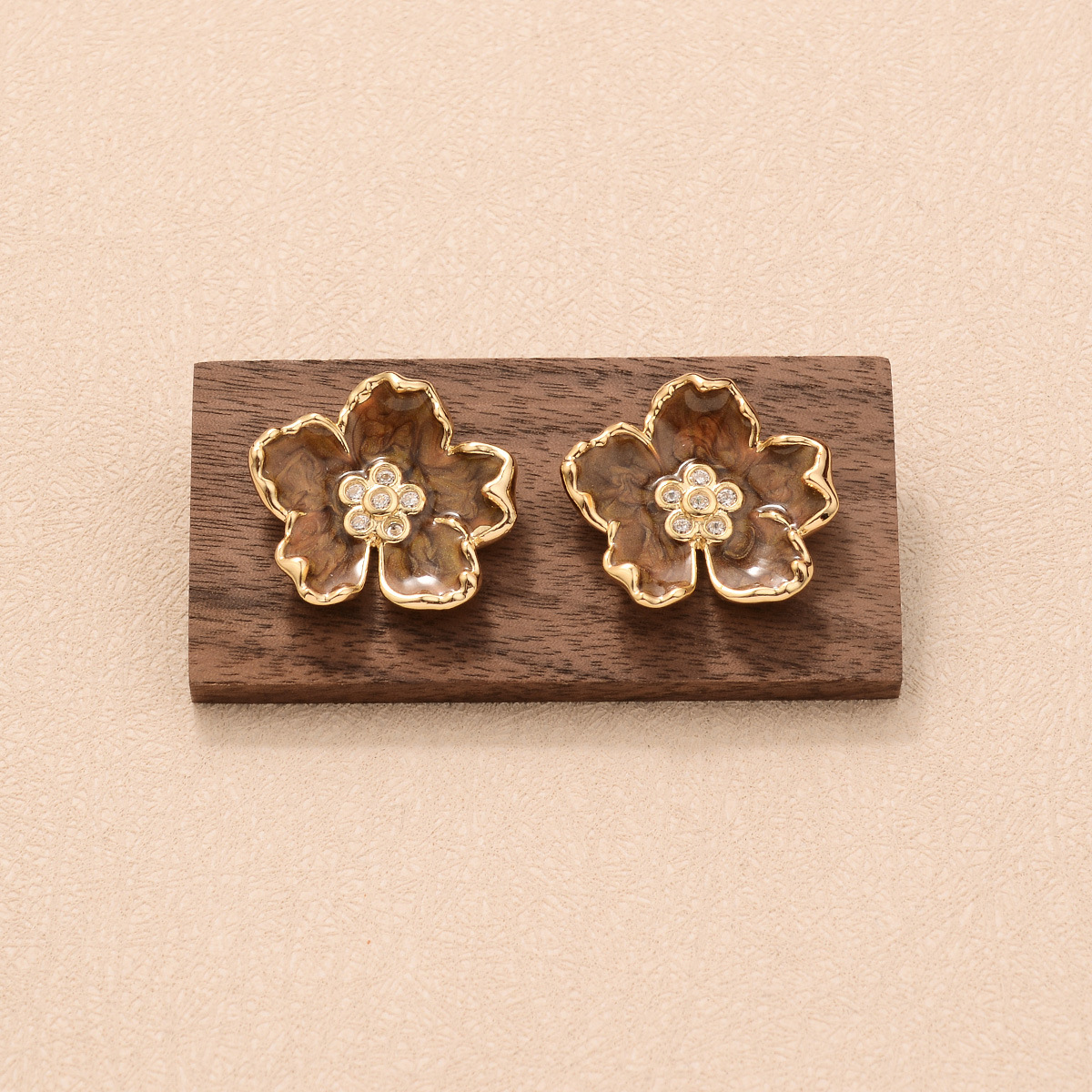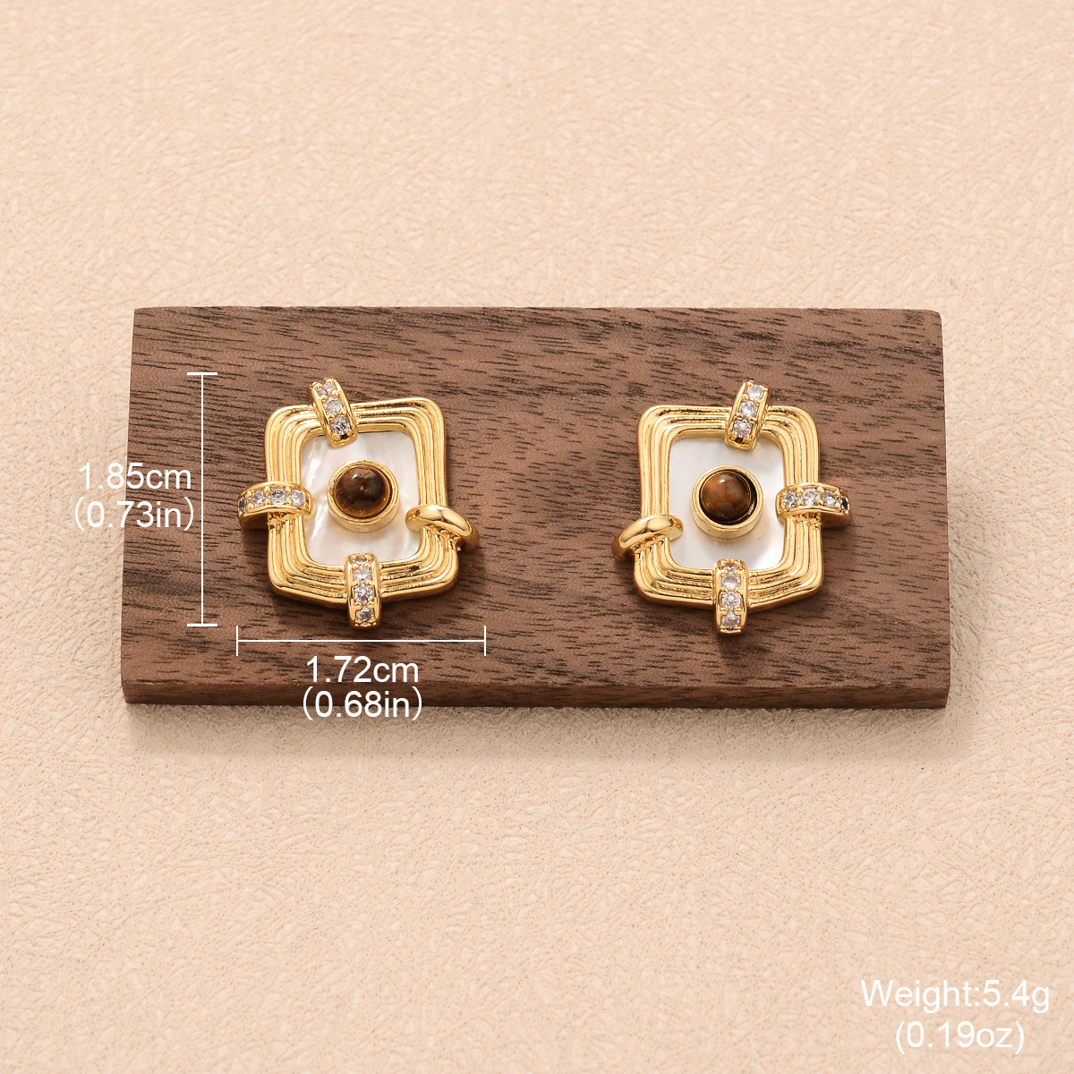美拉德风秋冬耳环2024年文艺复古咖色虎眼显白氛围感耳钉复古简约