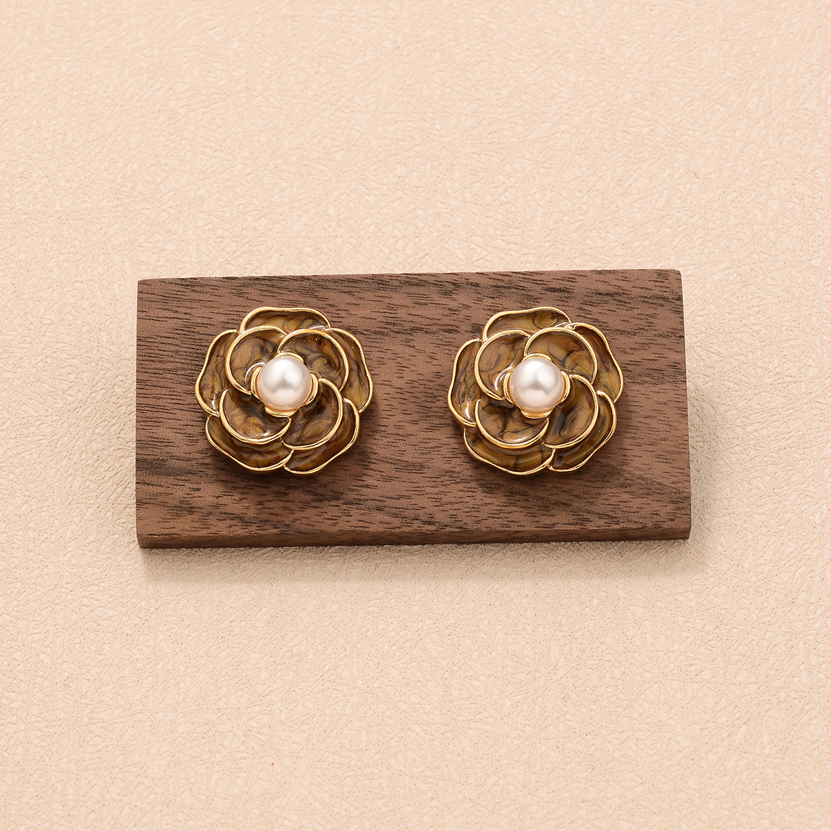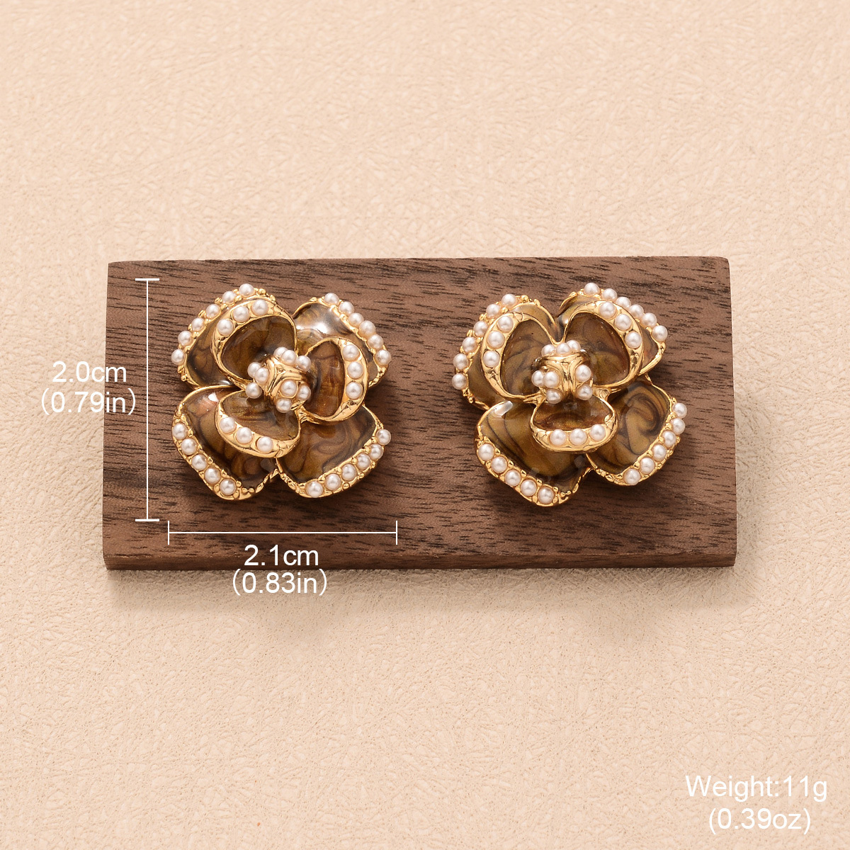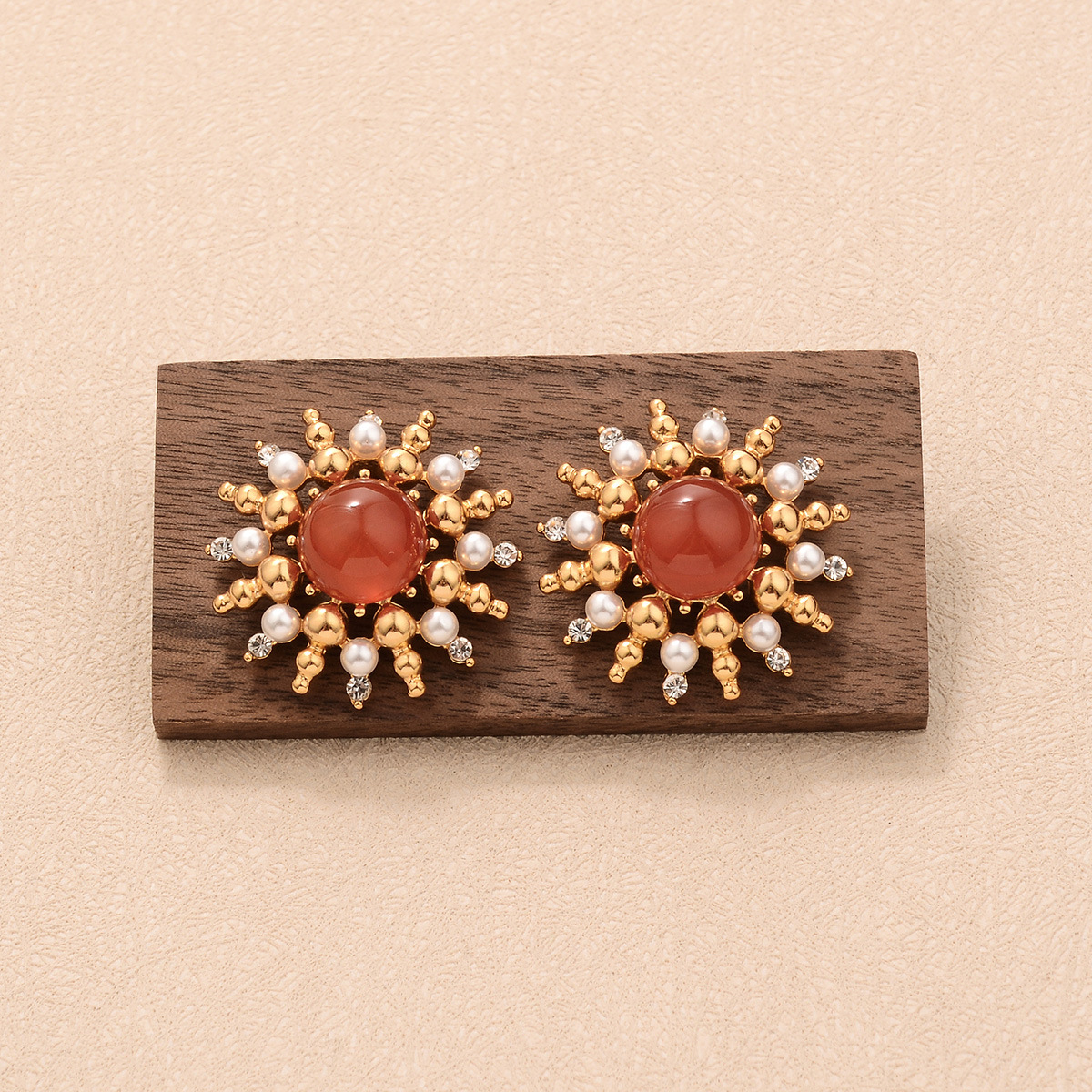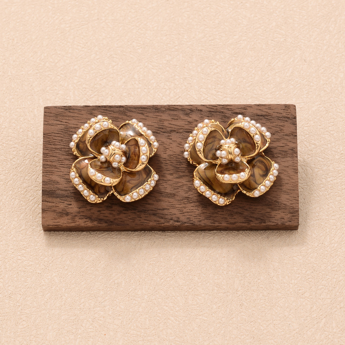 美拉德风秋冬耳环2024年文艺复古咖色虎眼显白氛围感耳钉复古简约