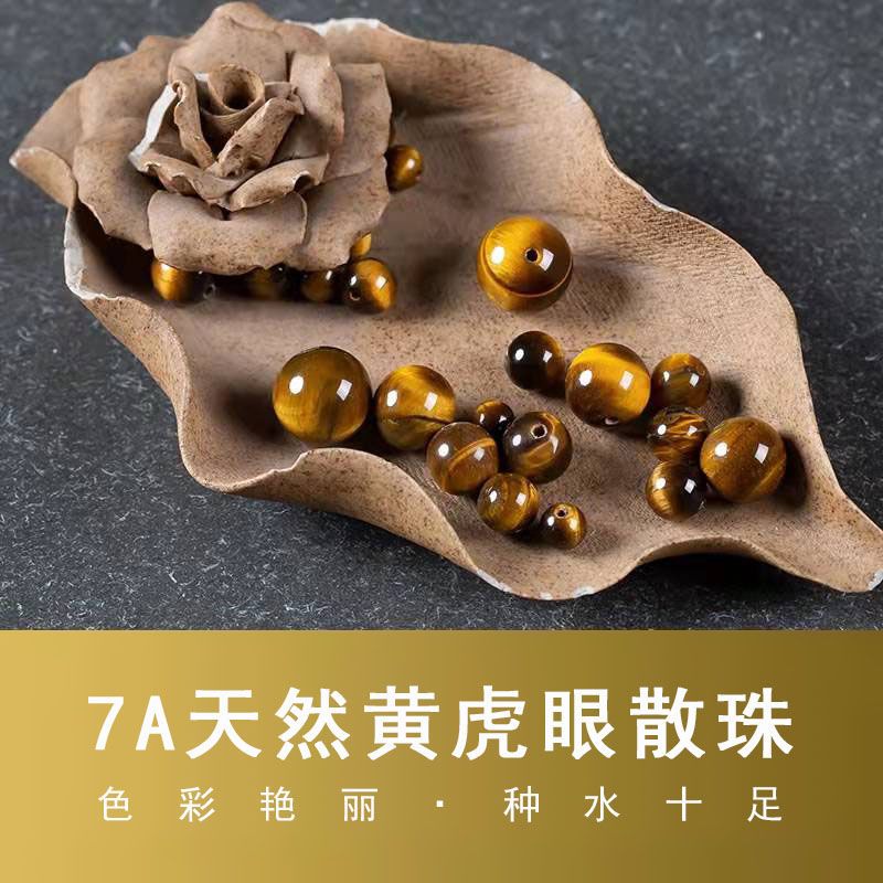 7A天然黄虎眼石虎睛石木变石散珠diy饰品串珠半成品手链材料配饰