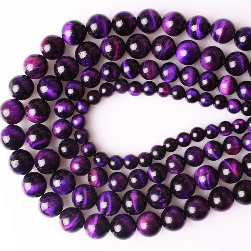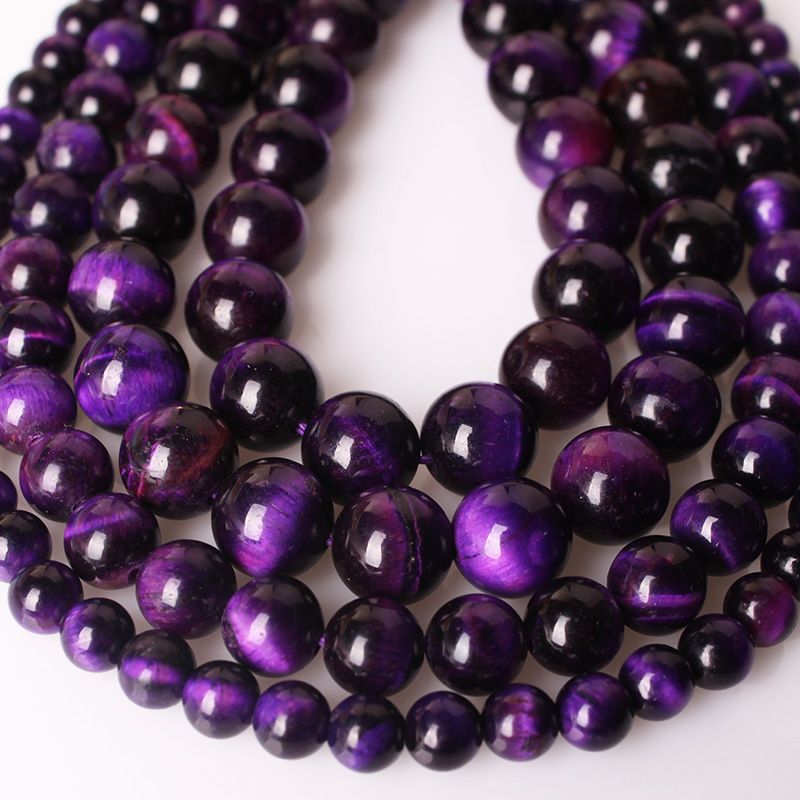 7A天然紫色虎眼石散珠虎睛石圆珠半成品diy手工编织手链项链配件