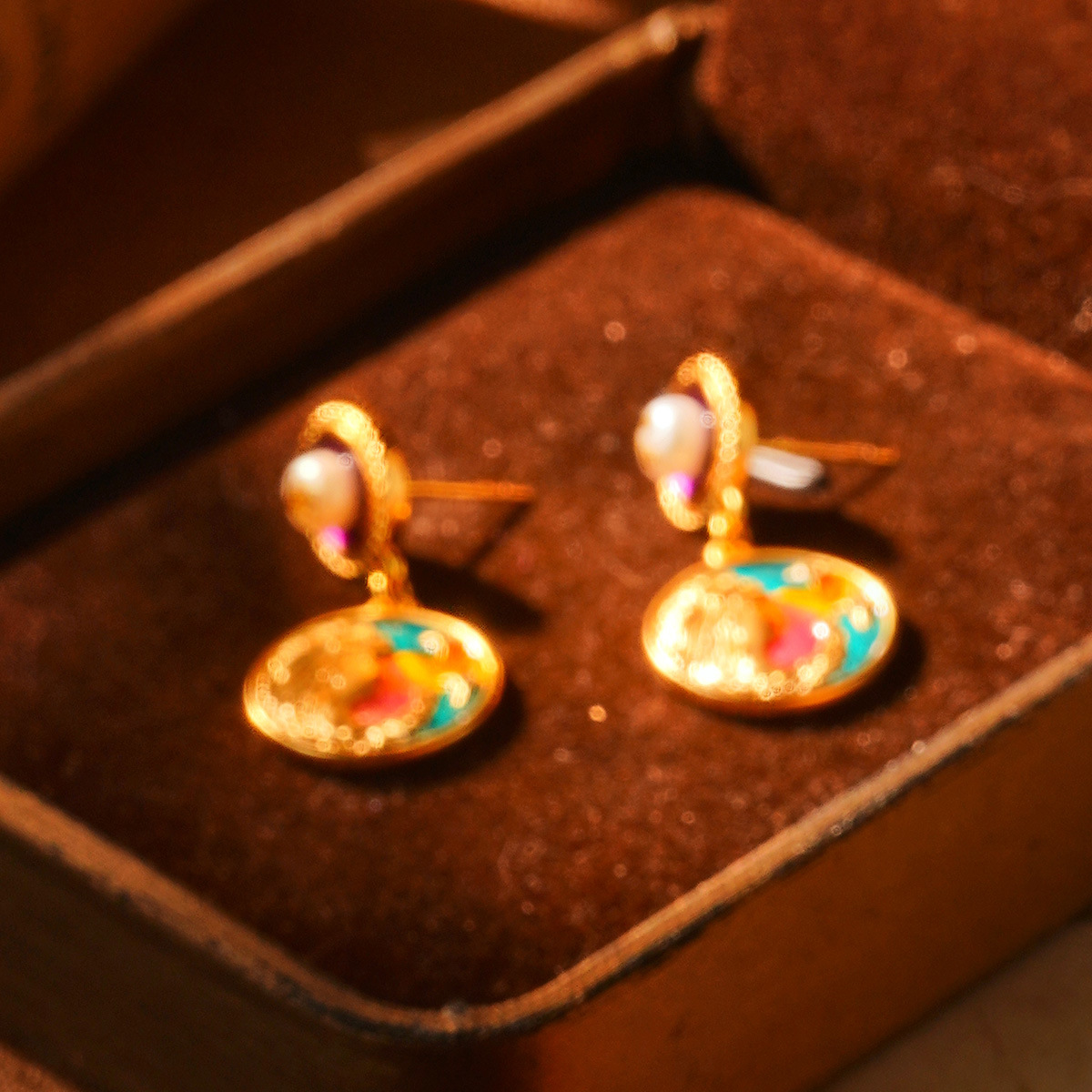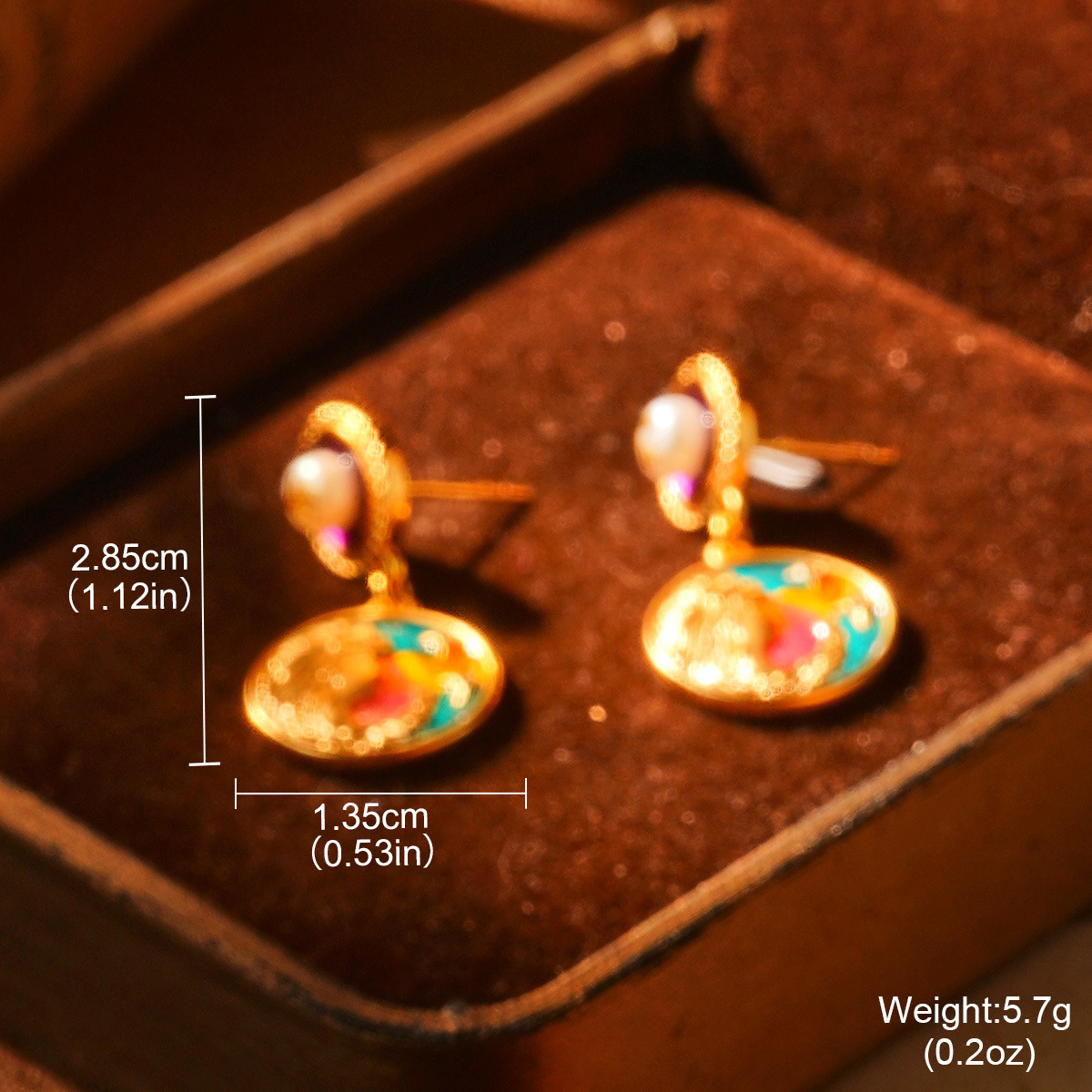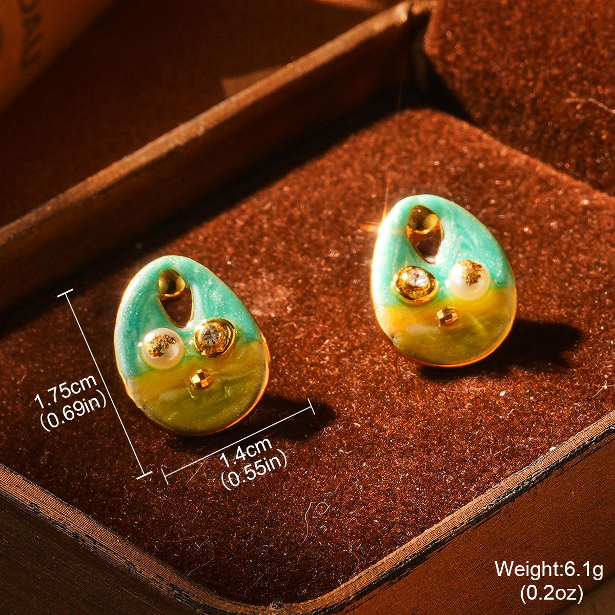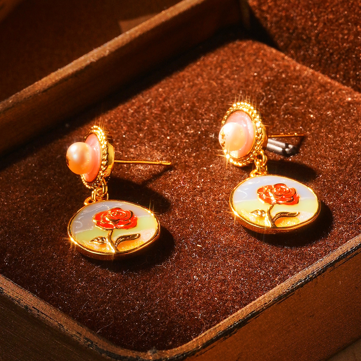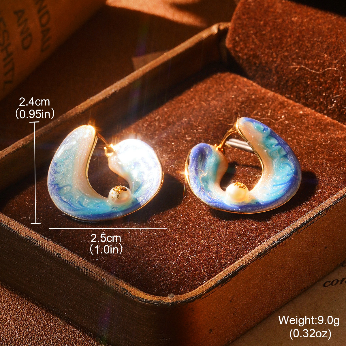 复古法式珐琅耳环小众高级油画系列天然珍珠耳钉小众银针耳饰批发