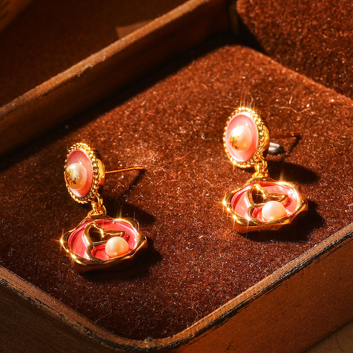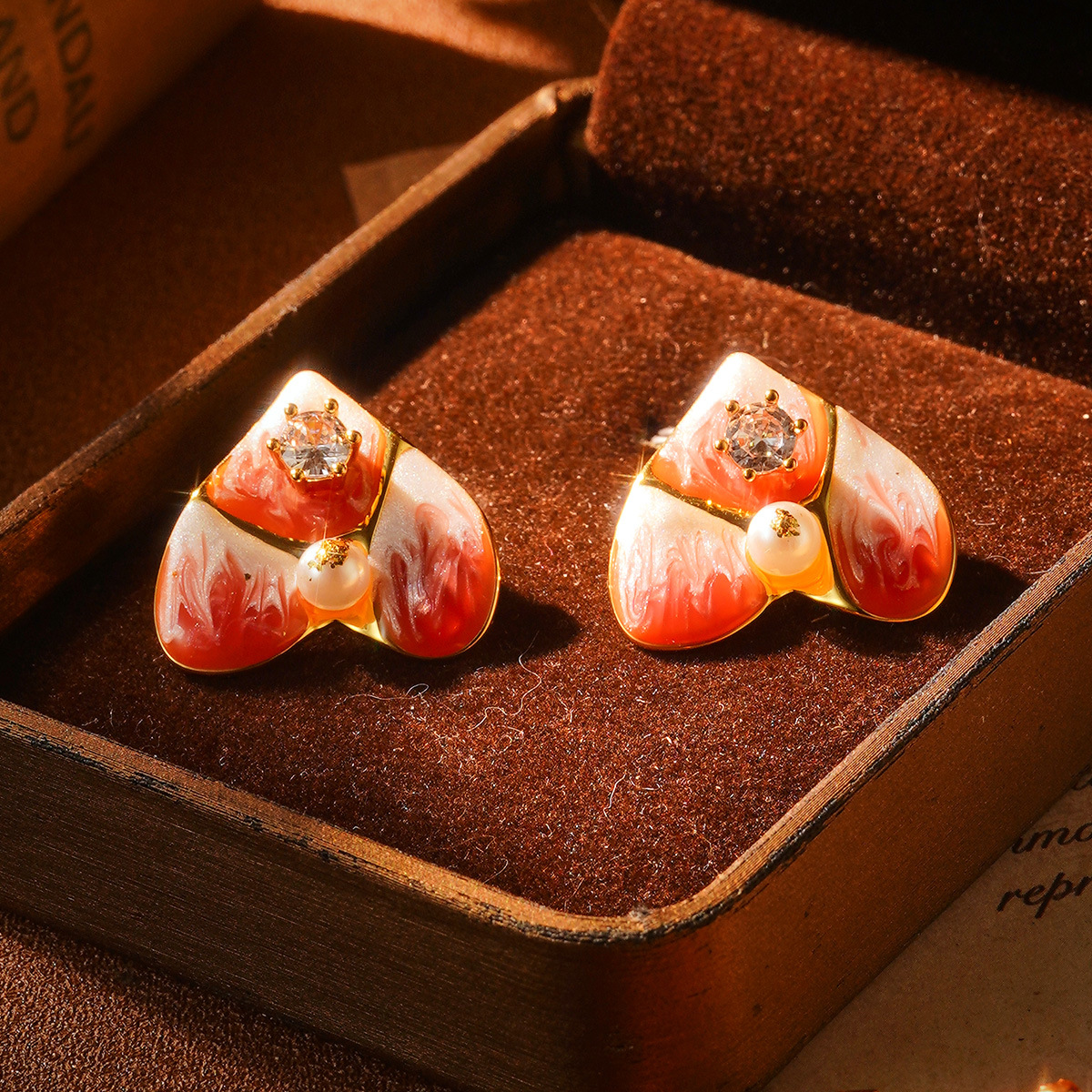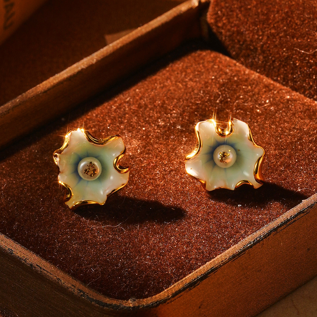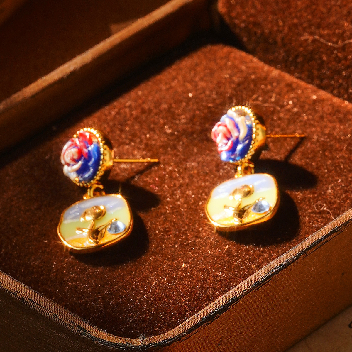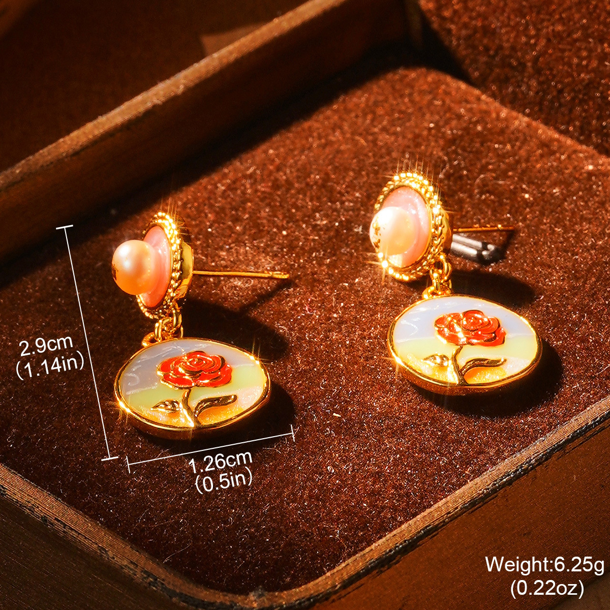 复古法式珐琅耳环小众高级油画系列天然珍珠耳钉小众银针耳饰批发
