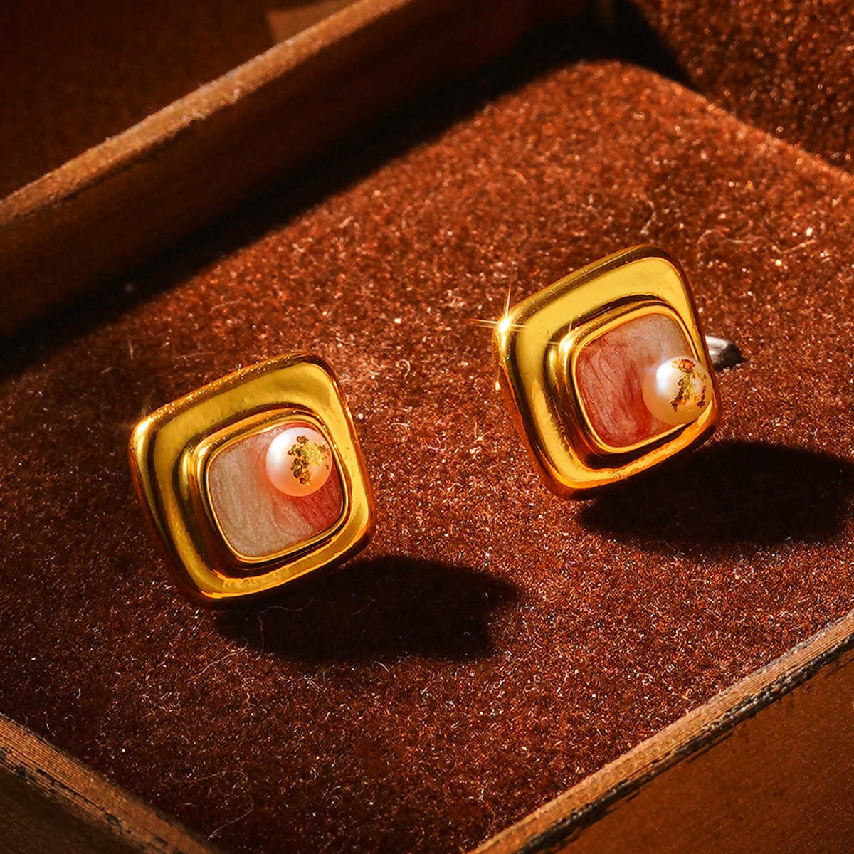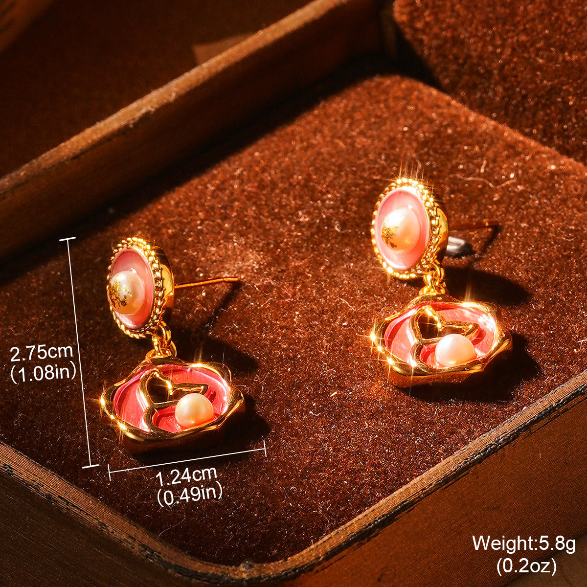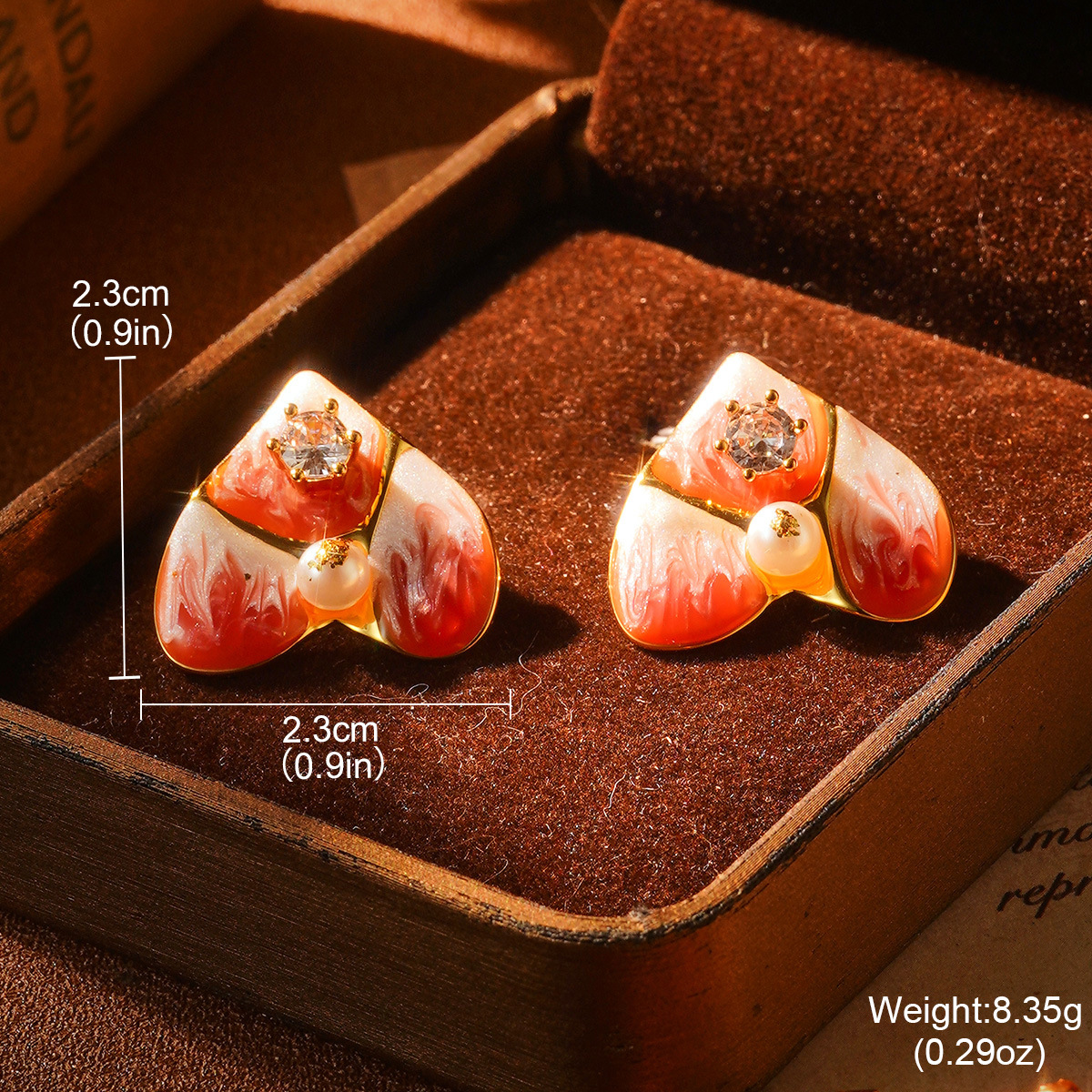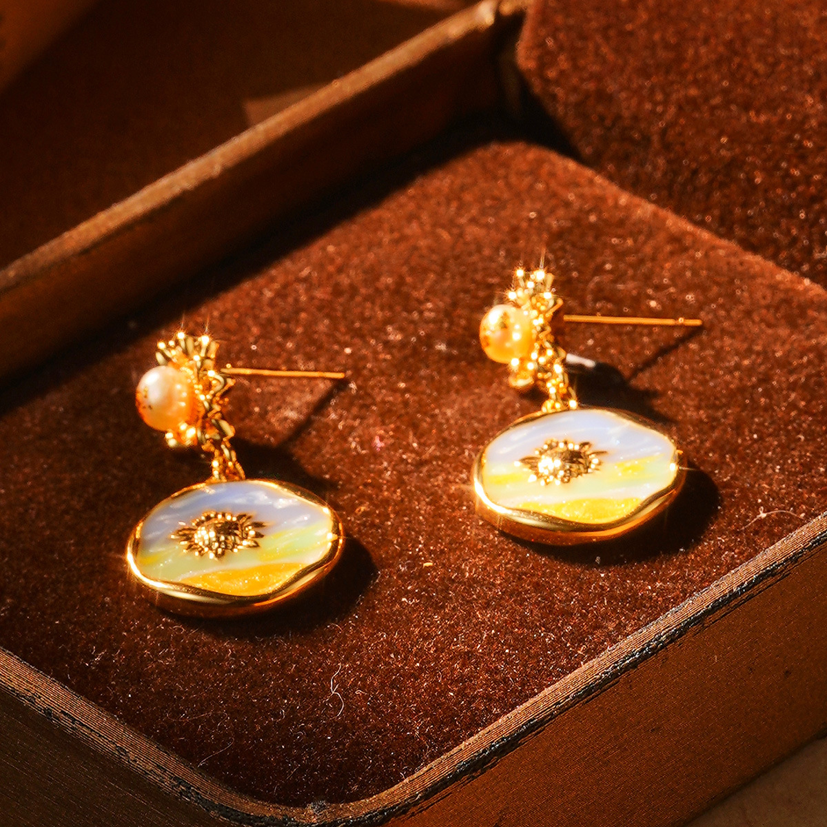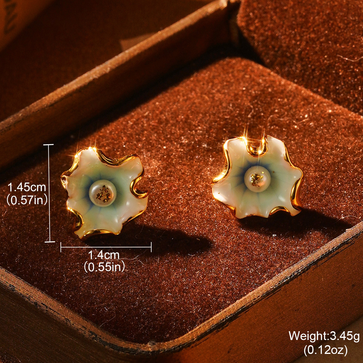 复古法式珐琅耳环小众高级油画系列天然珍珠耳钉小众银针耳饰批发