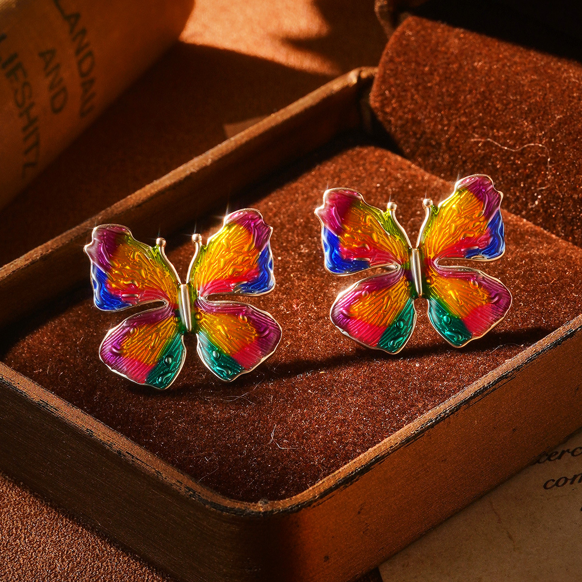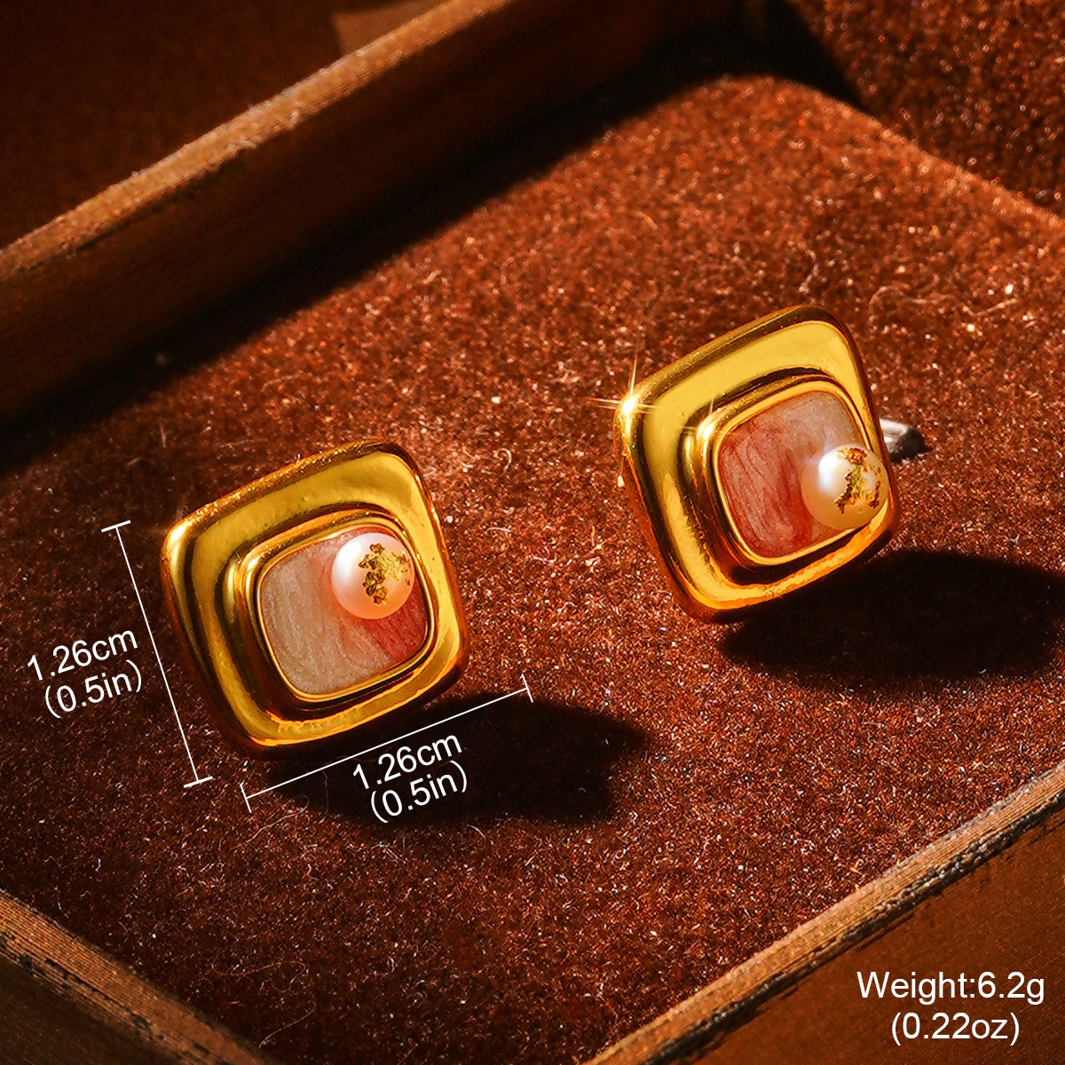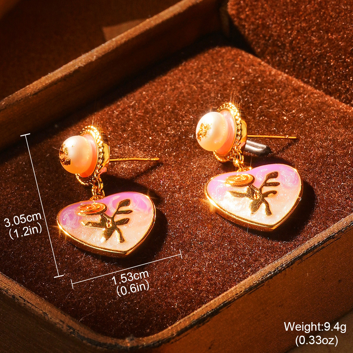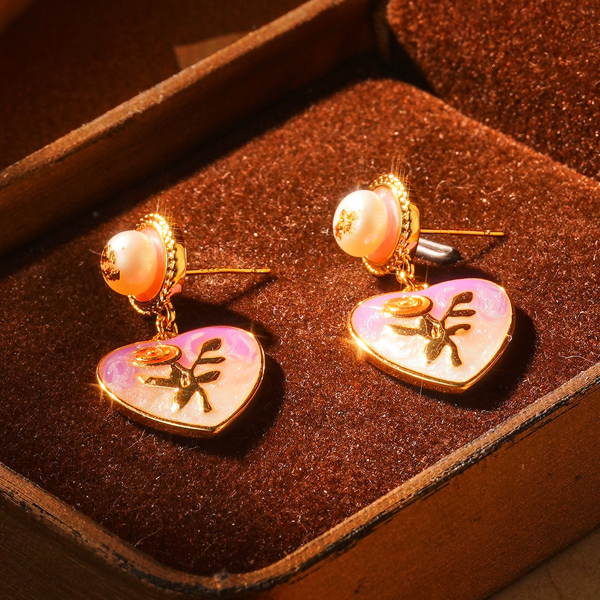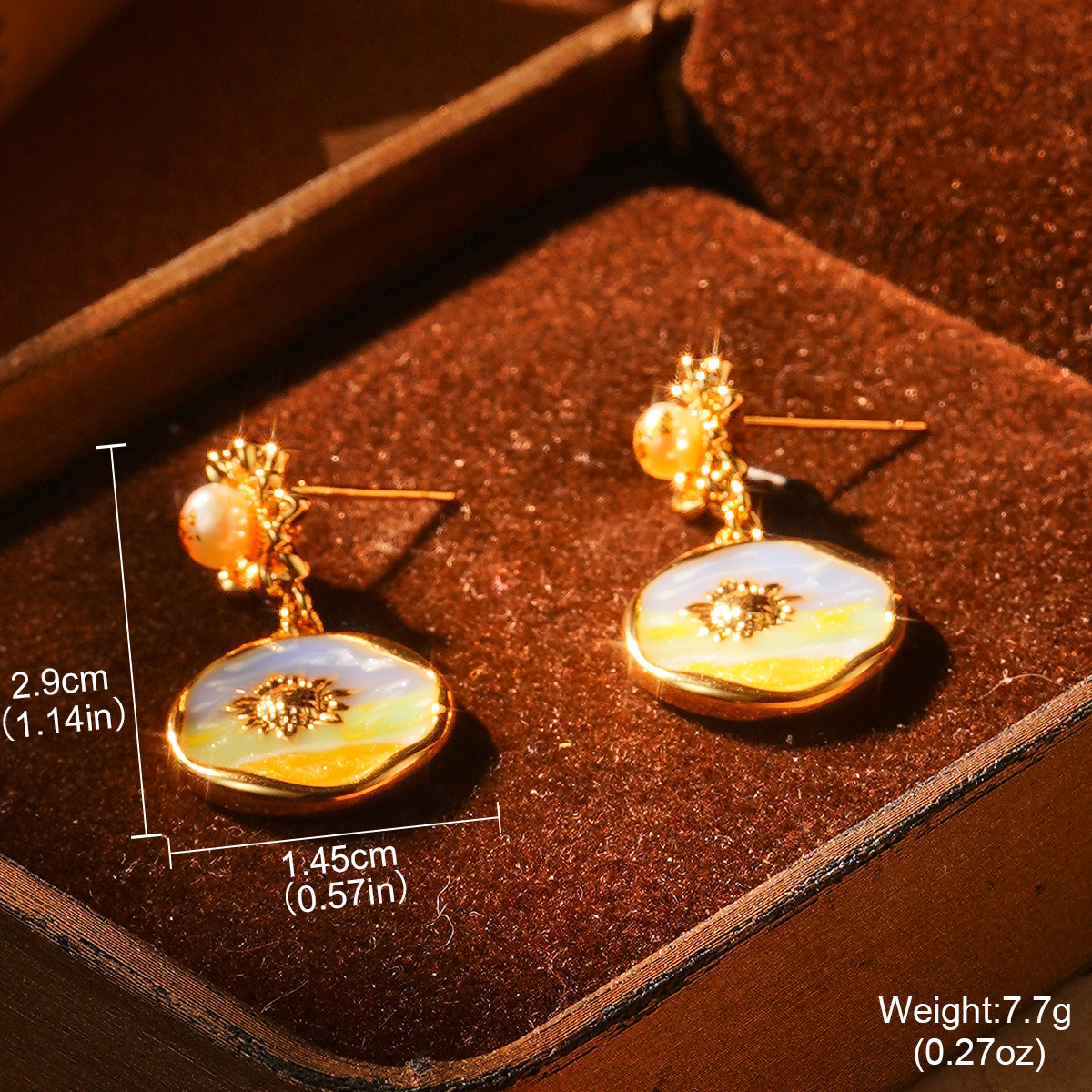 复古法式珐琅耳环小众高级油画系列天然珍珠耳钉小众银针耳饰批发