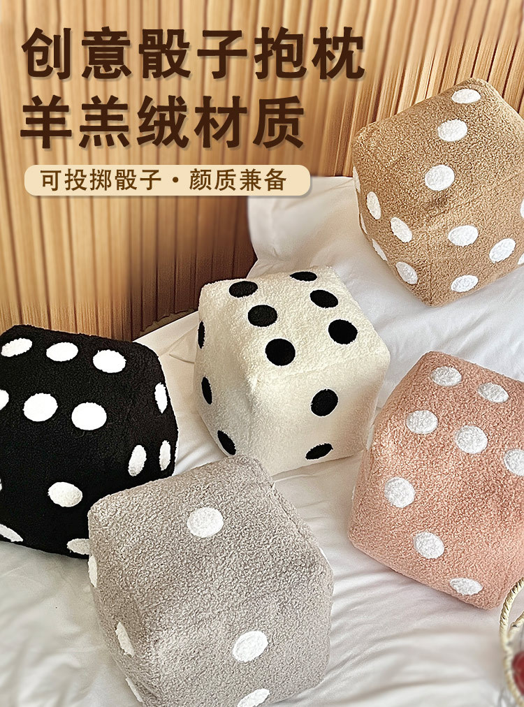 ins创意简约家居装饰靠枕趣味仿真骰子毛绒玩具沙发靠垫蒲团地垫