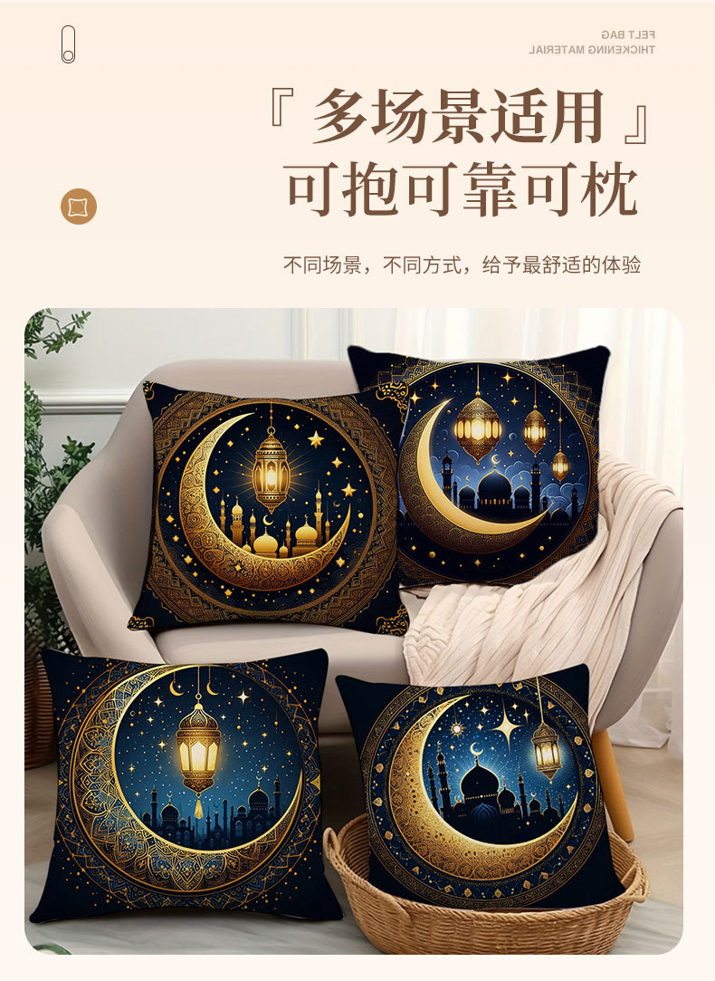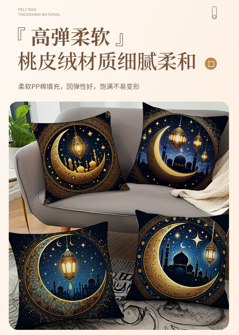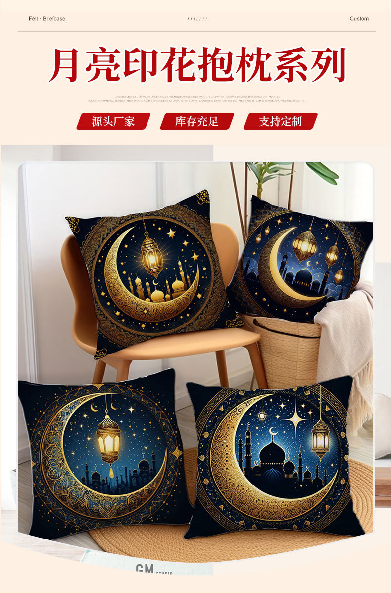 月亮印花抱枕套民族风桃皮绒时尚靠枕套卧室客厅沙发靠垫抱枕套