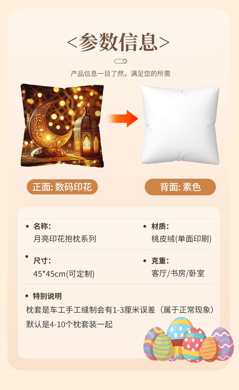 | 1499.98cm-inch peach skin fabric pillowcase (without core) single-sided printing(45尺寸桃皮绒枕套(不含芯)单面印) | USD $0.0 | 9995 piece available |