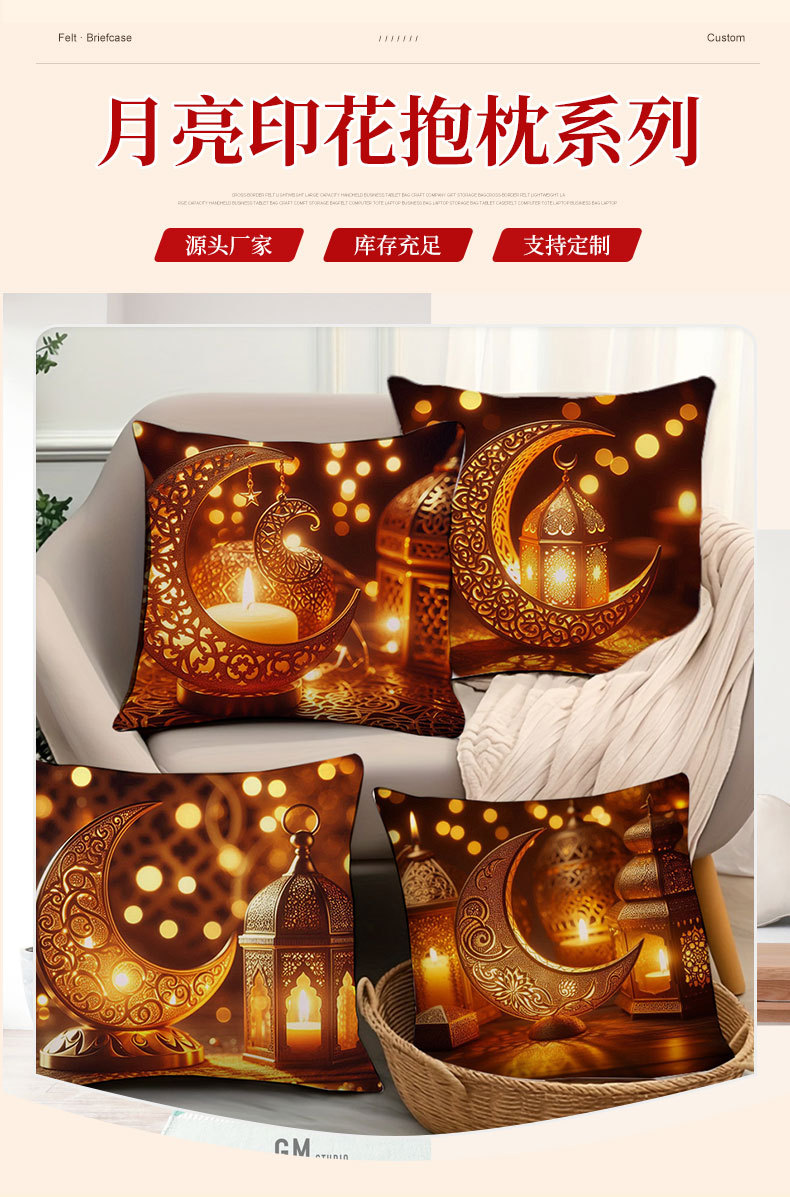 立体月亮灯沙发抱枕套客厅装饰桃皮绒靠垫节日氛围布置座椅靠枕套