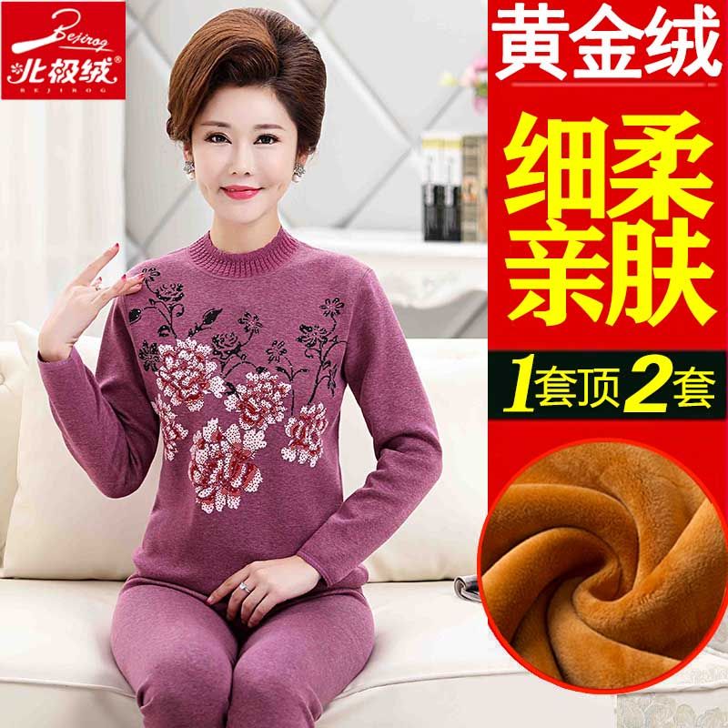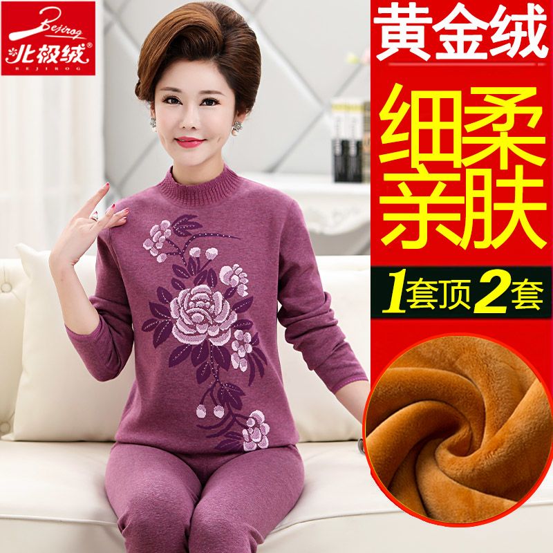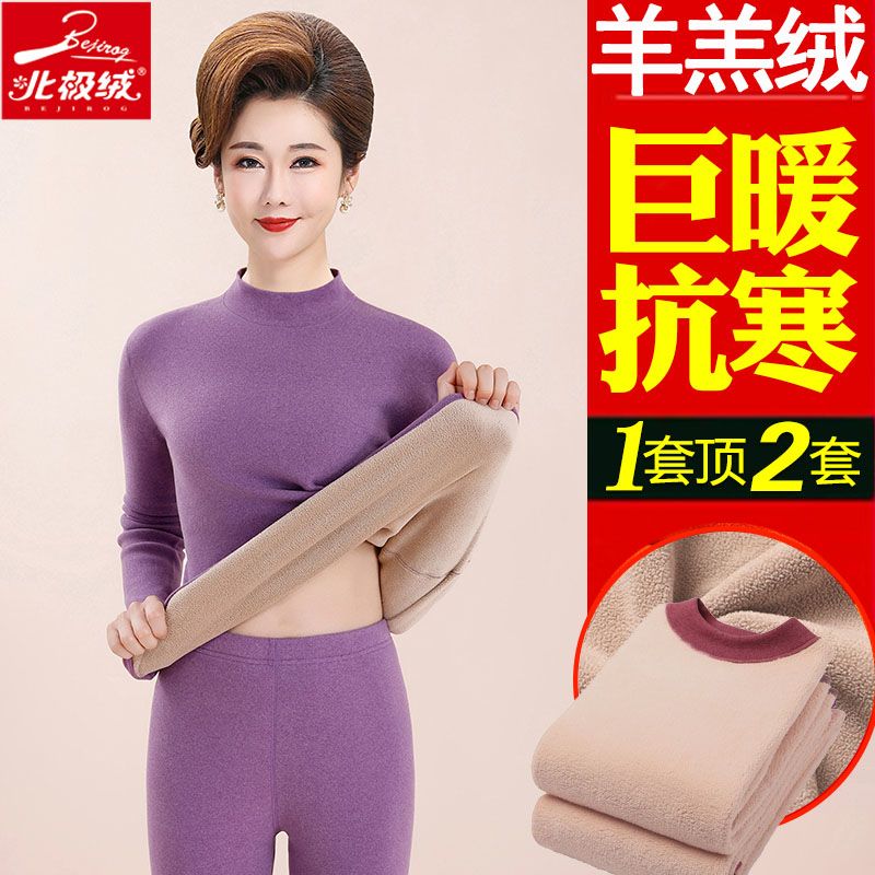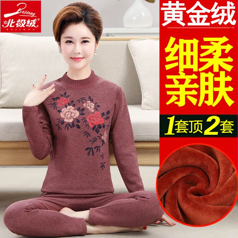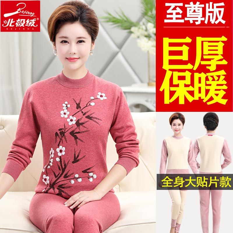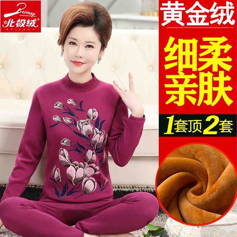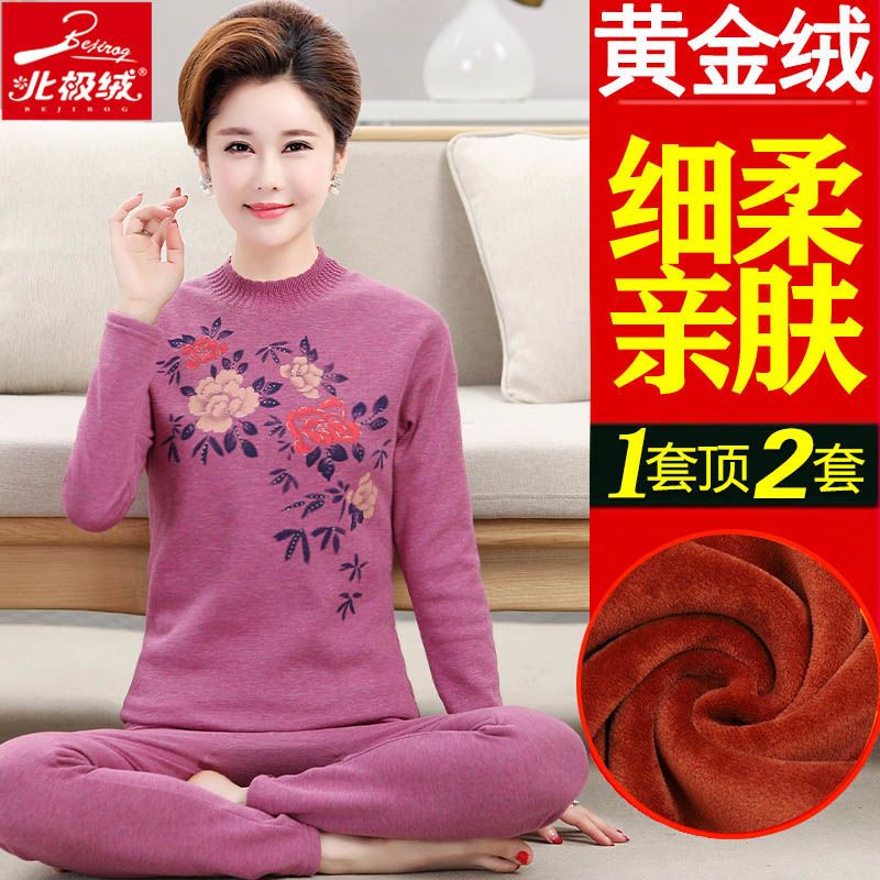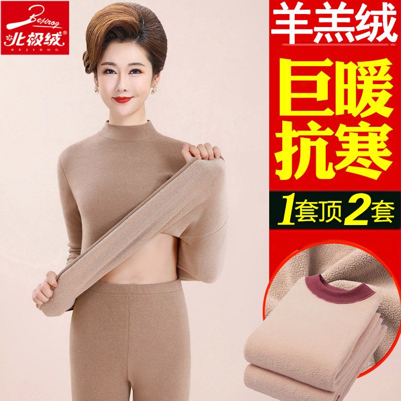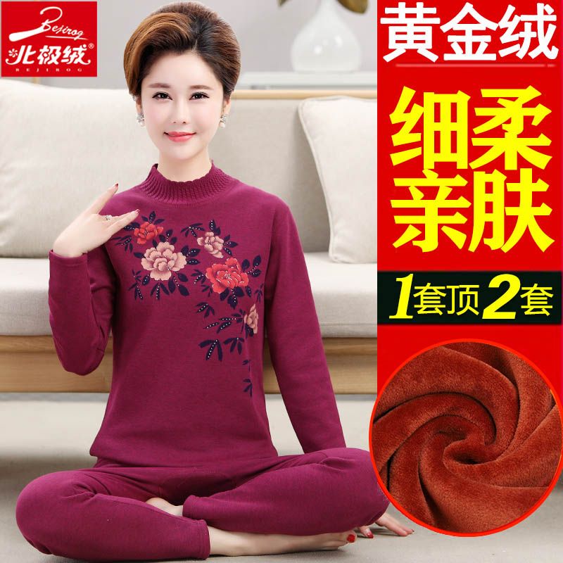 北极绒保暖内衣女加绒加厚套装中老年人中高领秋衣秋裤妈妈冬季
