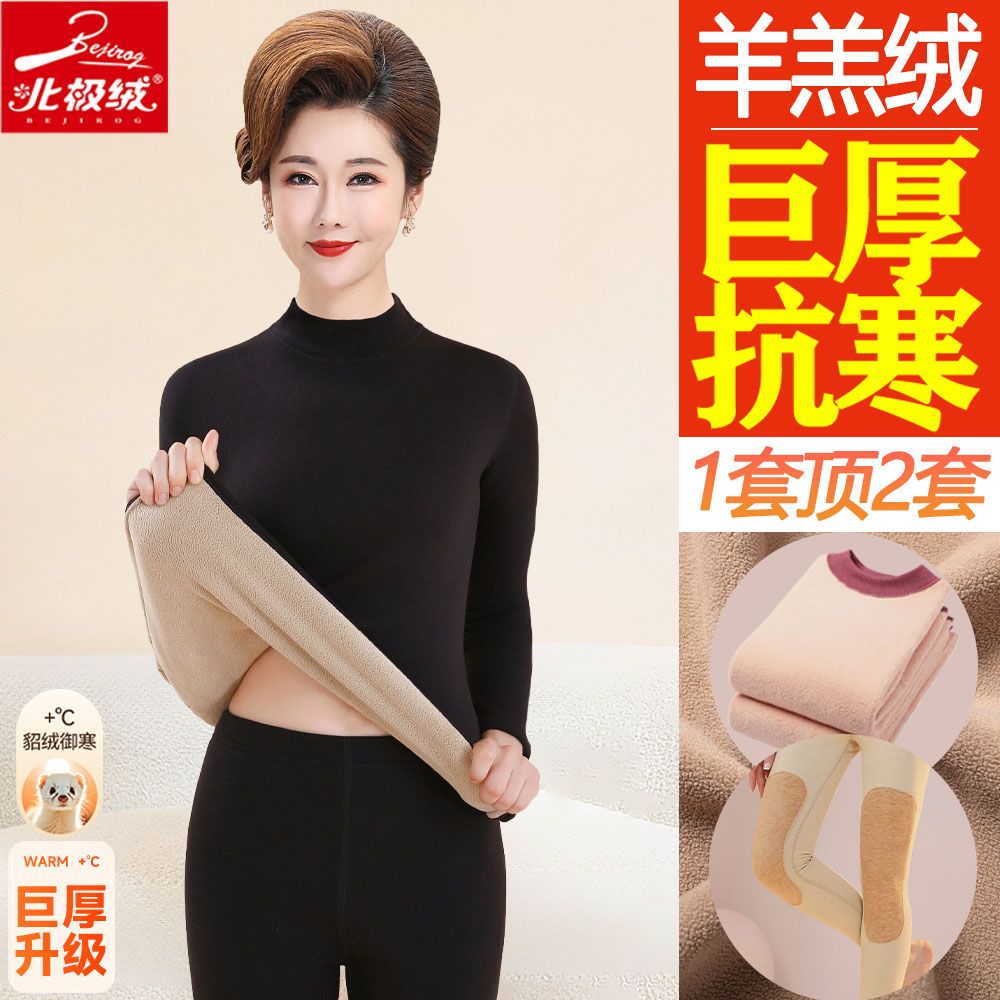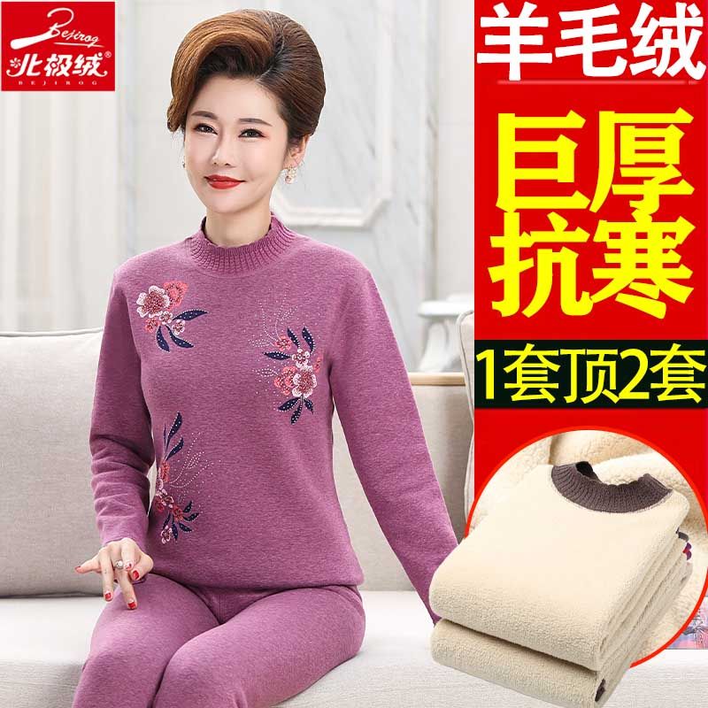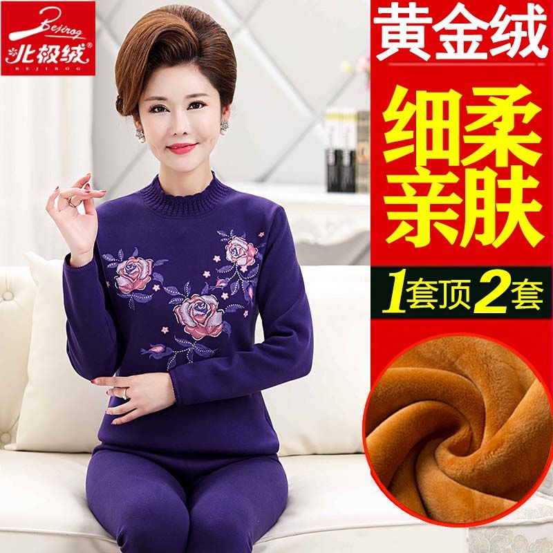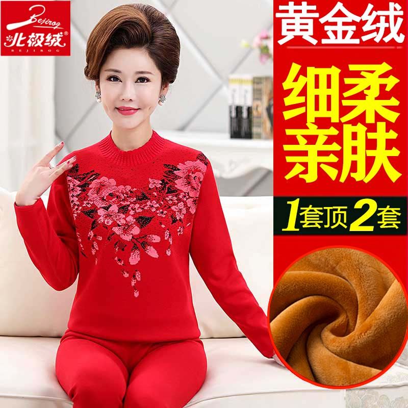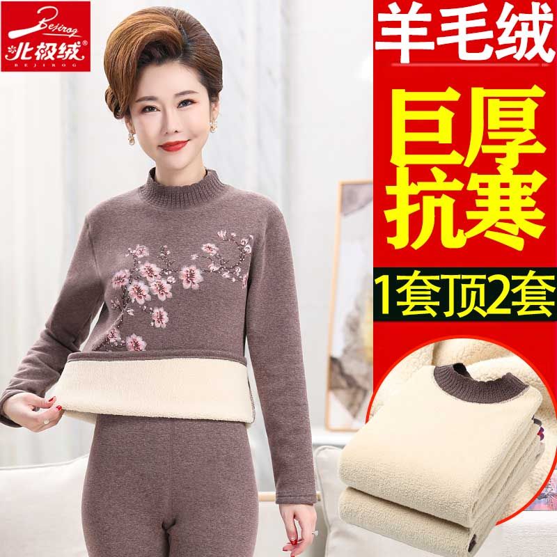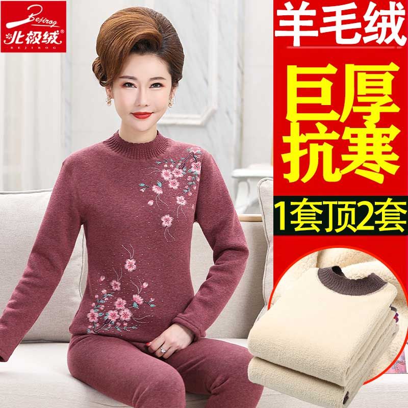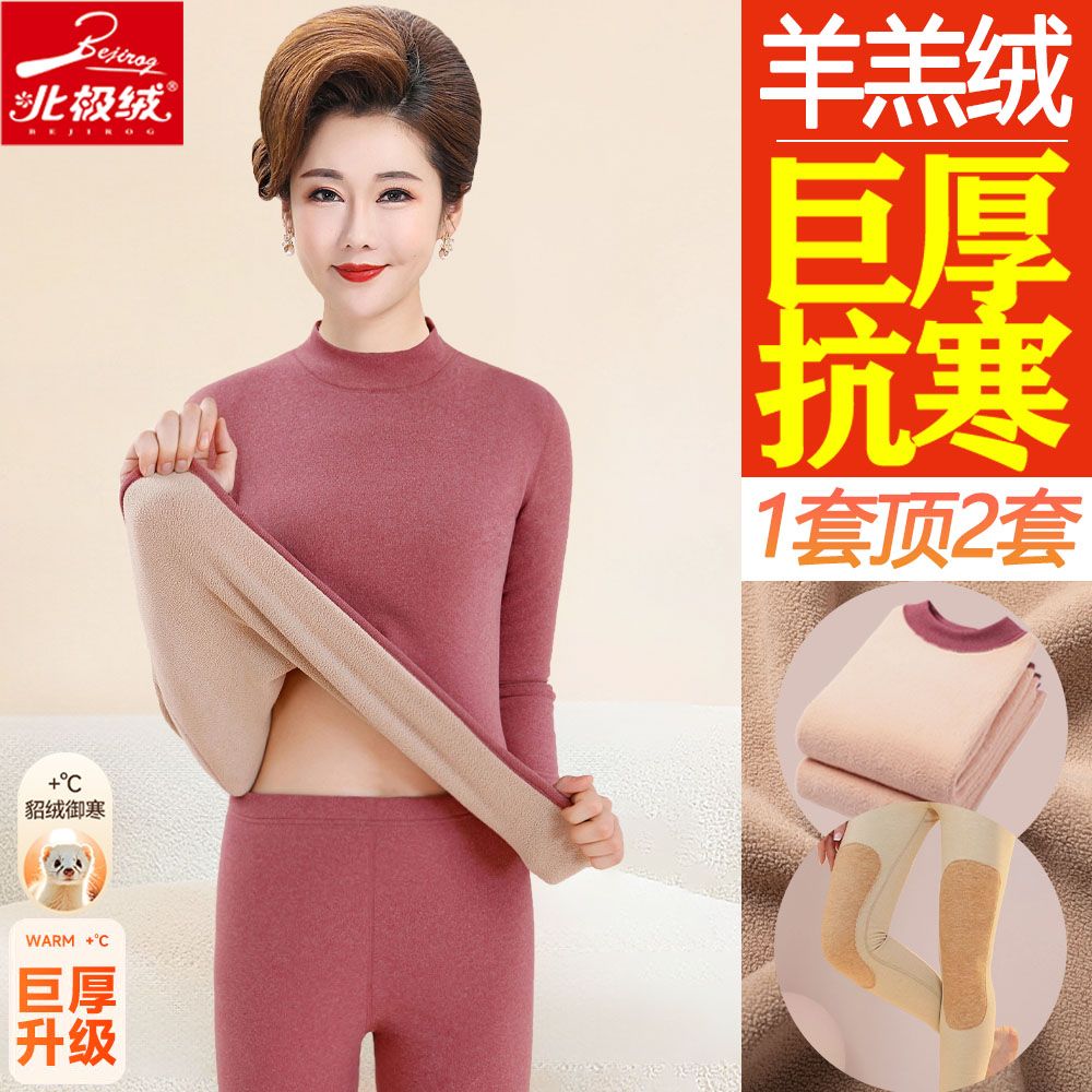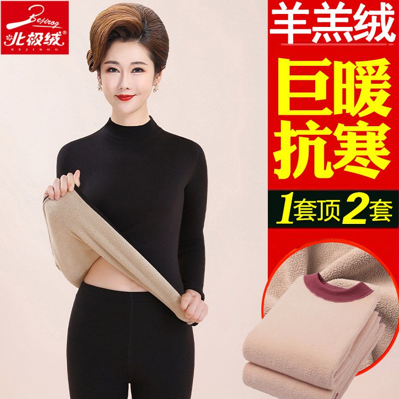 北极绒保暖内衣女加绒加厚套装中老年人中高领秋衣秋裤妈妈冬季
