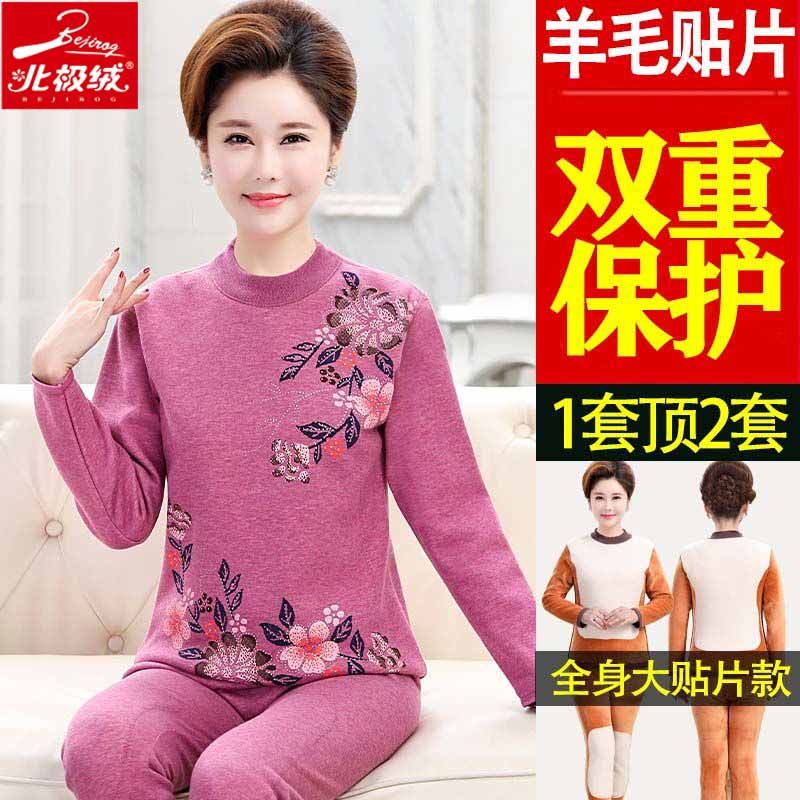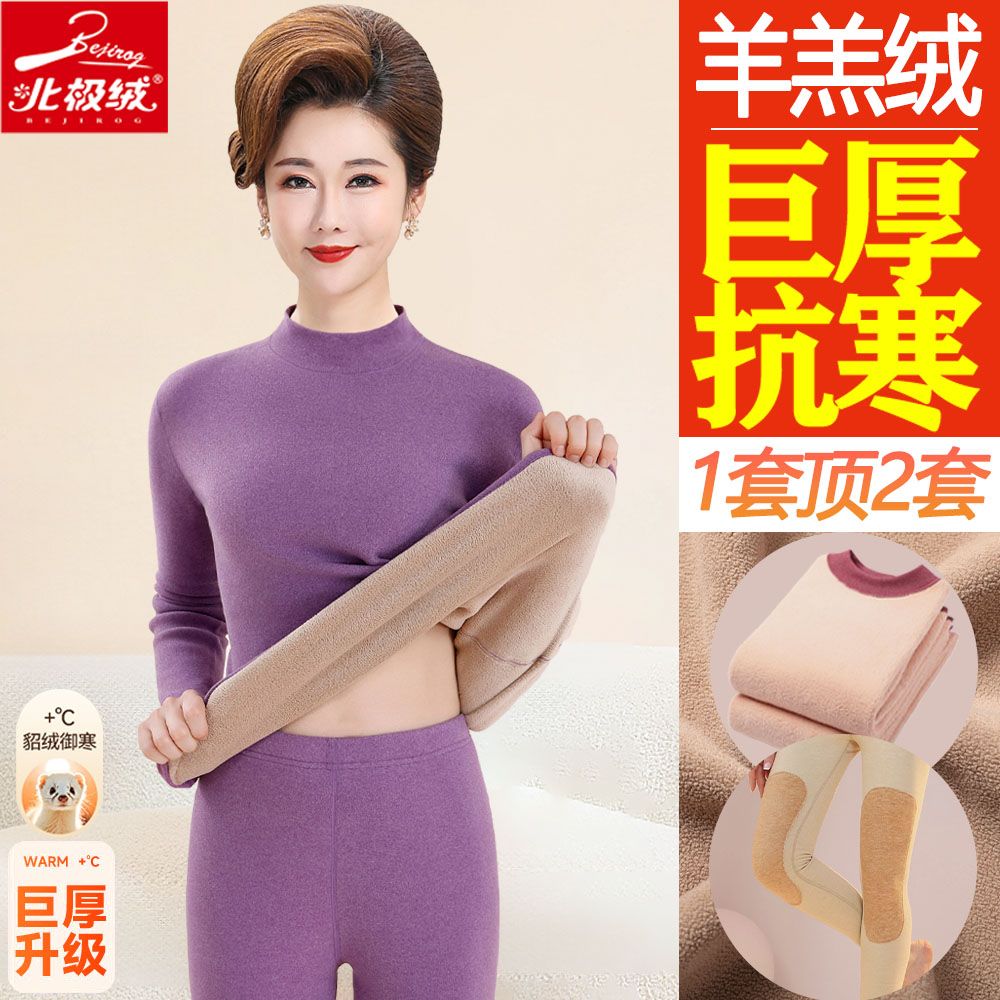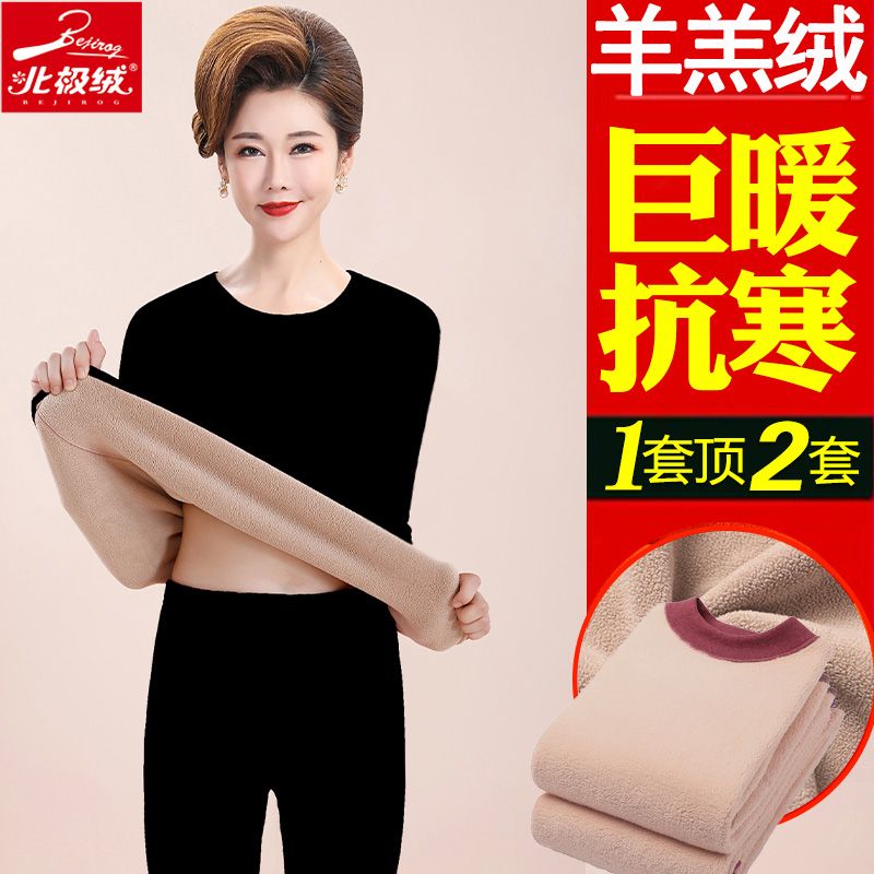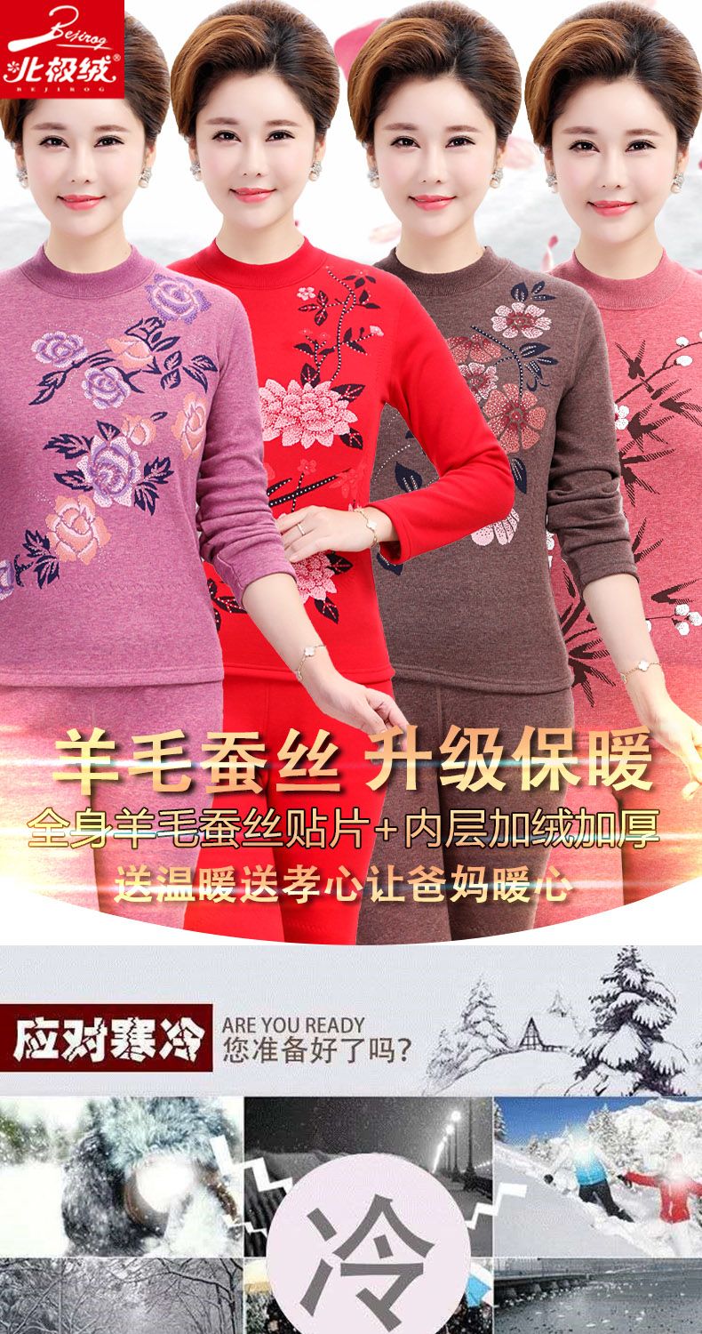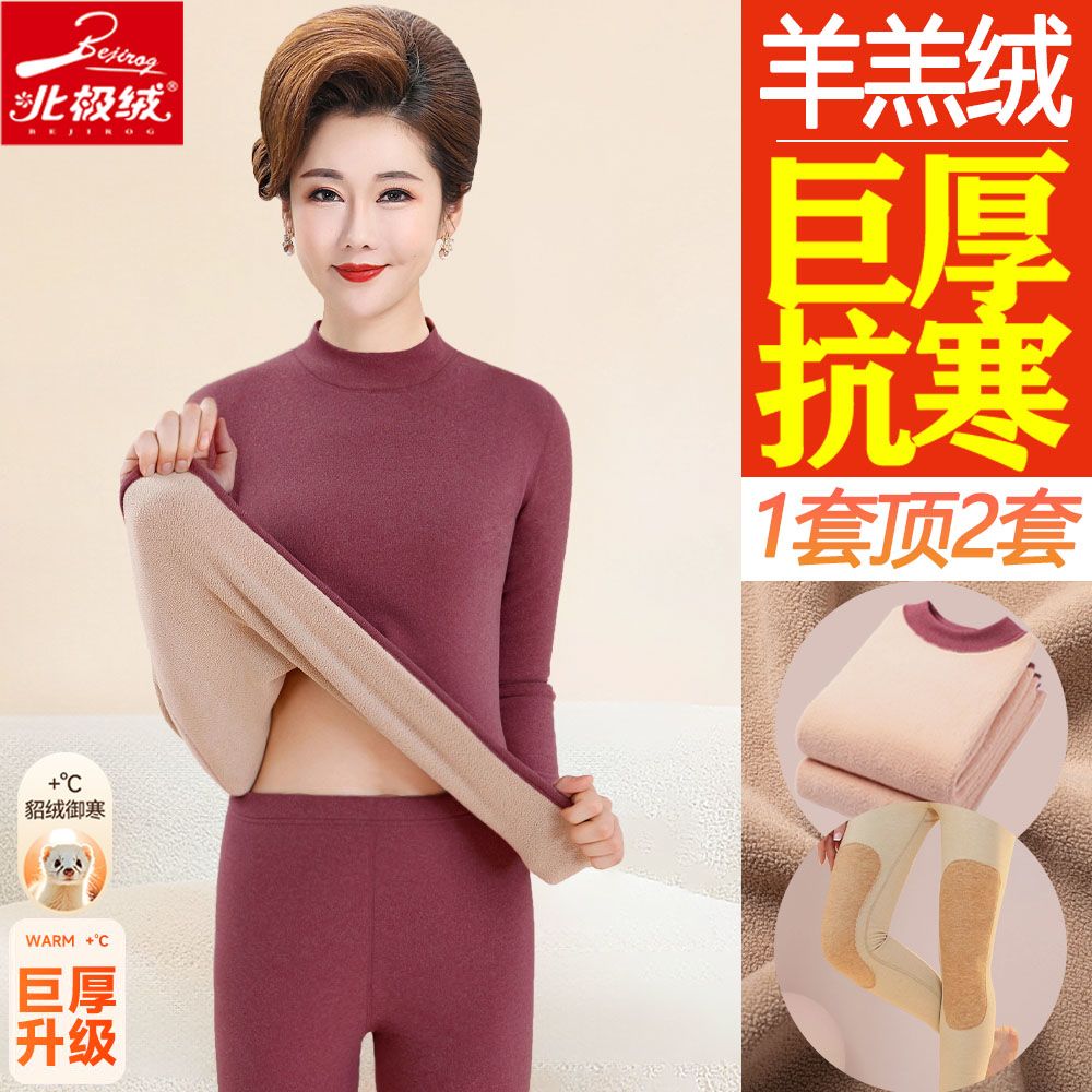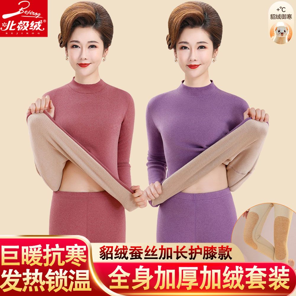 北极绒保暖内衣女加绒加厚套装中老年人中高领秋衣秋裤妈妈冬季