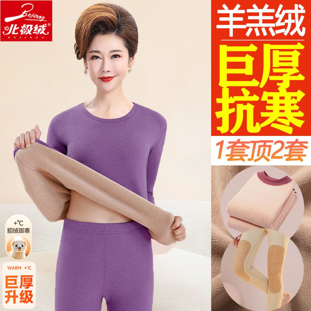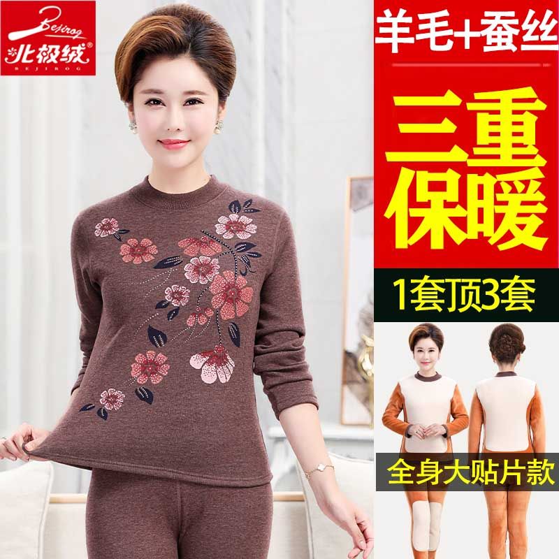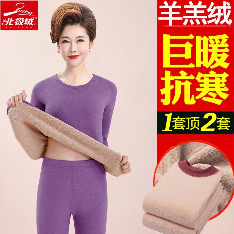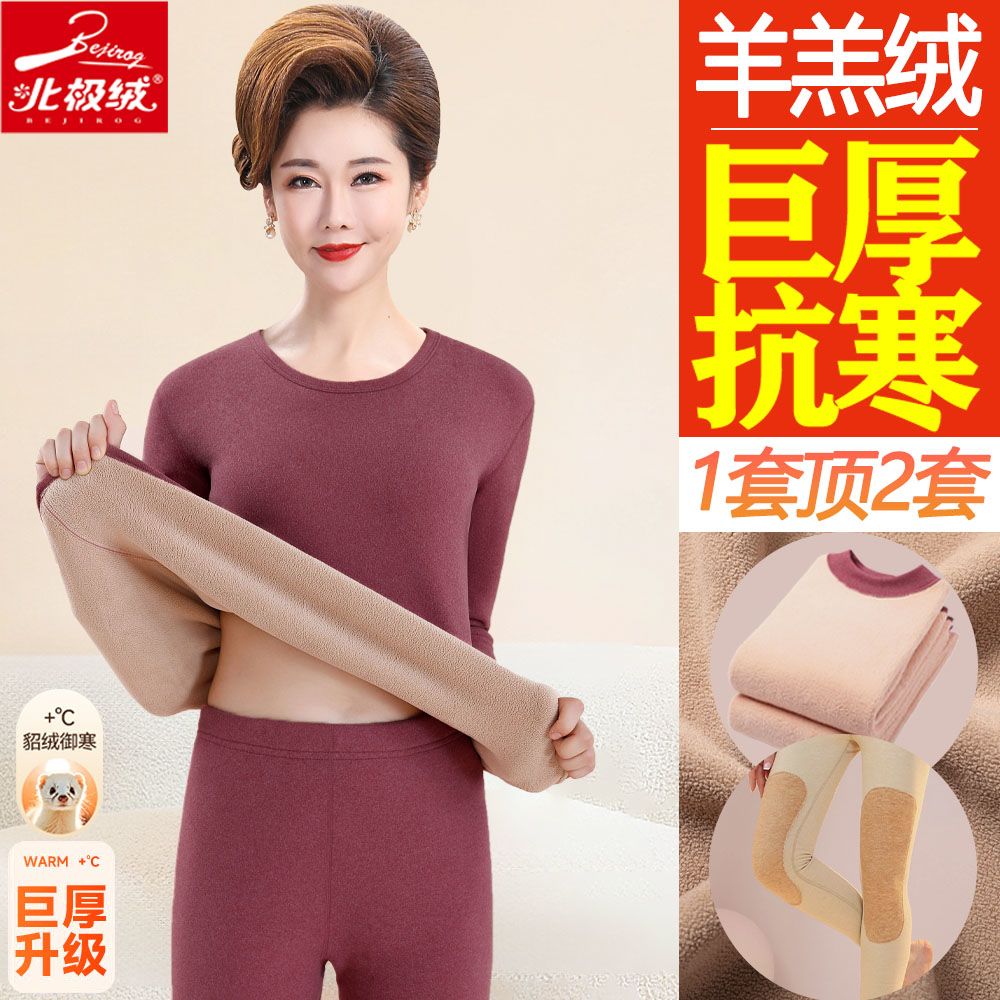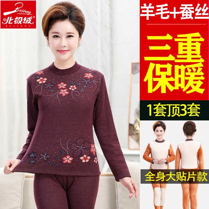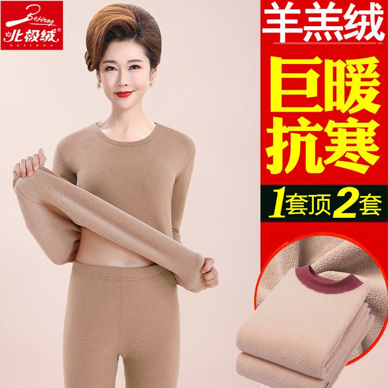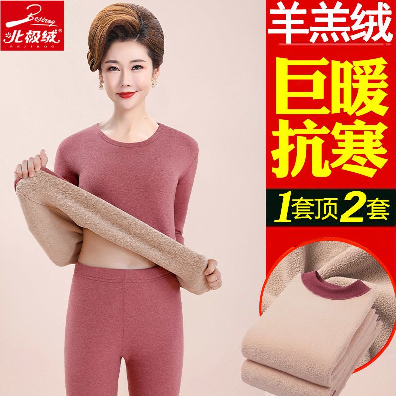 北极绒保暖内衣女加绒加厚套装中老年人中高领秋衣秋裤妈妈冬季
