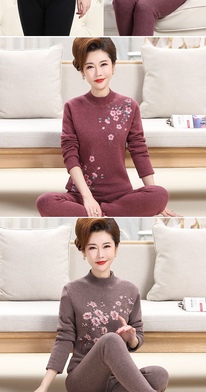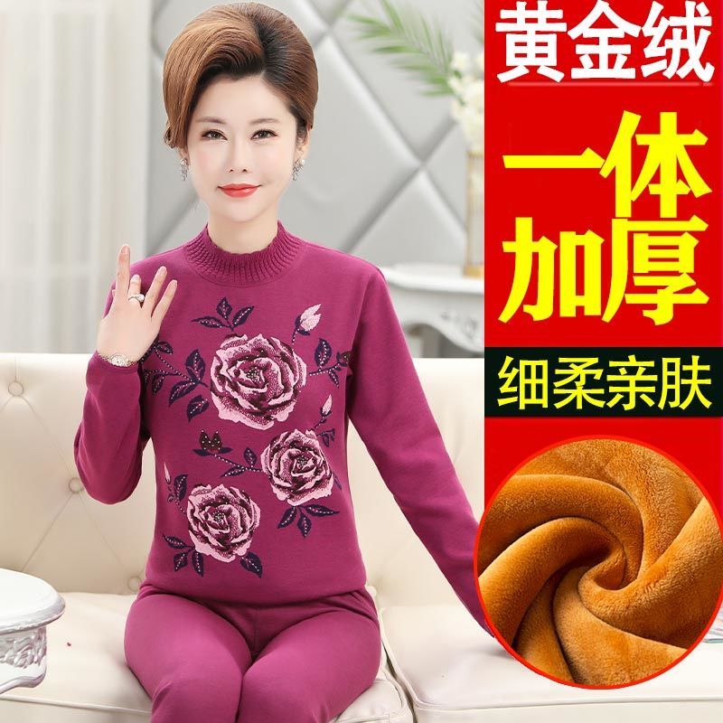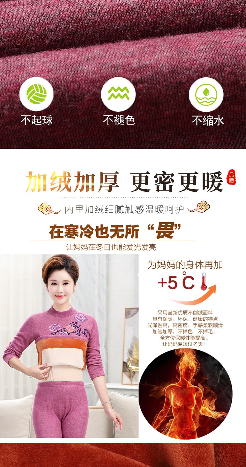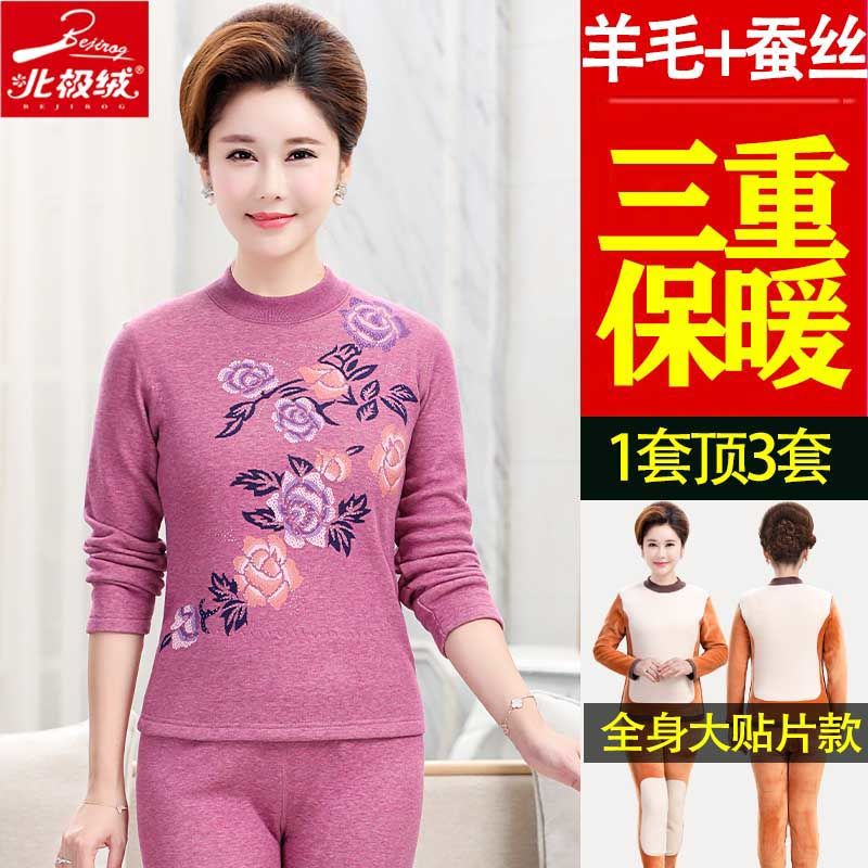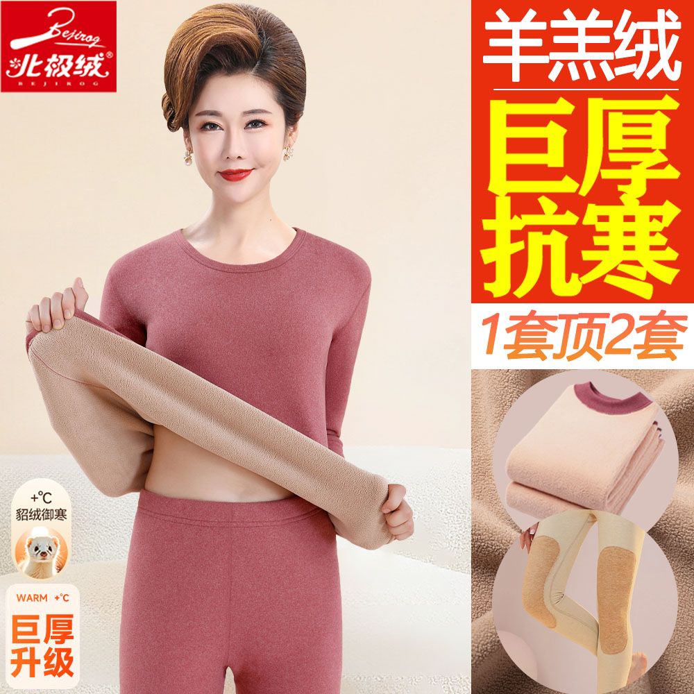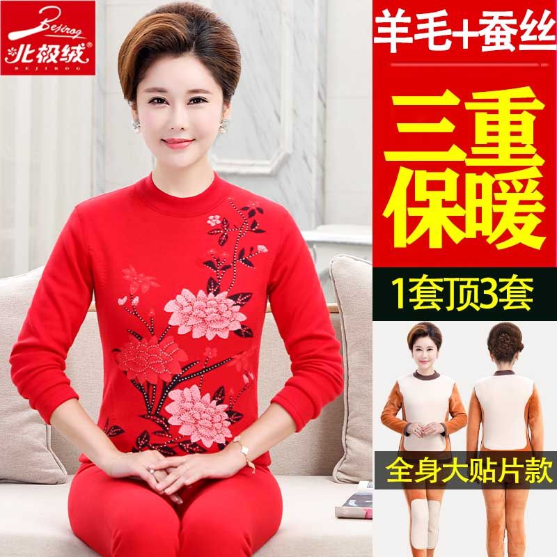 北极绒保暖内衣女加绒加厚套装中老年人中高领秋衣秋裤妈妈冬季