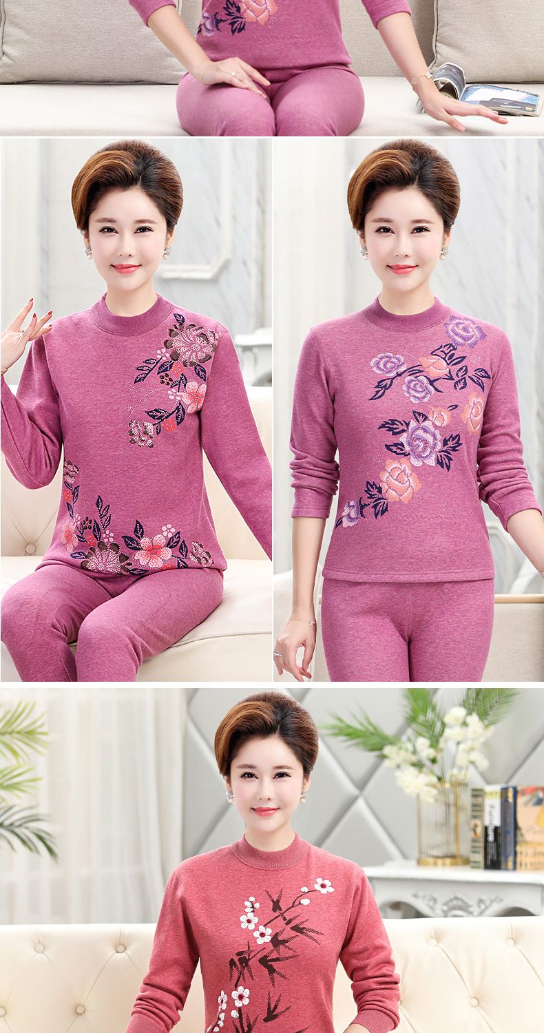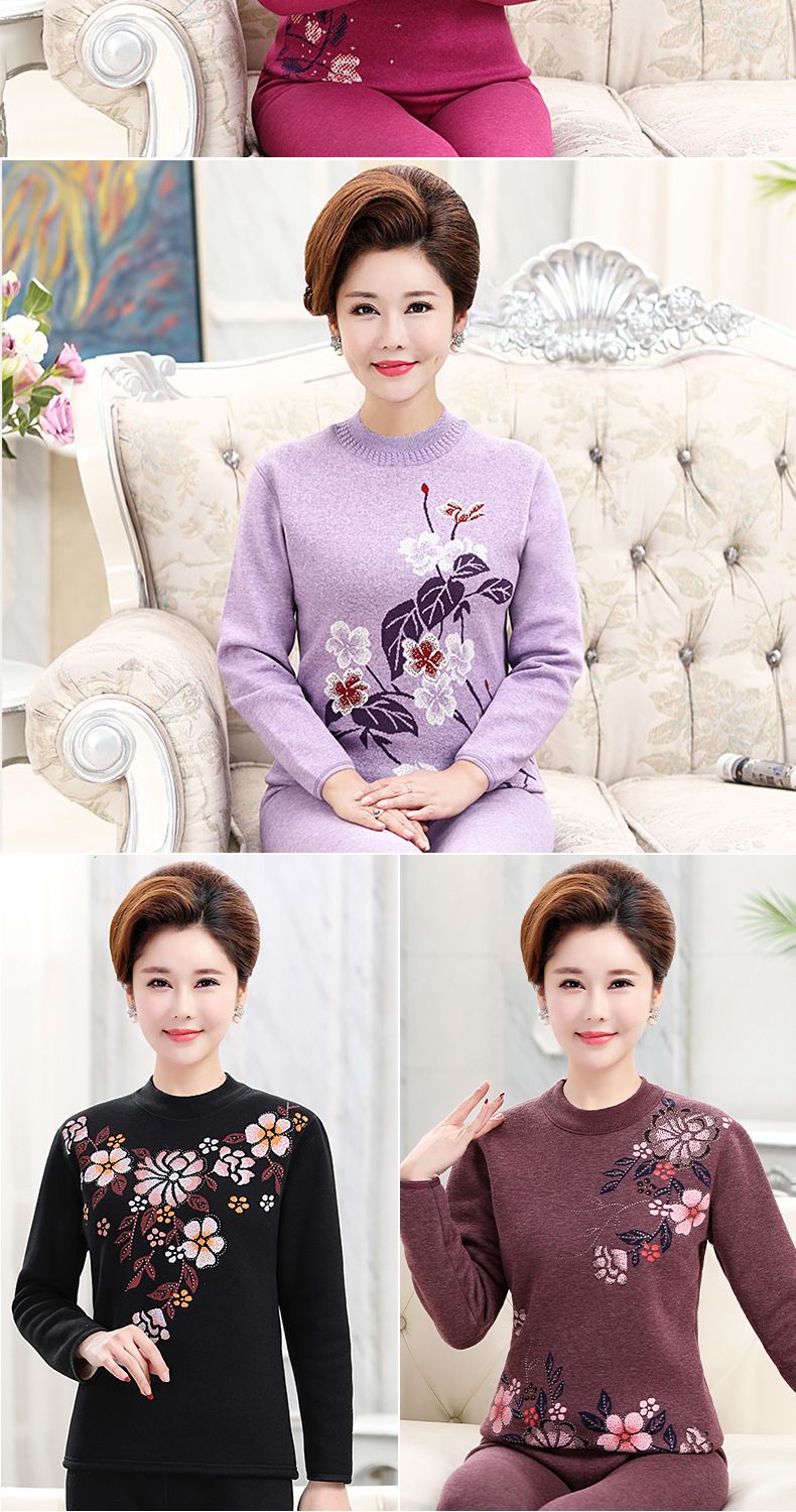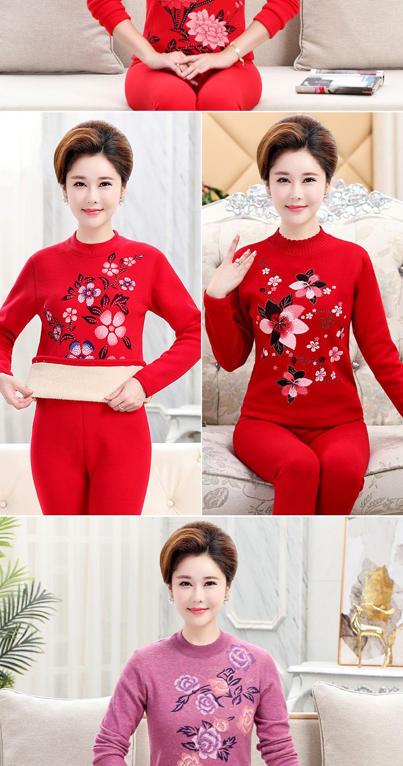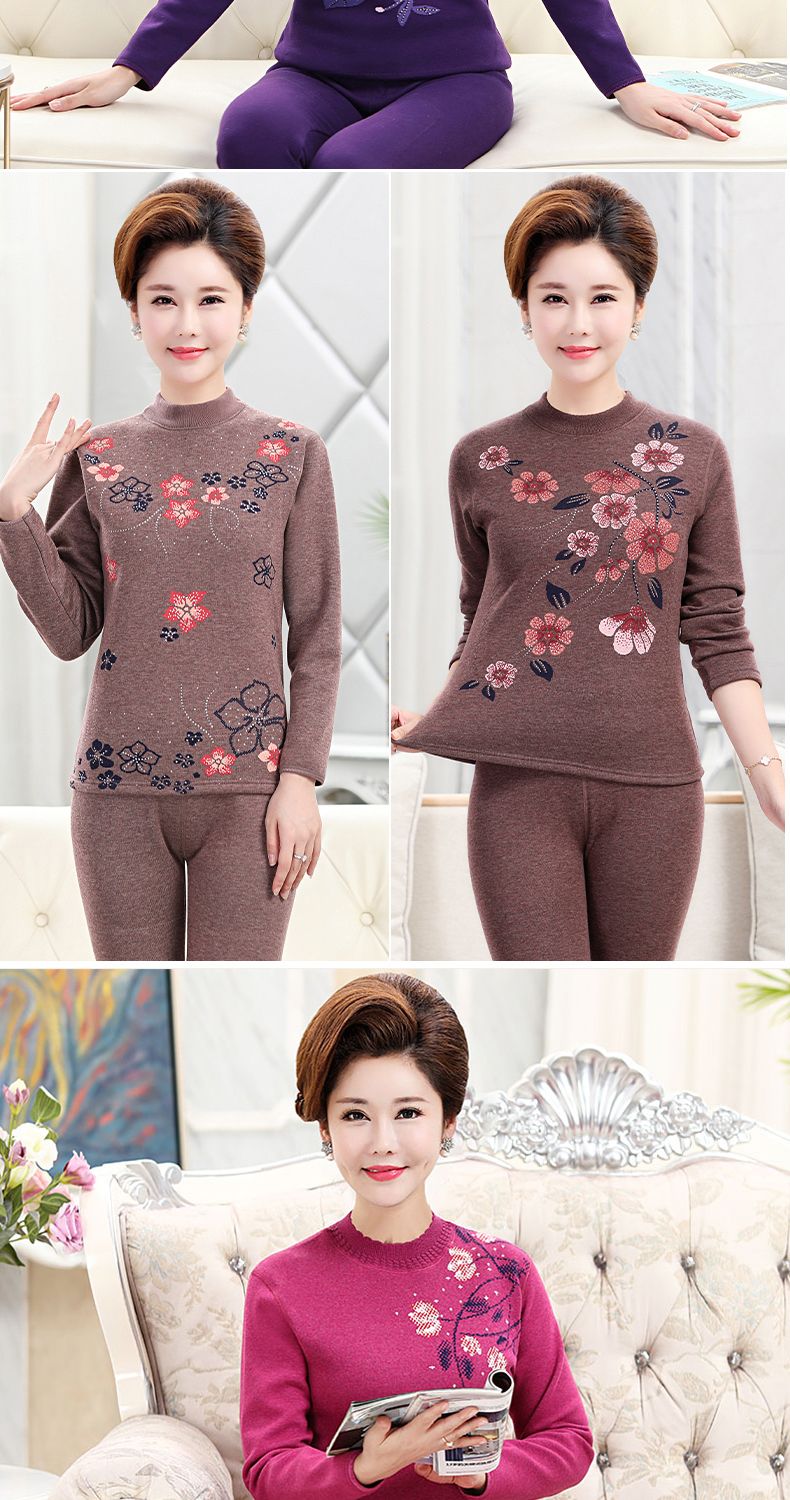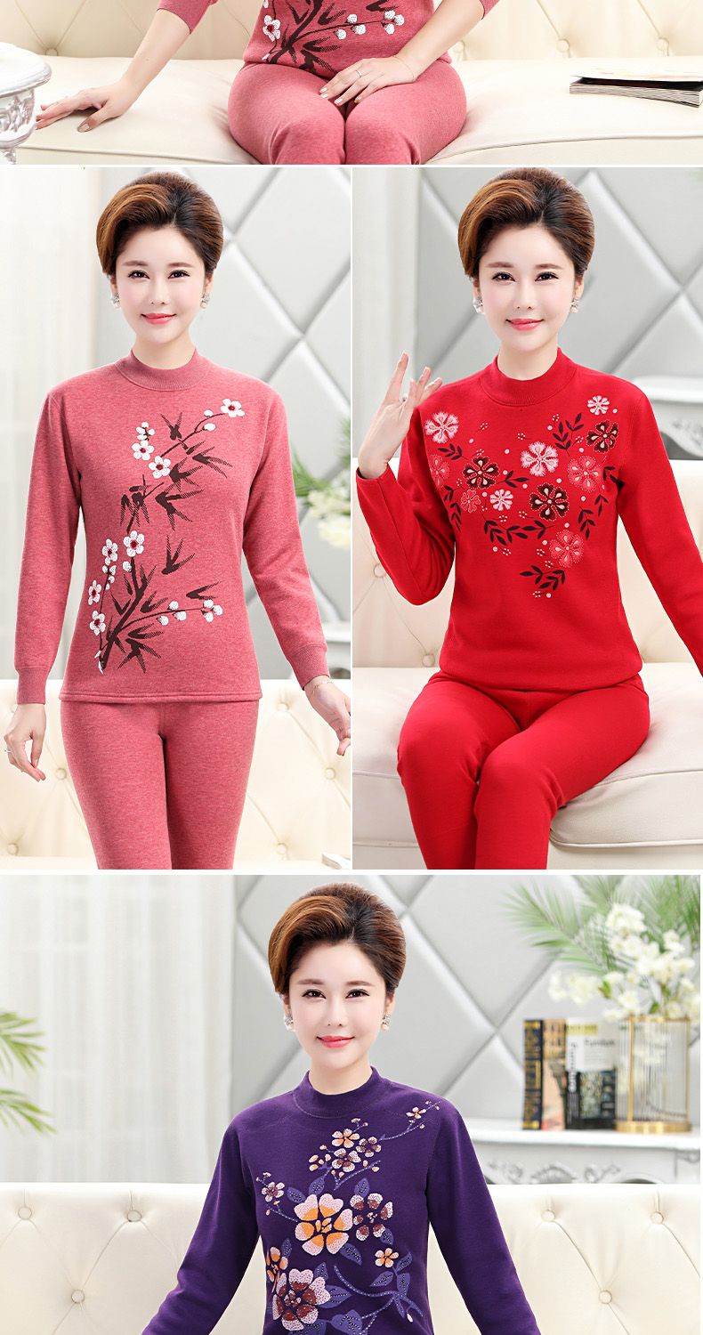 北极绒保暖内衣女加绒加厚套装中老年人中高领秋衣秋裤妈妈冬季