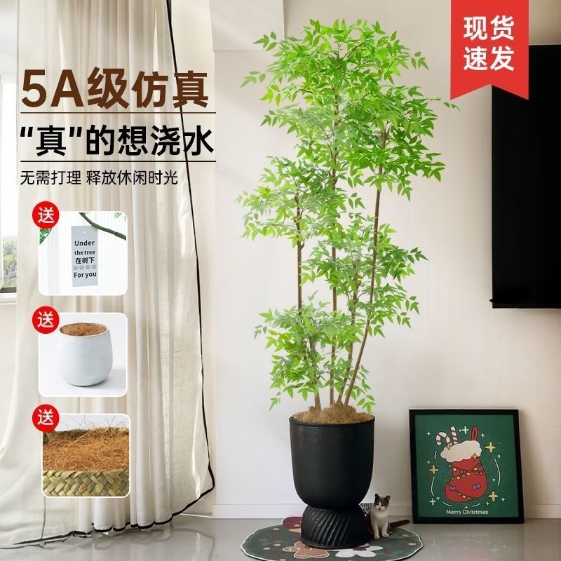 南天竹仿真绿植轻奢假花树仿生植物室内大型装饰客厅盆栽落地摆件