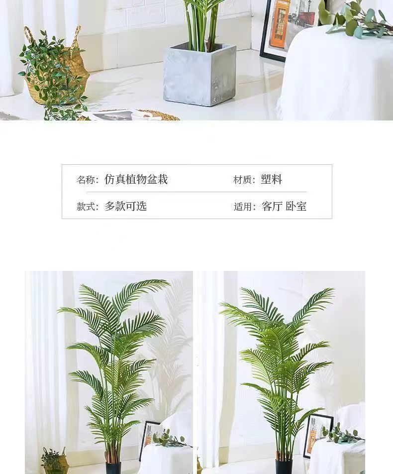 | 2.1 m high quality areca palm 18 leaves + cement pots(2.1米优质散尾葵18叶+水泥盆) | USD $49.7 | 99999 piece available |