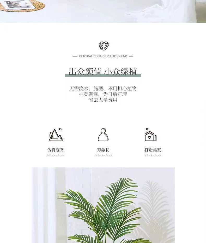 | 2.1 m high quality areca palm 18 leaves(2.1米优质散尾葵18叶) | USD $41.37 | 99999 piece available |