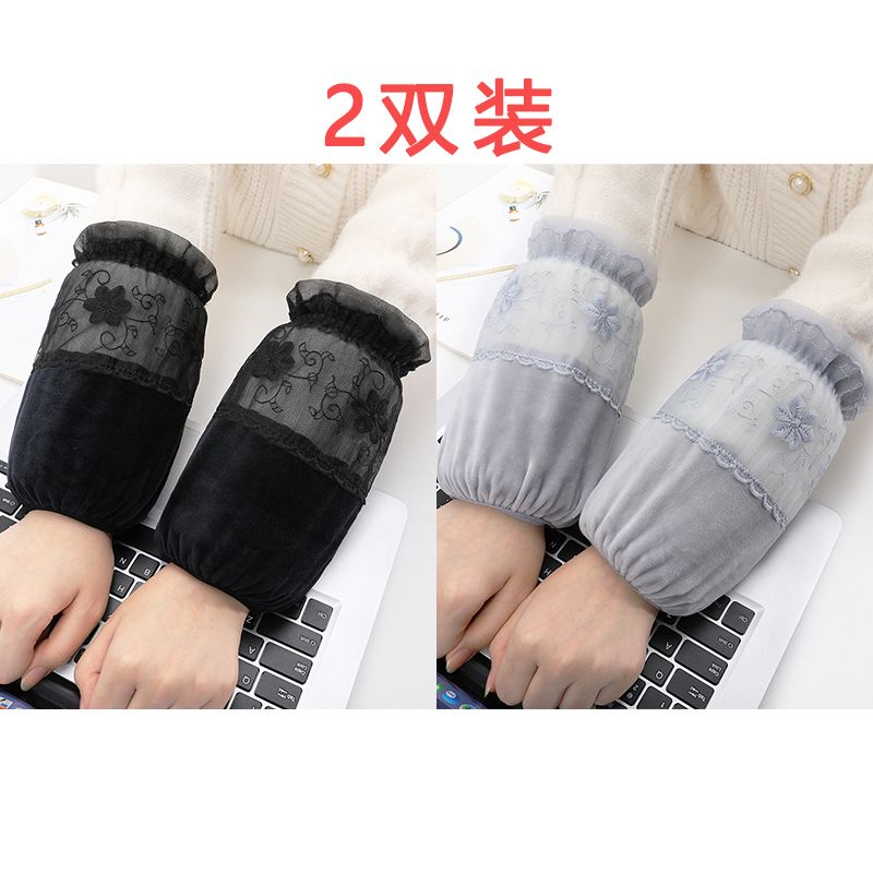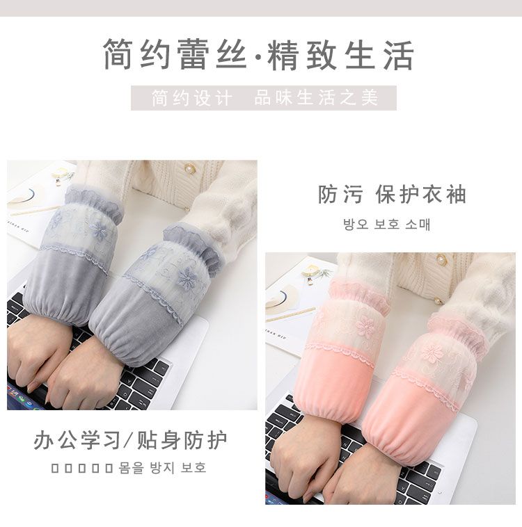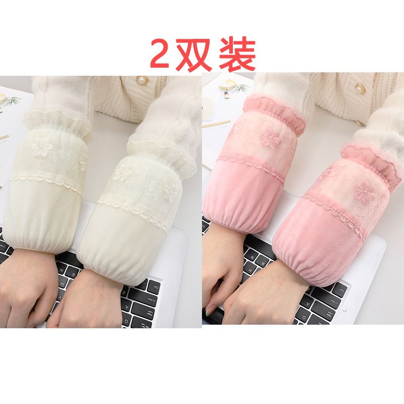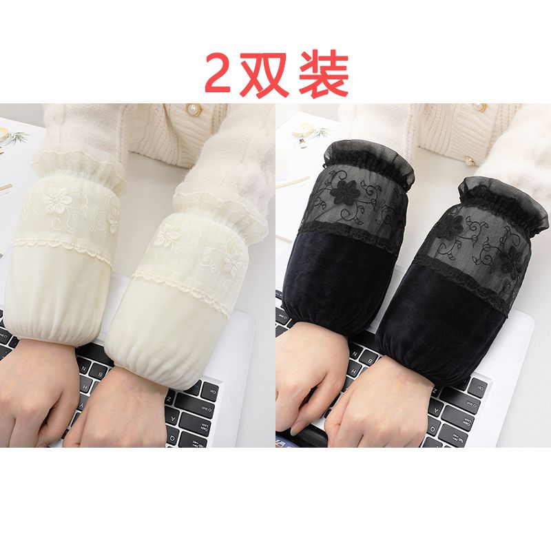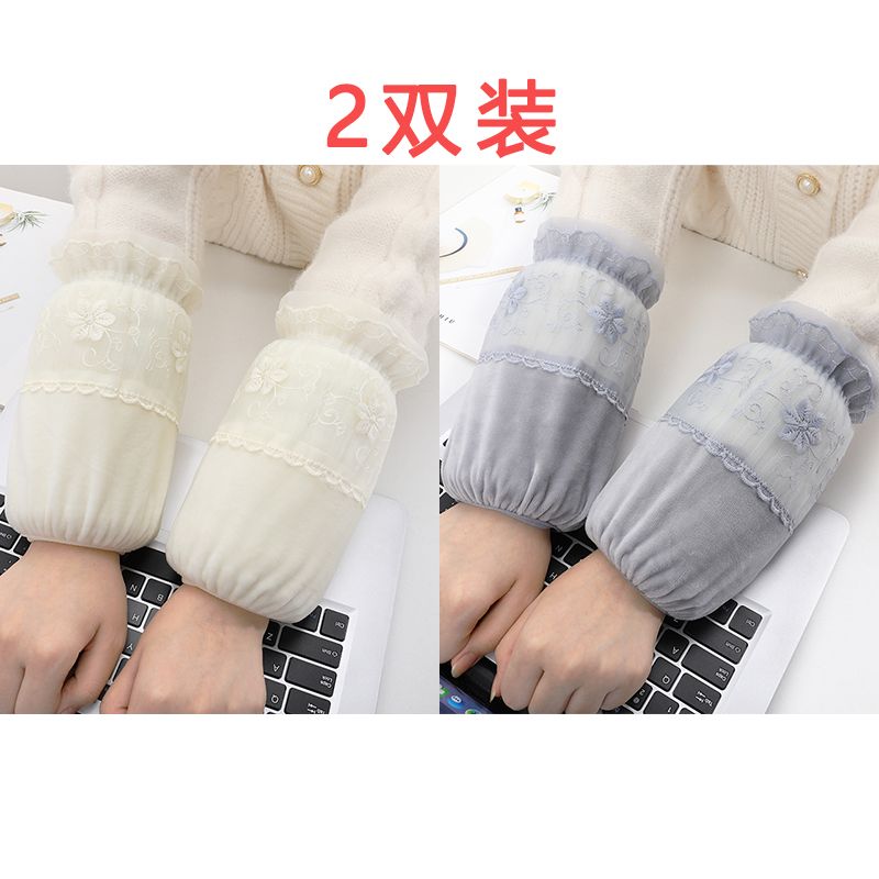 短款米白色蕾丝袖套女款秋冬季百搭防污套袖防脏护袖筒羽绒服袖头