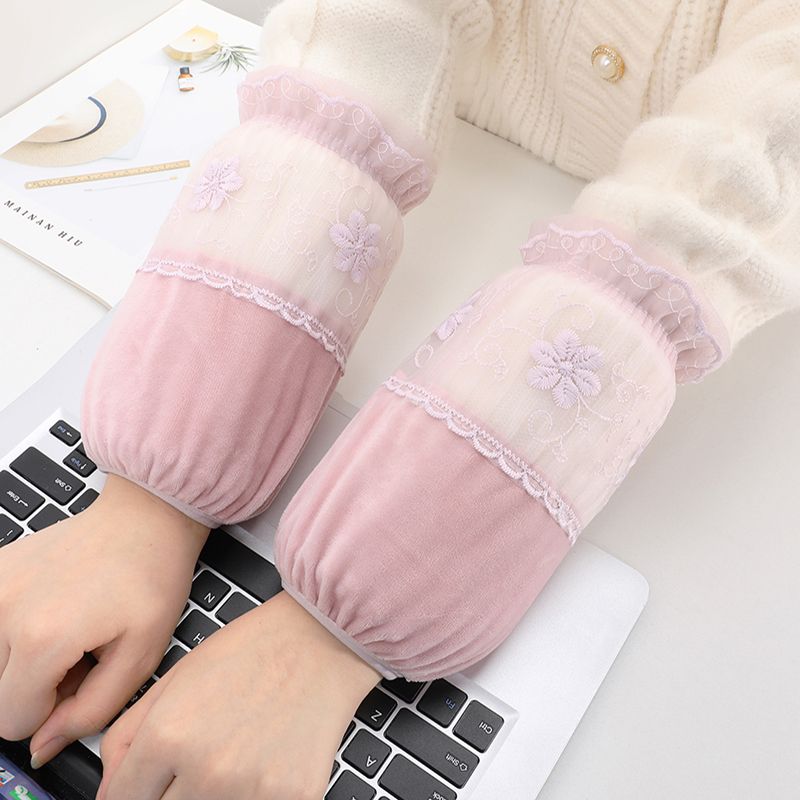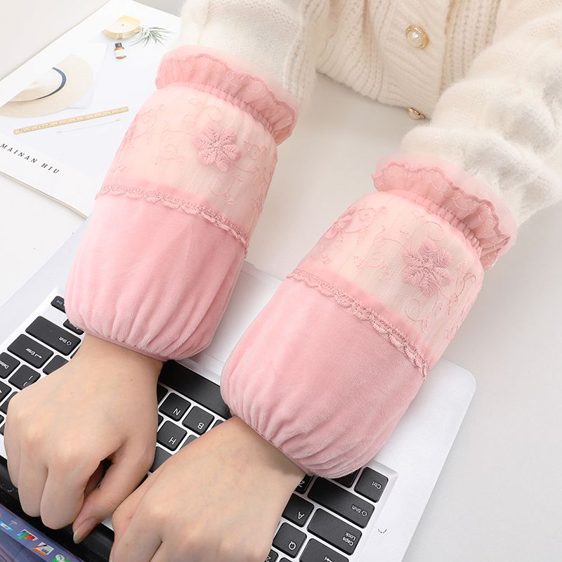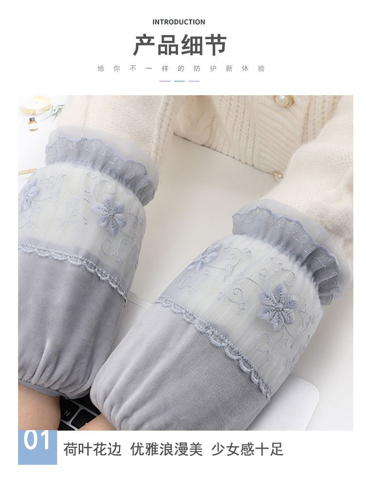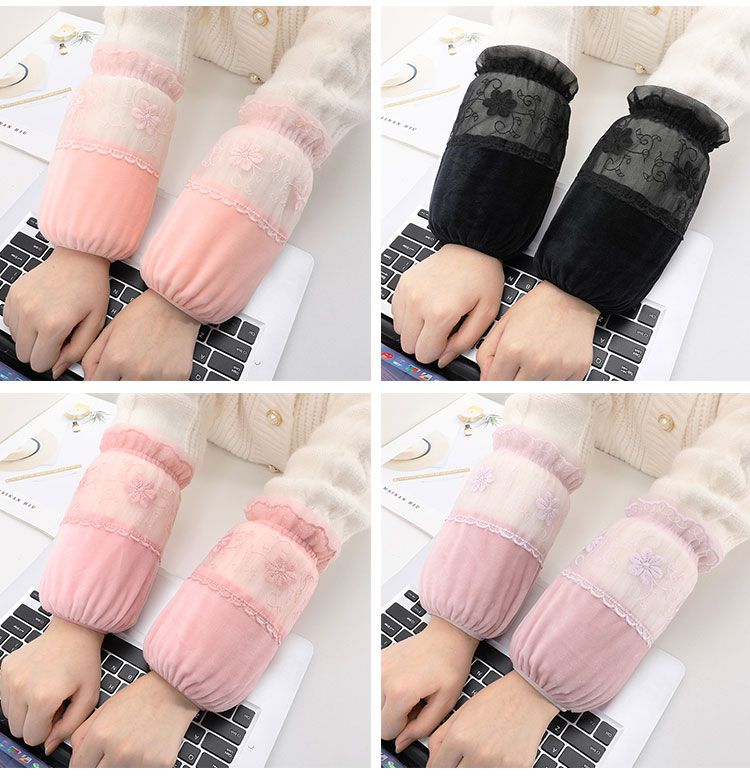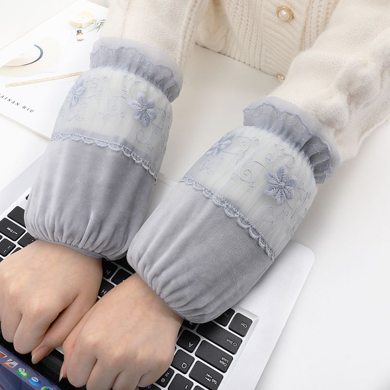 短款米白色蕾丝袖套女款秋冬季百搭防污套袖防脏护袖筒羽绒服袖头