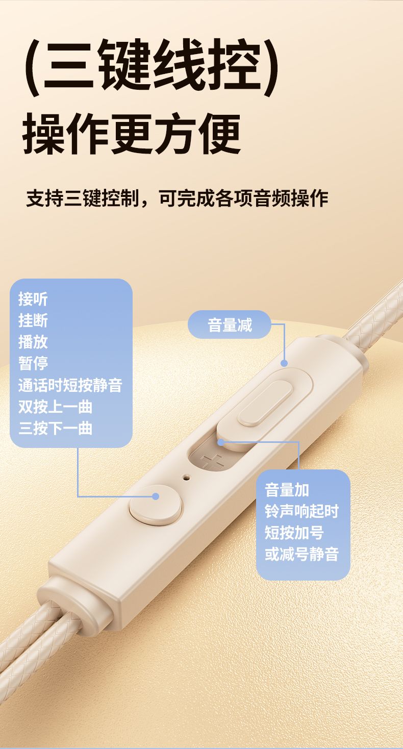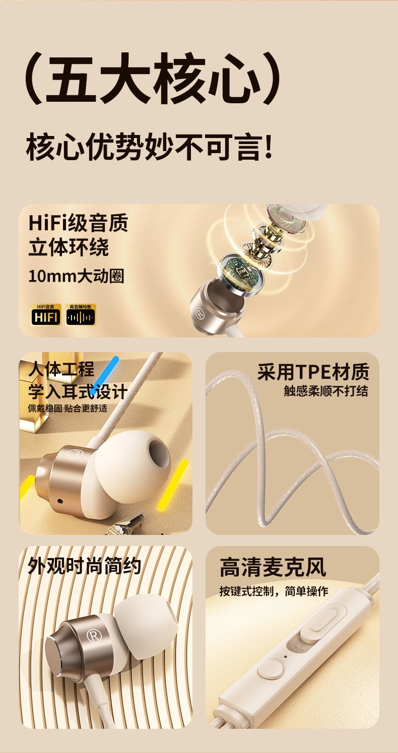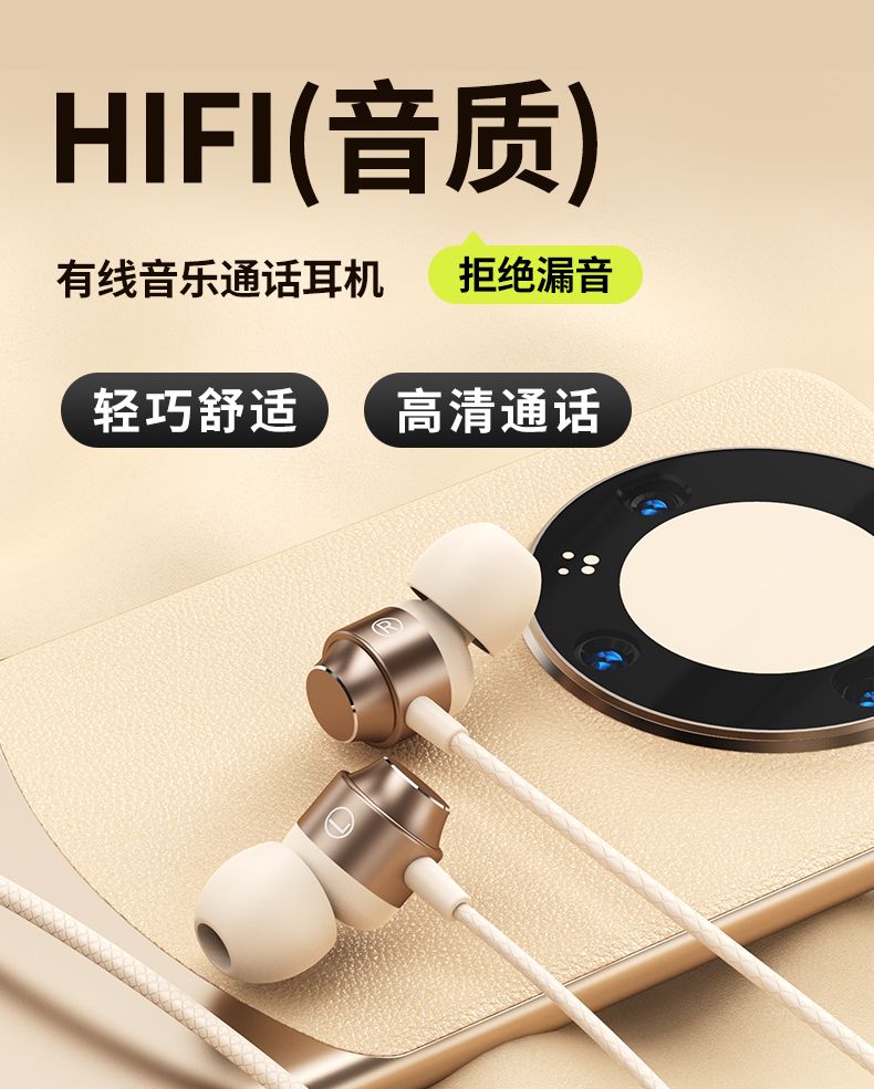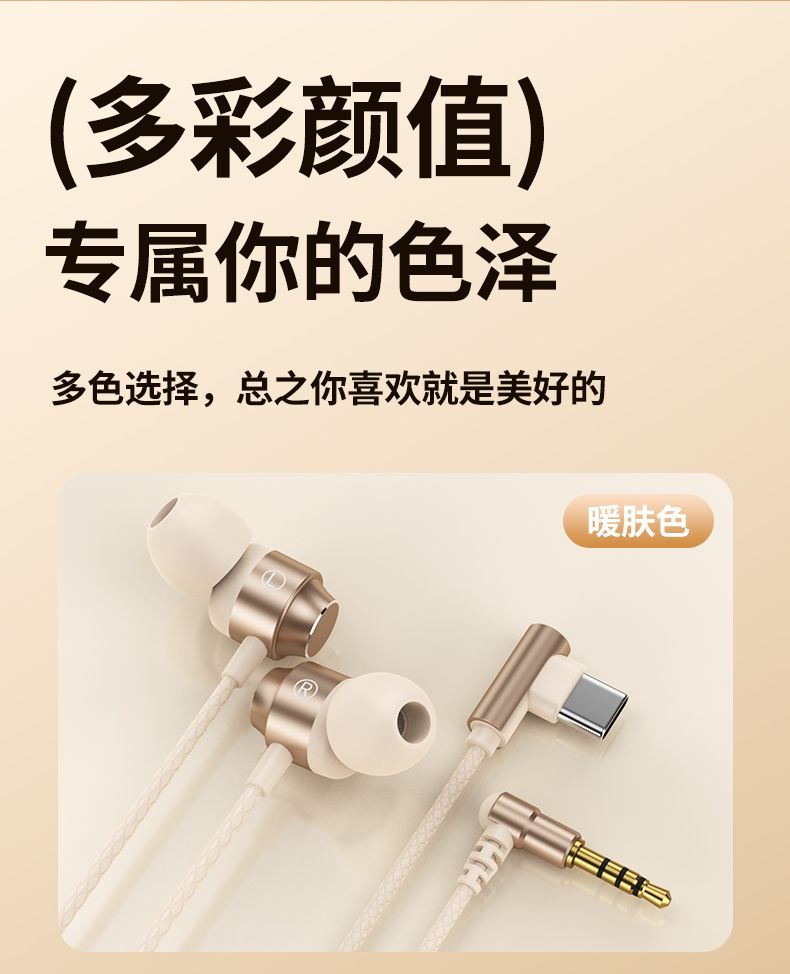 有线耳机重低音K歌typec适用于华为OPPOvivo小米荣耀手机通用圆孔