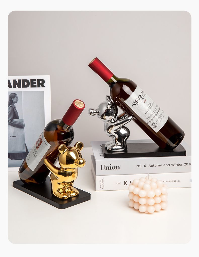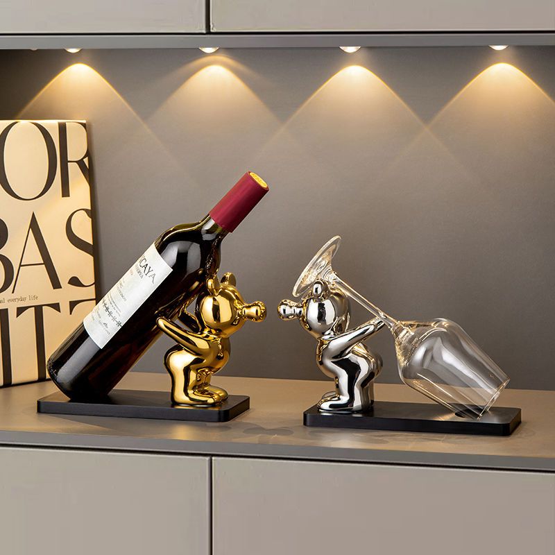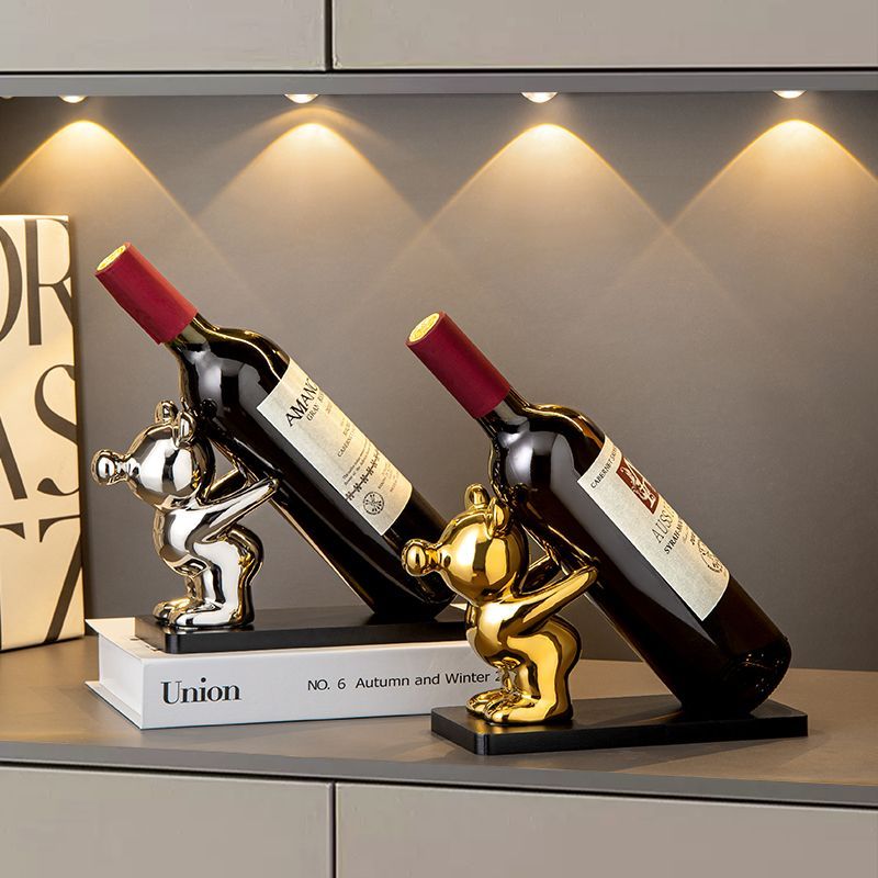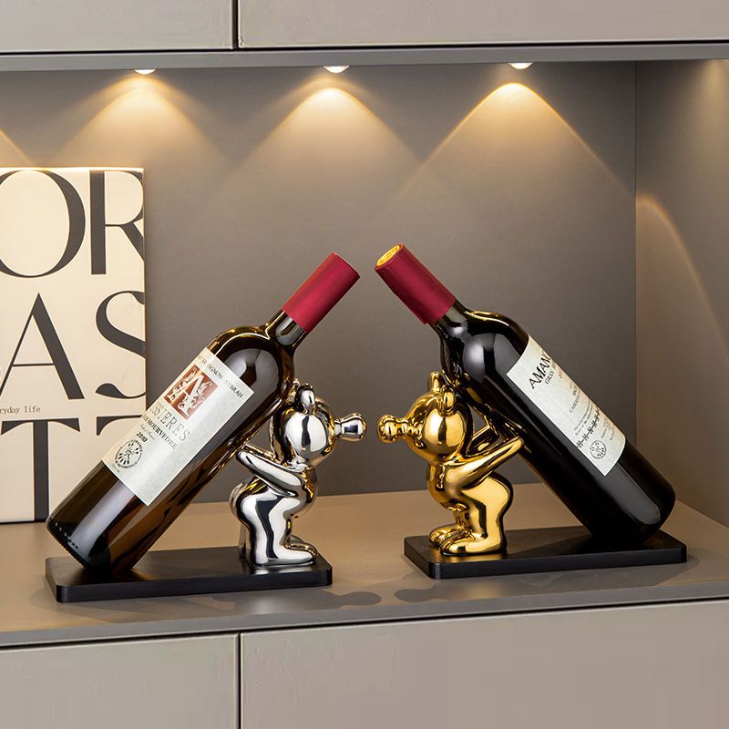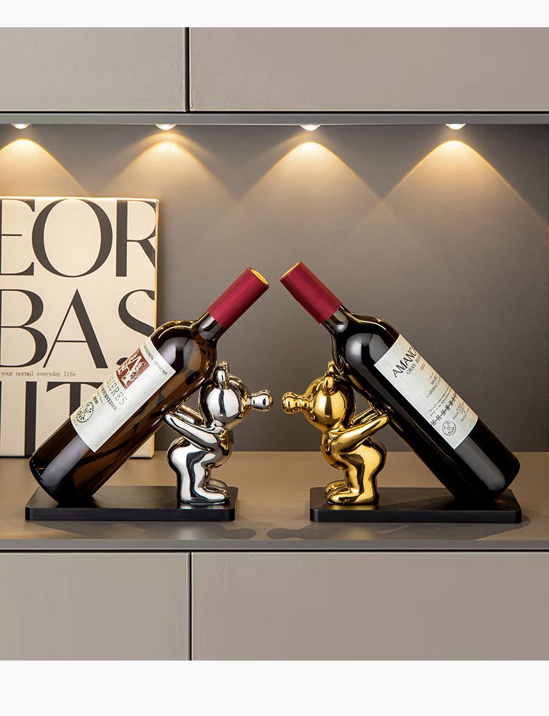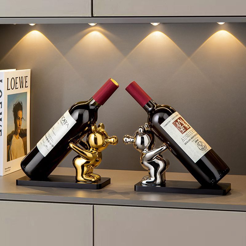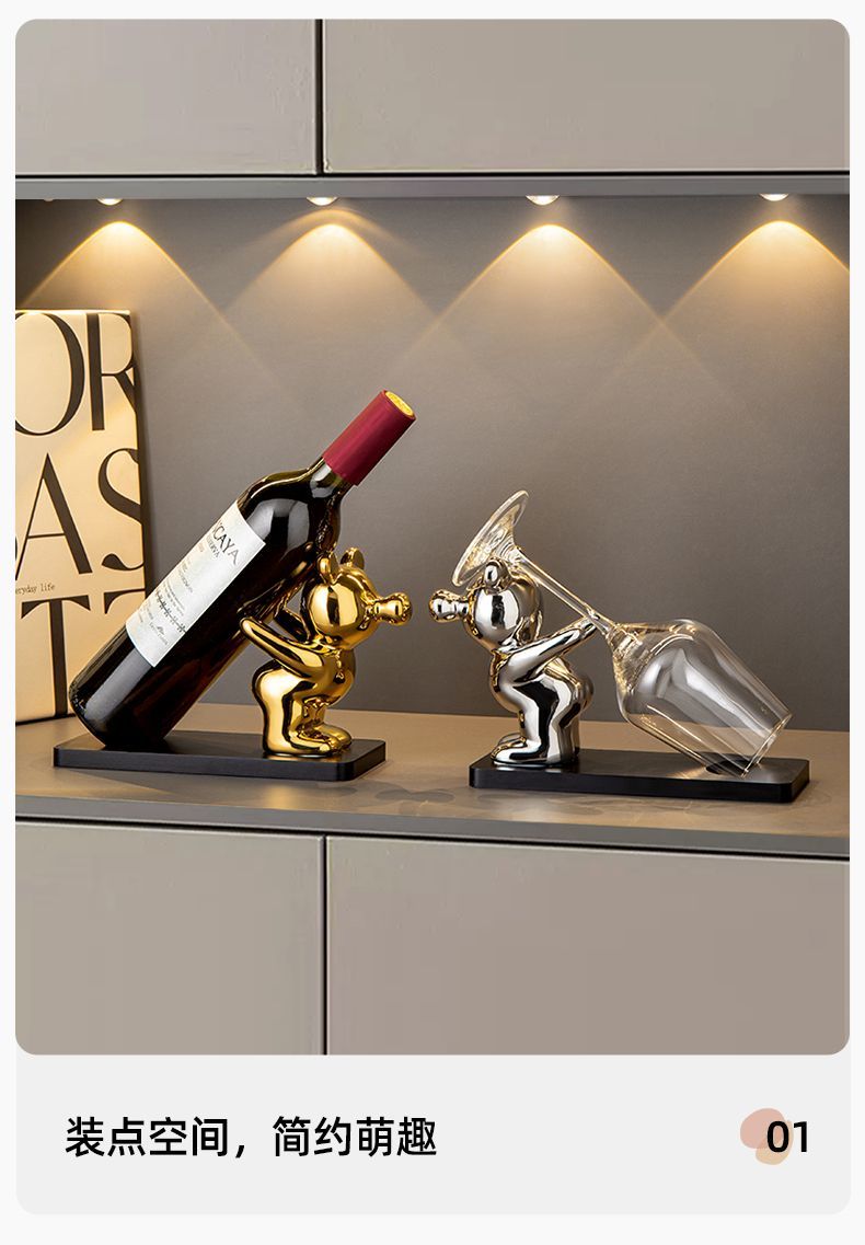 泡泡熊红酒架摆件客厅现代轻奢高档创意玄关酒柜餐边柜家居装饰品