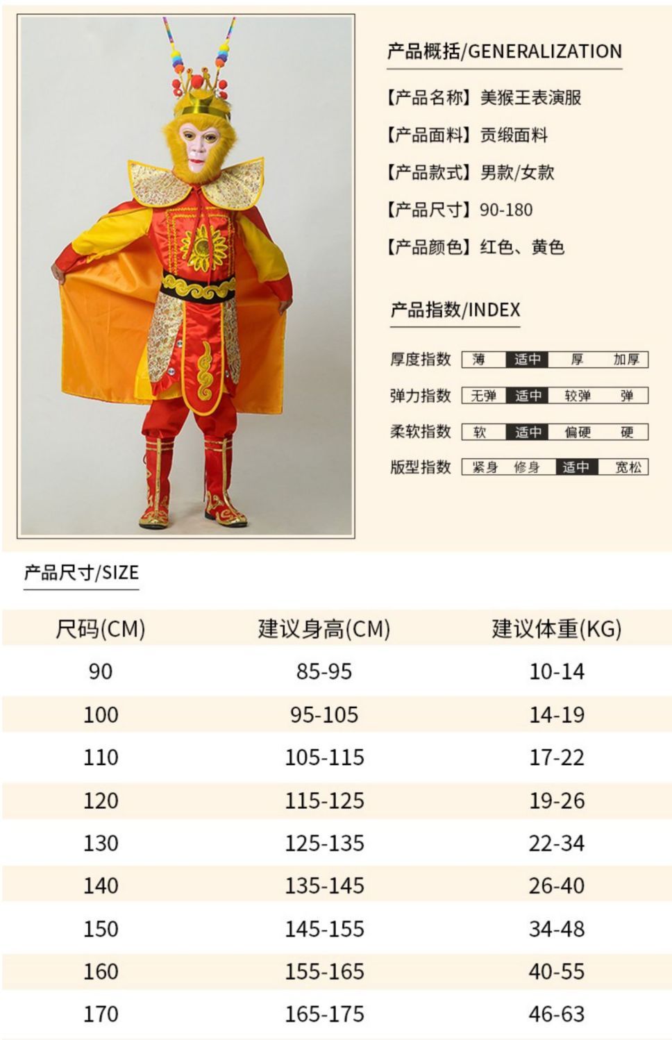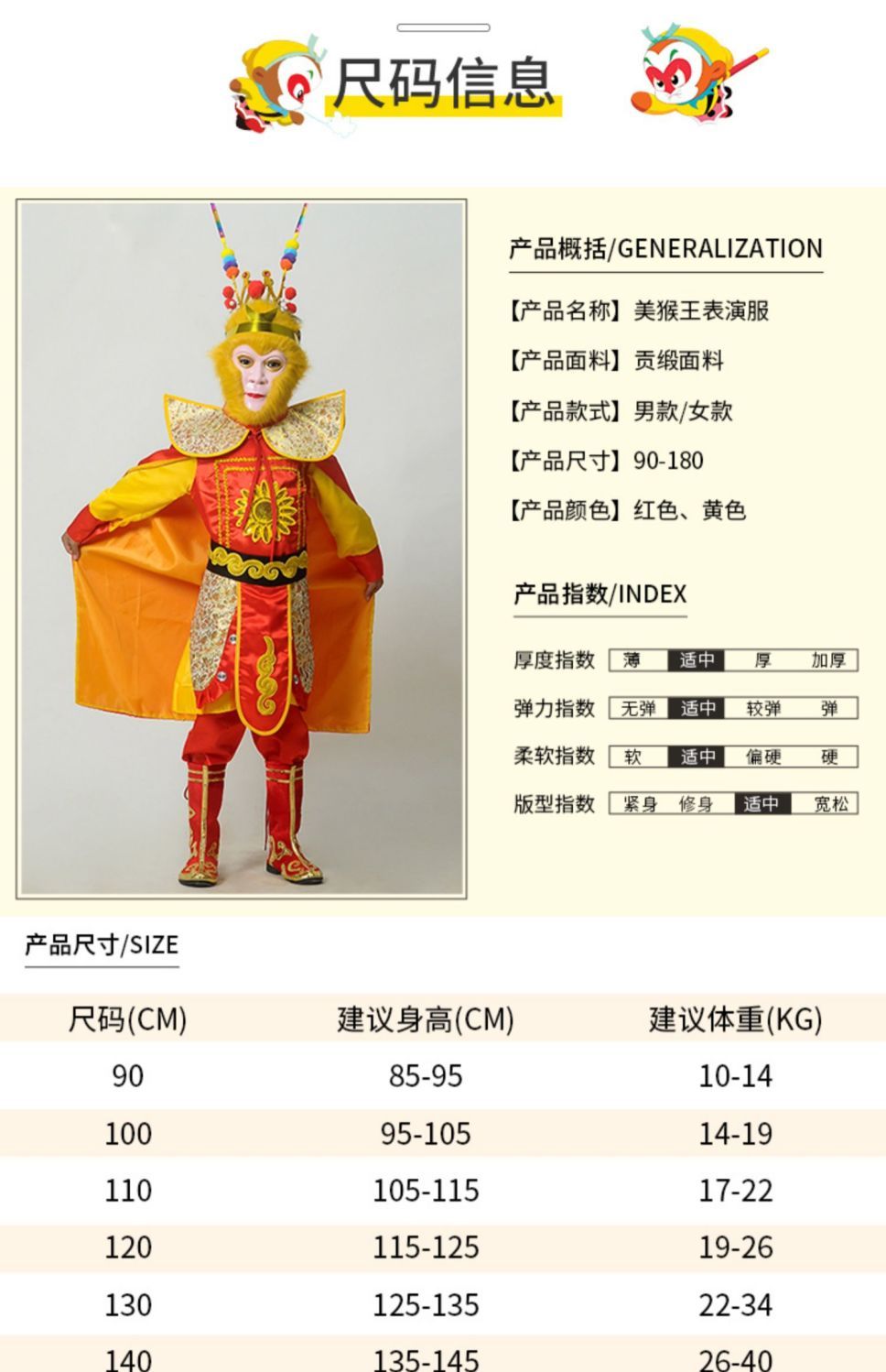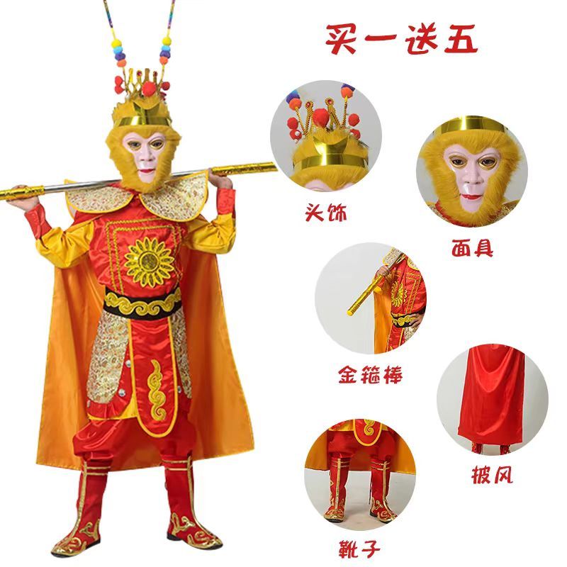 孙悟空cos服装儿童演出齐天大圣全套表演服万圣节美猴王孙行者衣