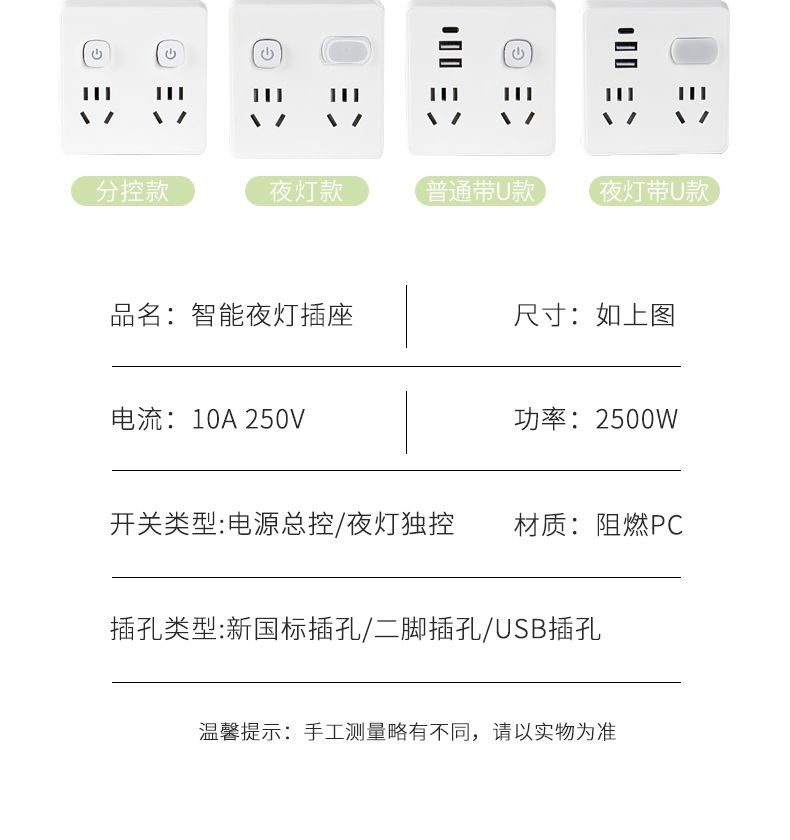 | one expansion four plug switch + night light * [upgrade practical model]](一扩四插位开关+夜灯*【升级实用款】) | USD $3.52 | 99999 piece available |