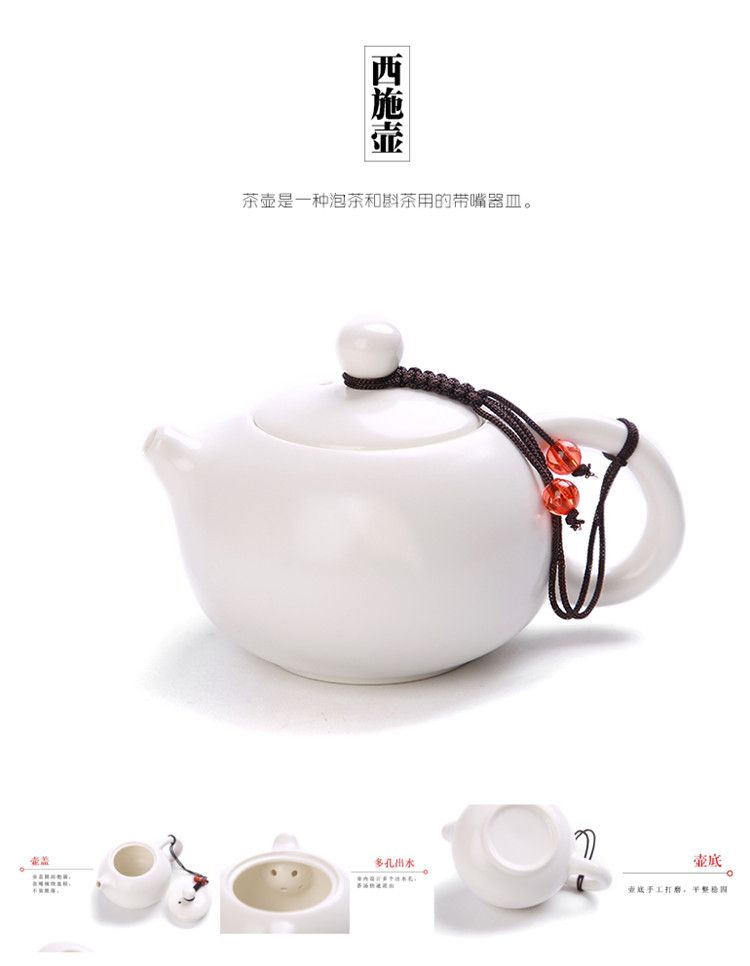 | white xi shi pot a pot of 4 cups + bag + bamboo plate tea clamp tea towel(白色西施壶一壶4杯+包+竹盘茶夹茶巾) | USD $4.43 | 99999 piece available |