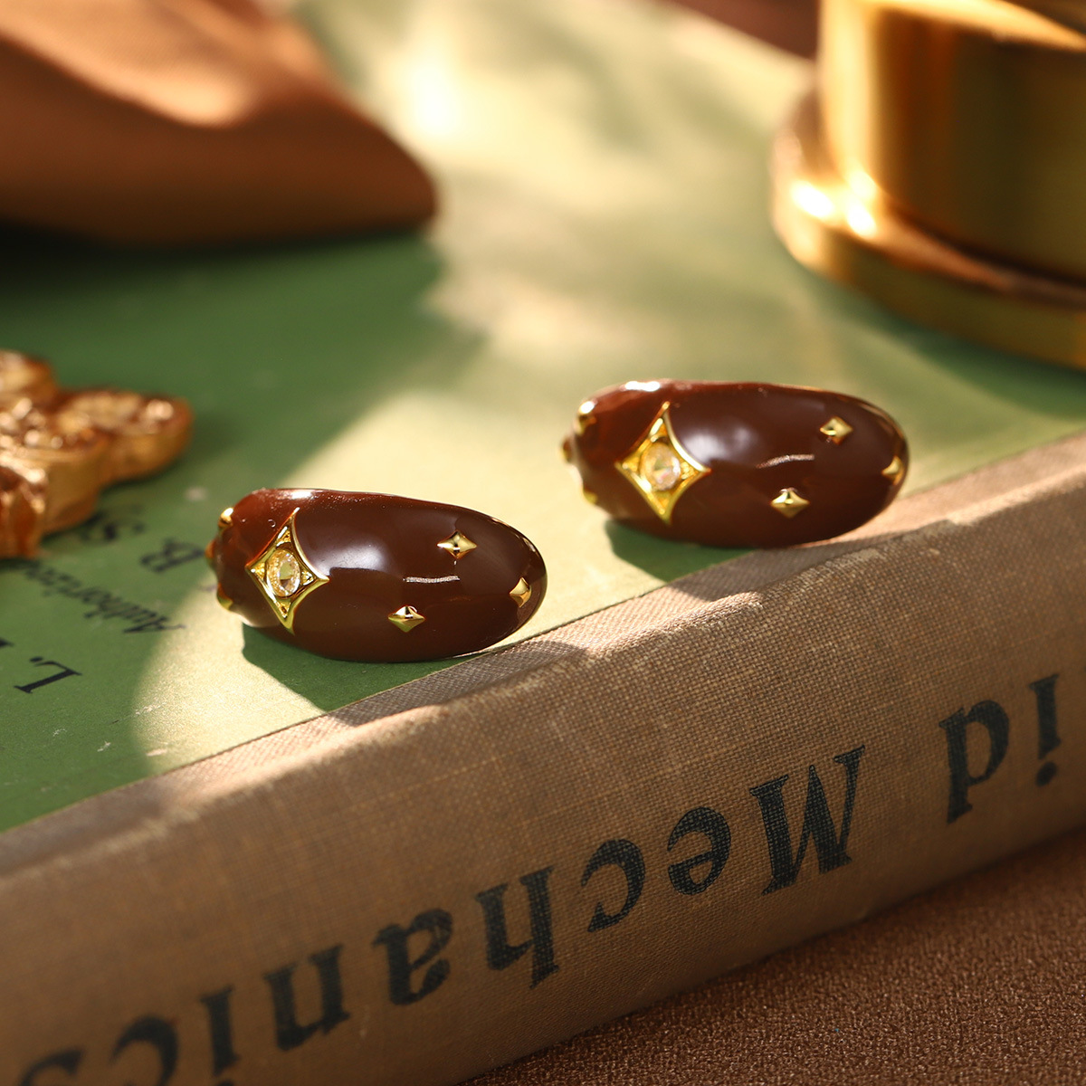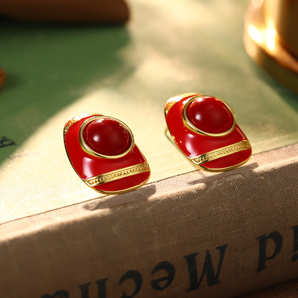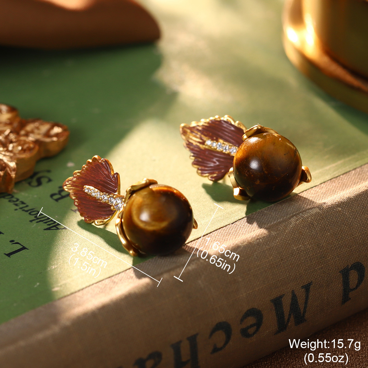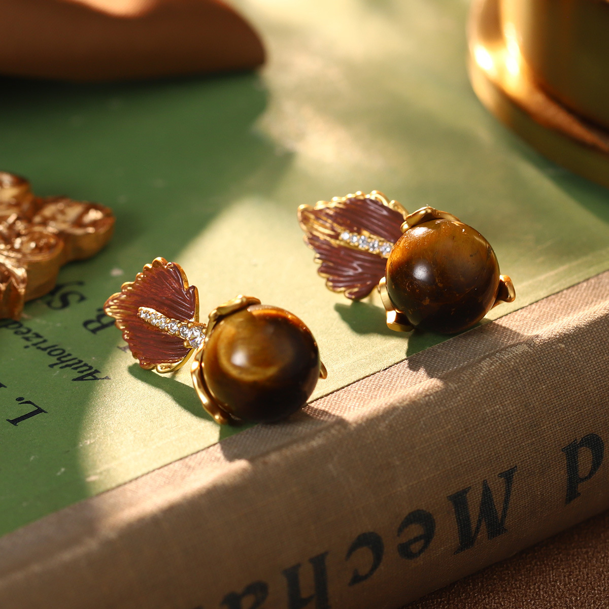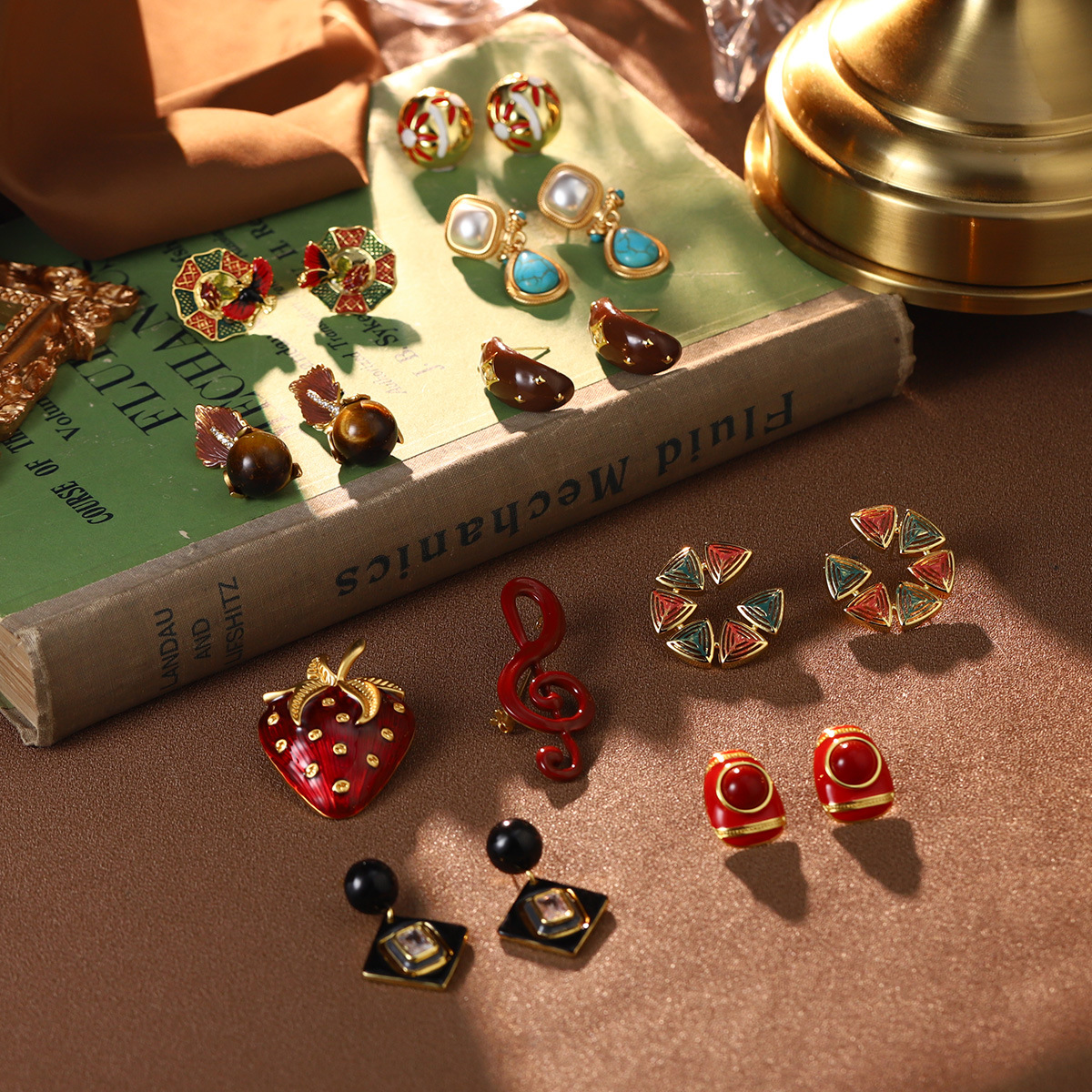 复古高级银针流苏复古草莓音符耳环虎眼小众气质耳饰高级保色耳钉