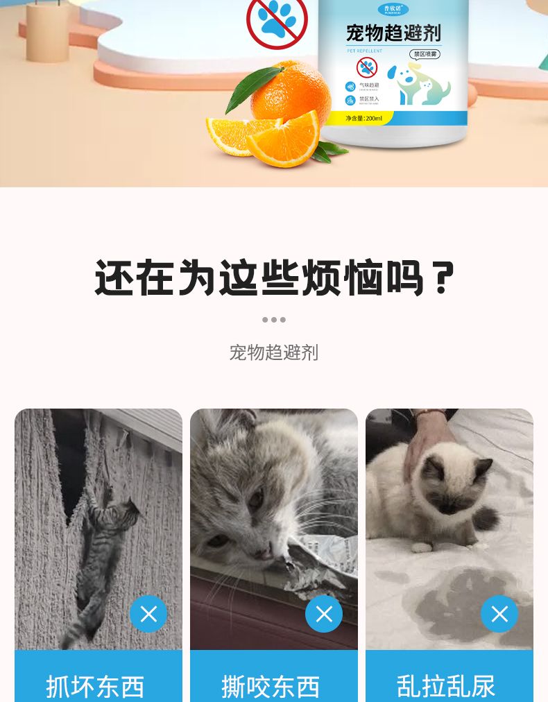 驱猫神器防猫上床乱拉尿长效驱赶猫咪宠物禁区除野猫柑橘子味喷雾