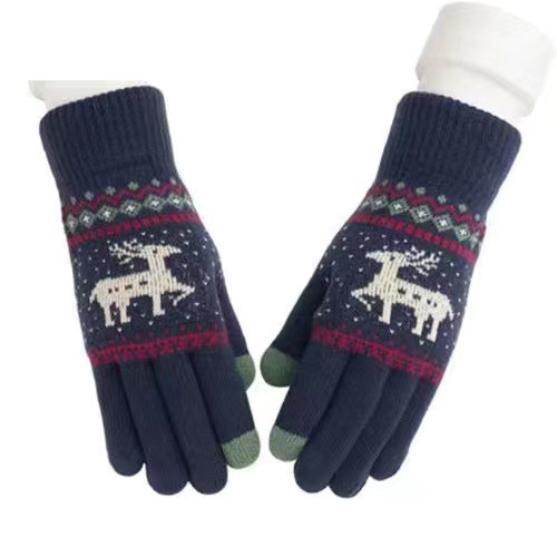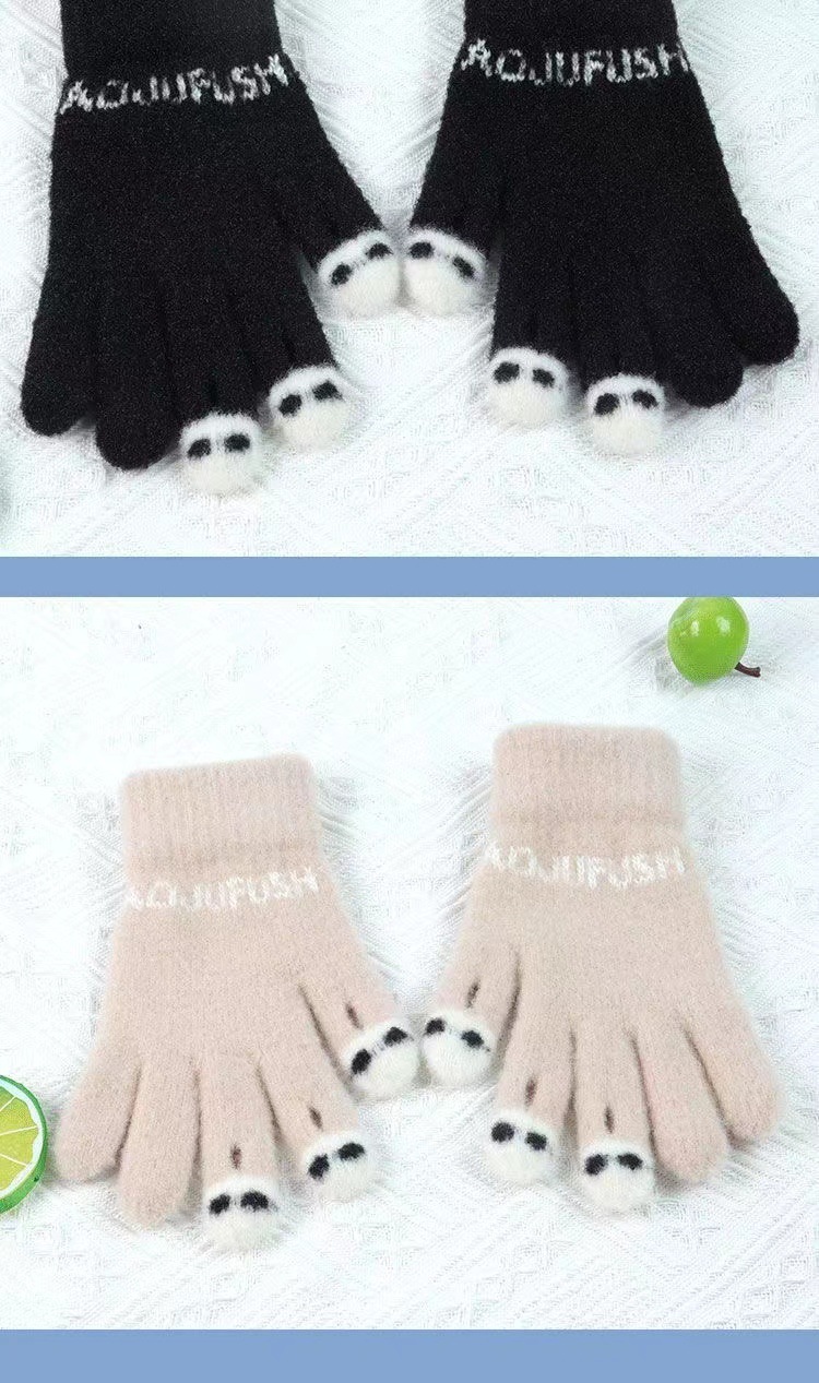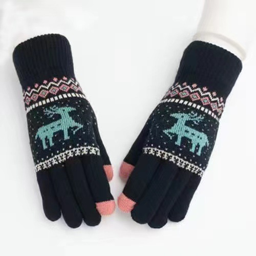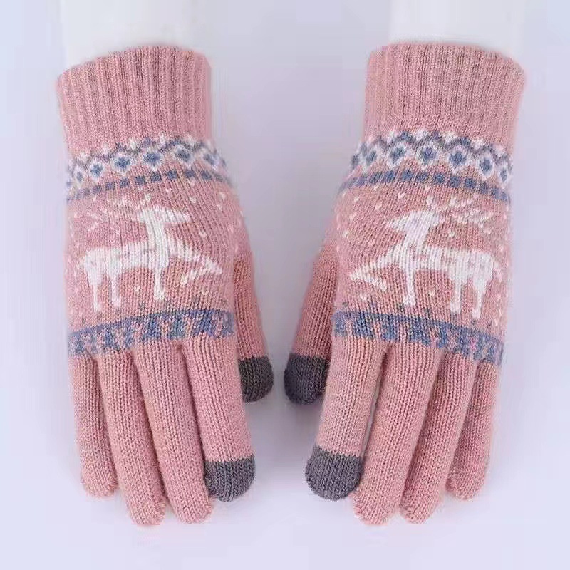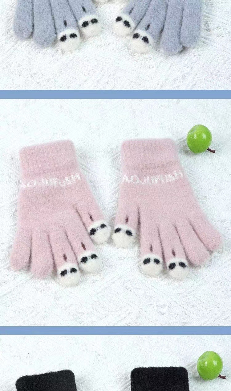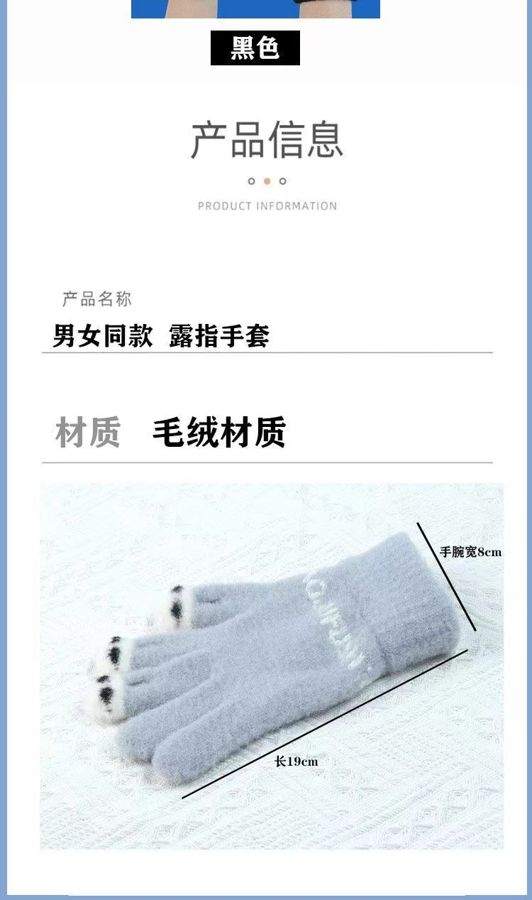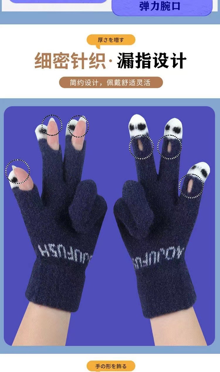 手套女士冬季新款露指加厚保暖大童可爱学生防寒毛线分指触屏手套