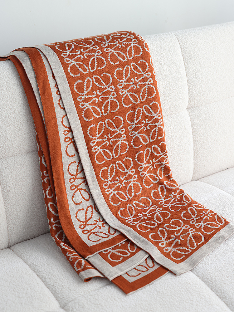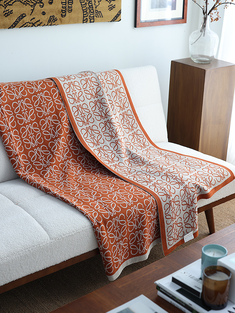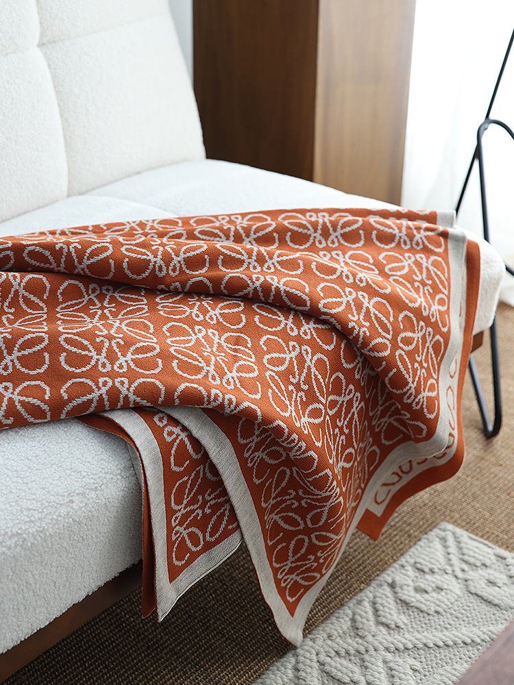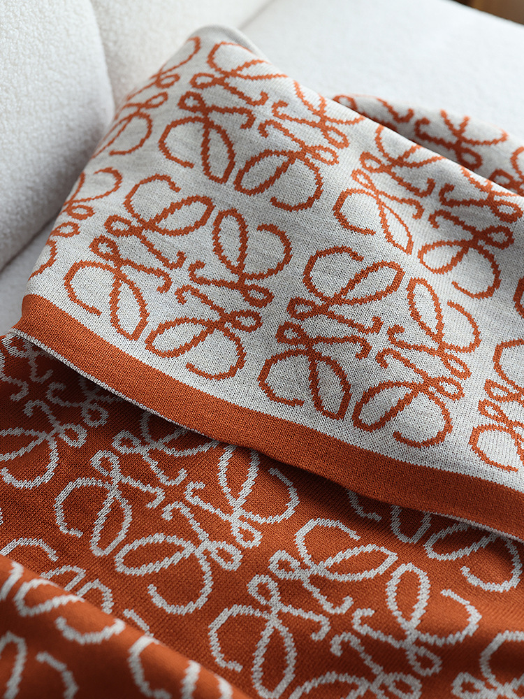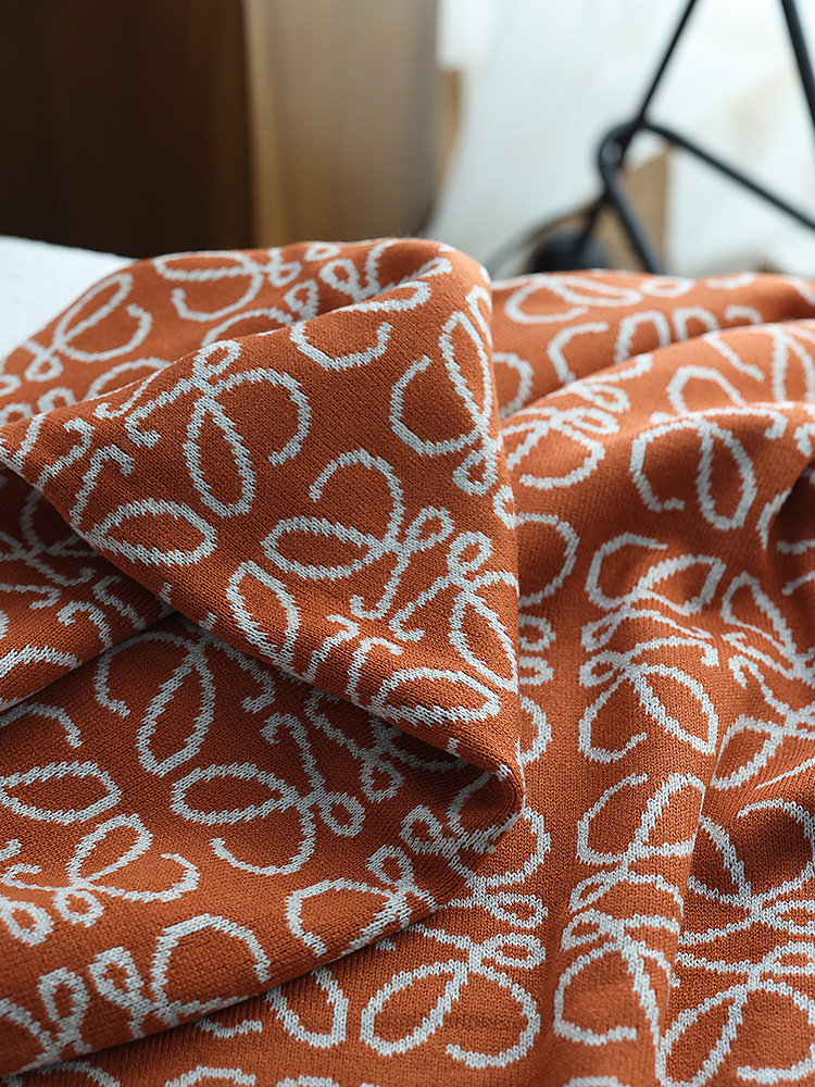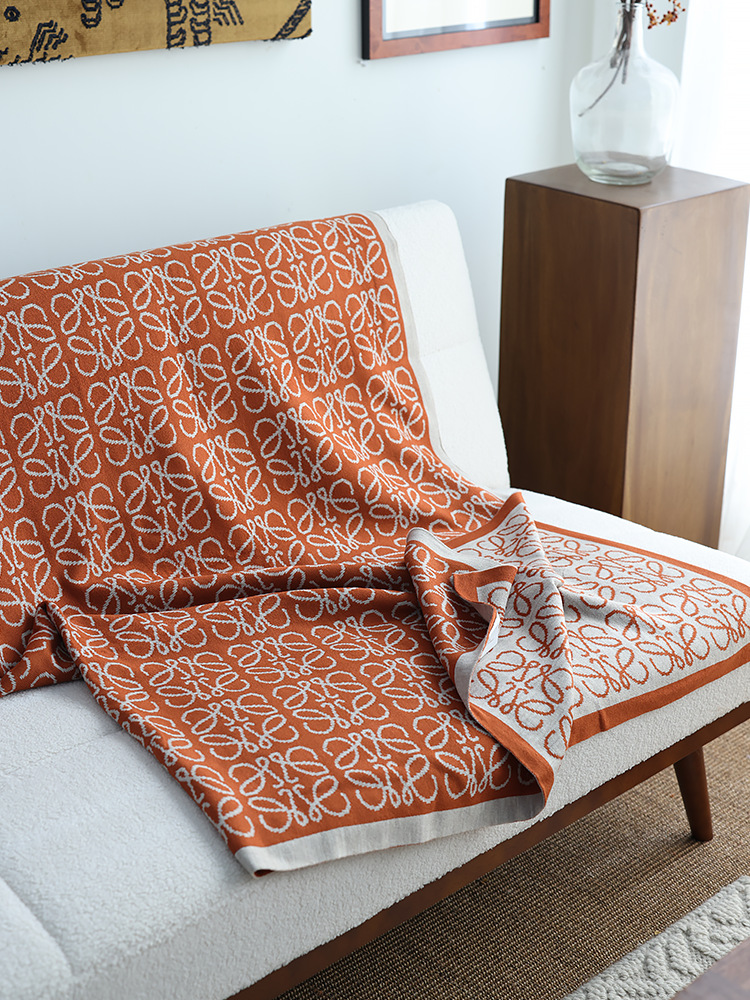 美式针织毯春秋橘色盖毯细织毛毯装饰样板间民宿床尾巾毯工厂现货