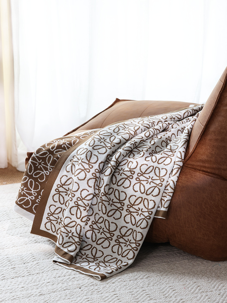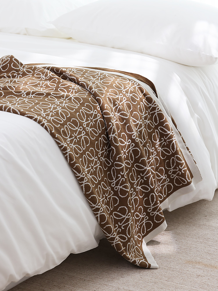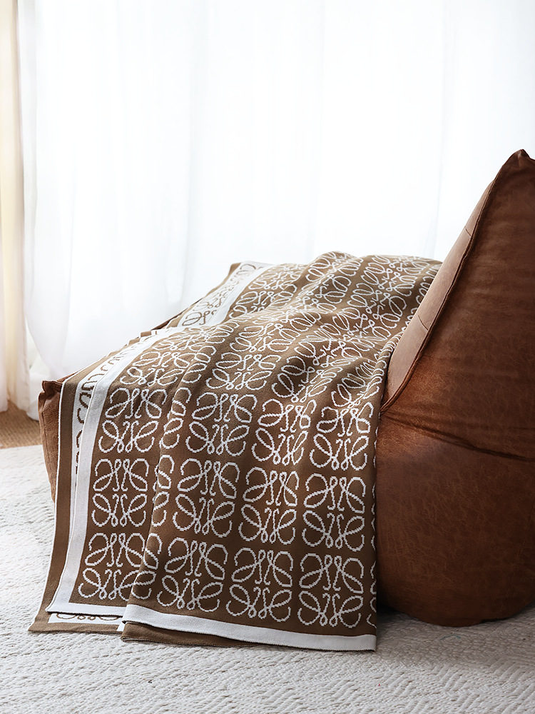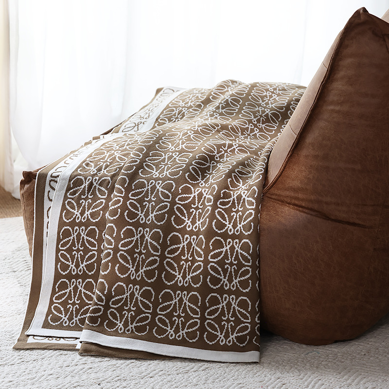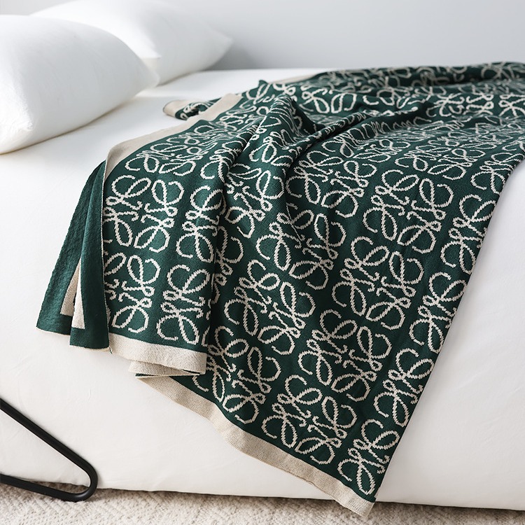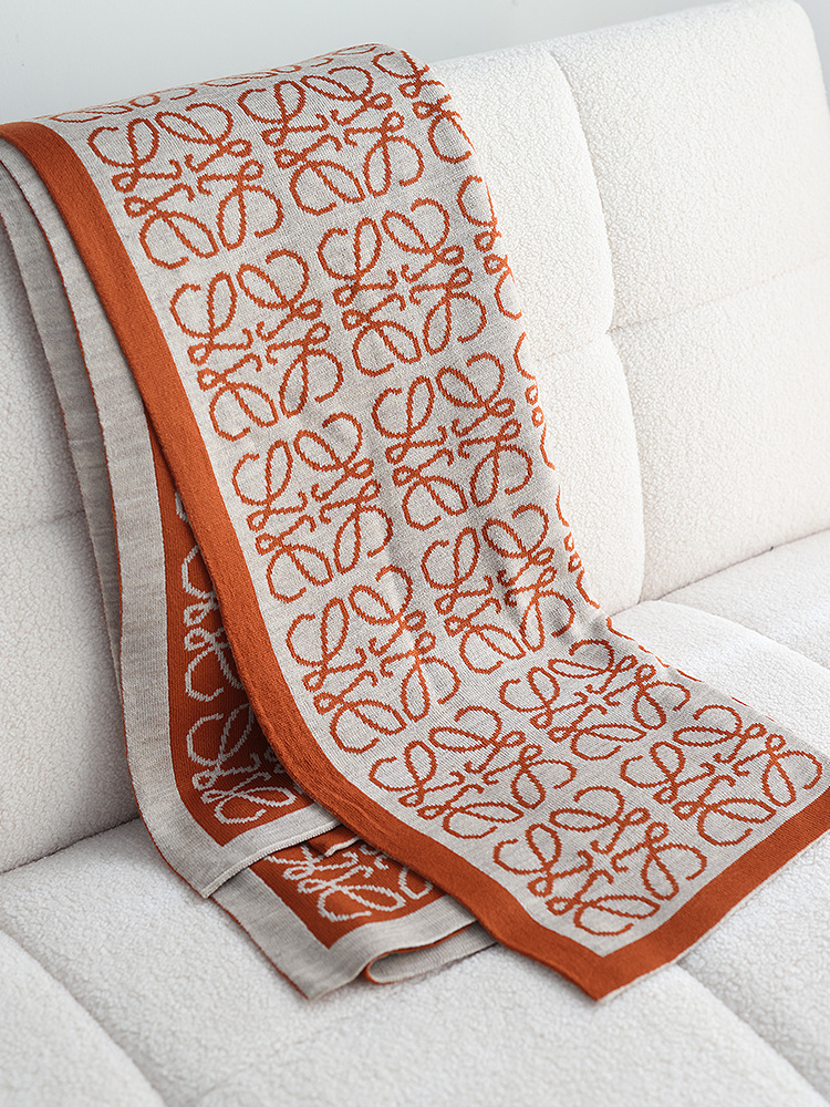 美式针织毯春秋橘色盖毯细织毛毯装饰样板间民宿床尾巾毯工厂现货