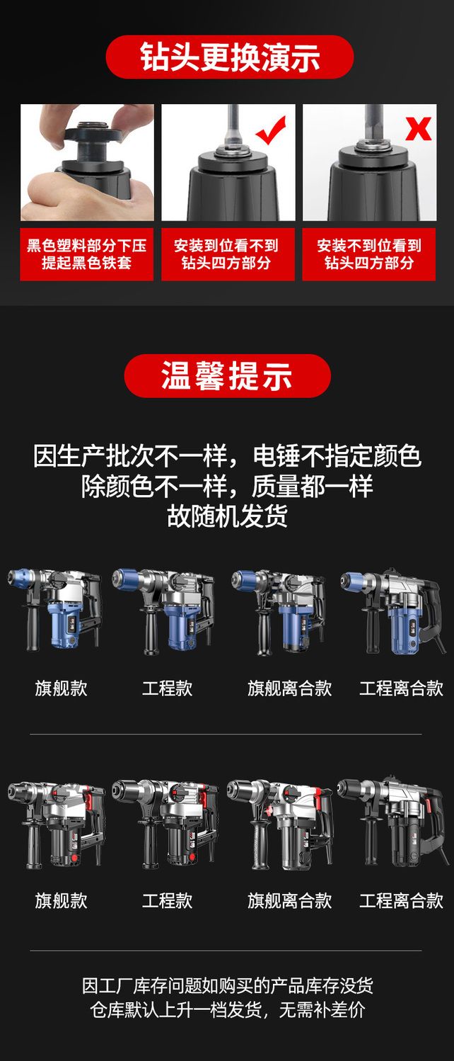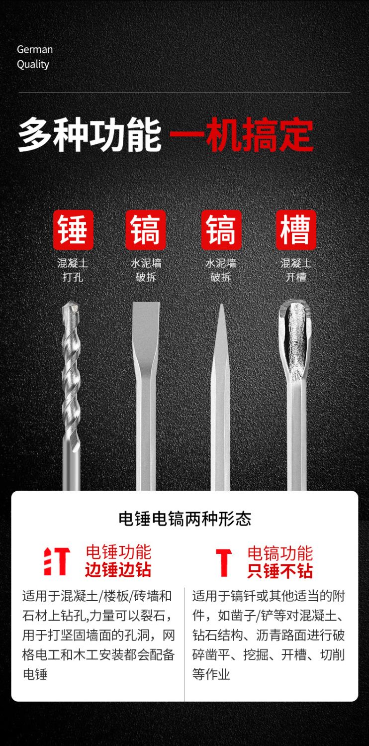 电锤电镐电钻大功率三用混凝土家用工程多功能重型锤工业级冲击钻