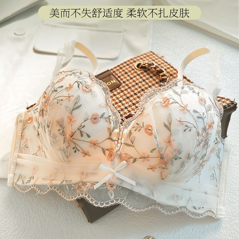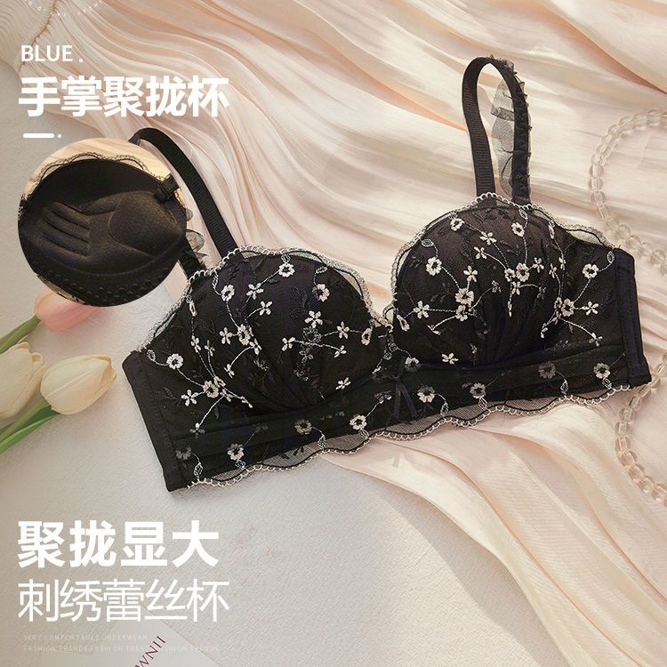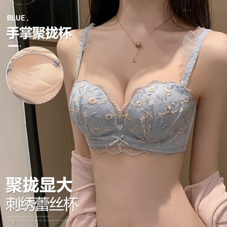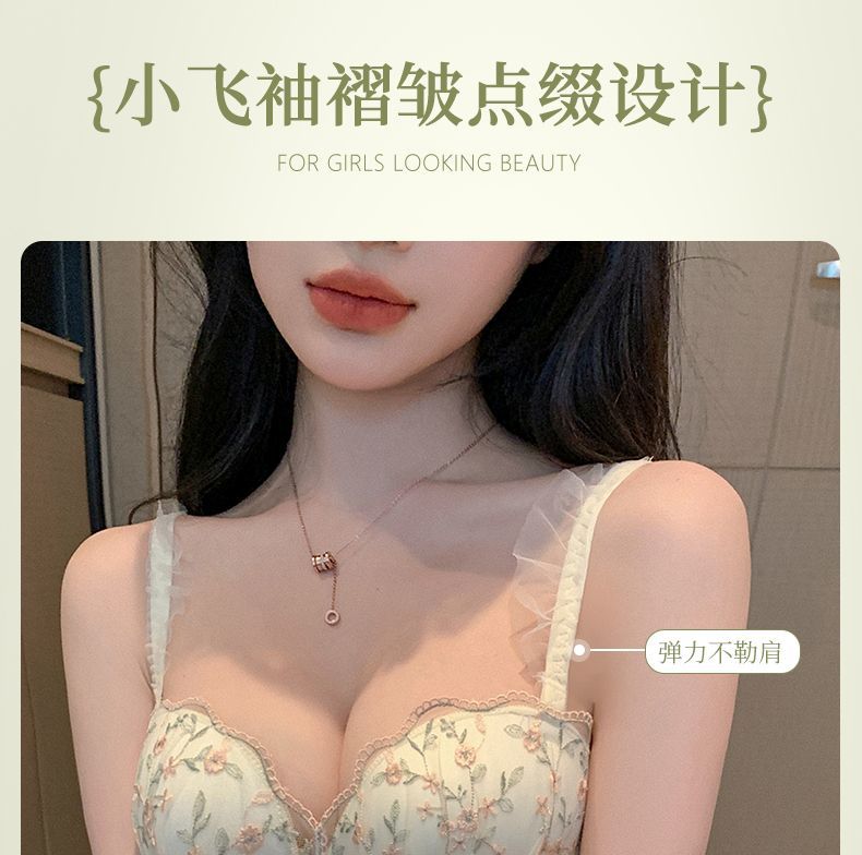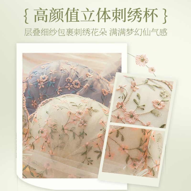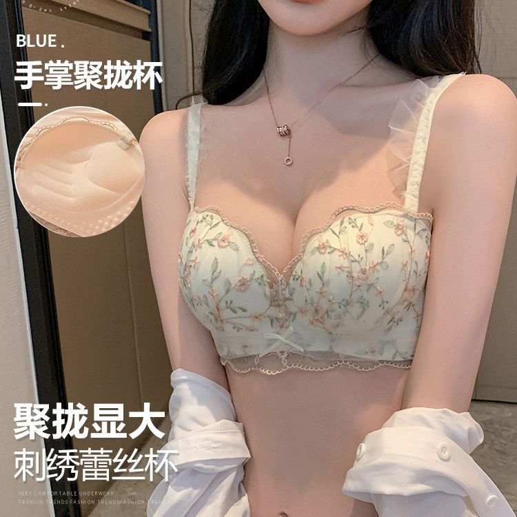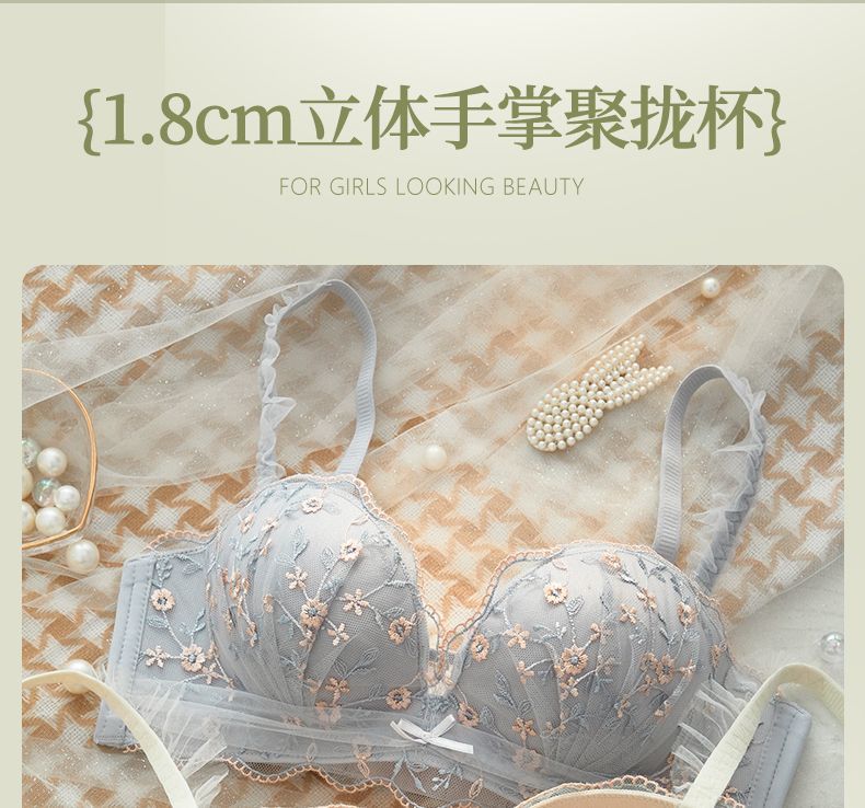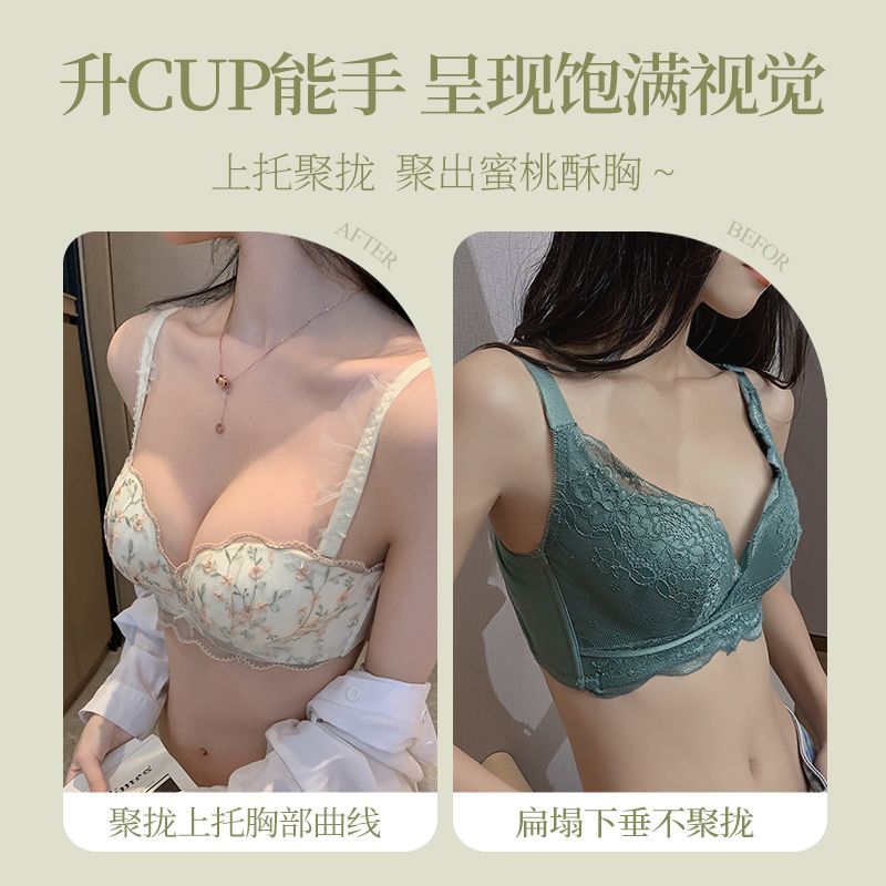 甜欲蕾丝内衣女小胸聚拢上托bra防下垂无钢圈提胸少女碎花文胸罩