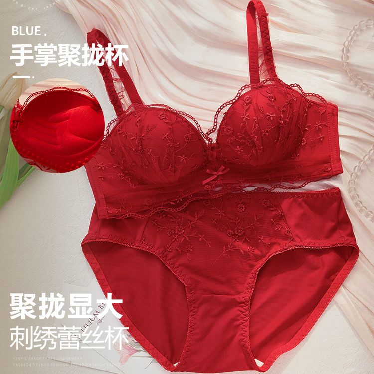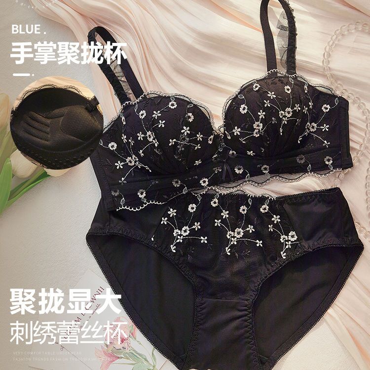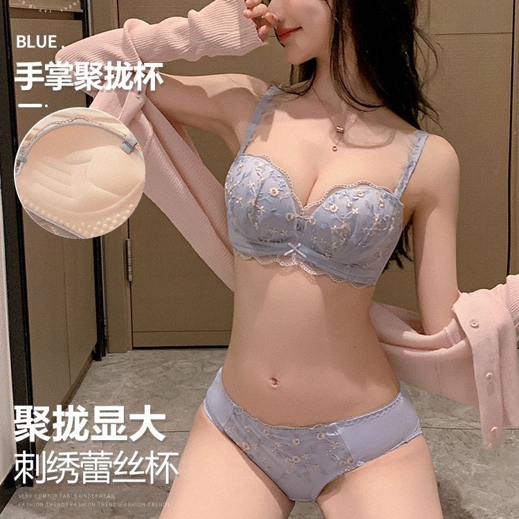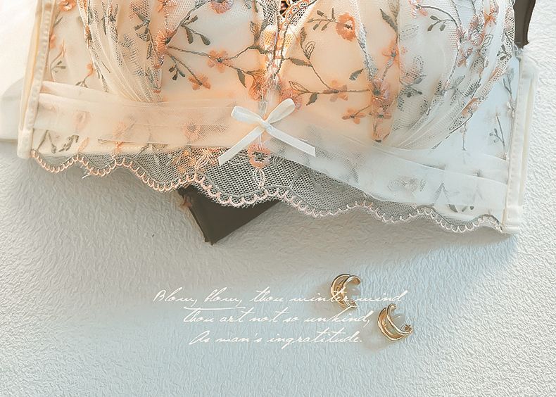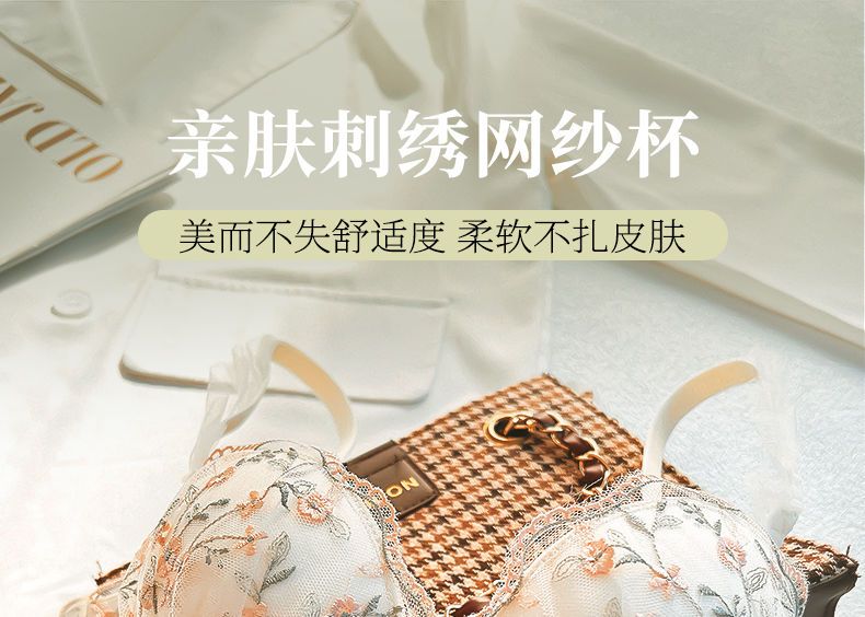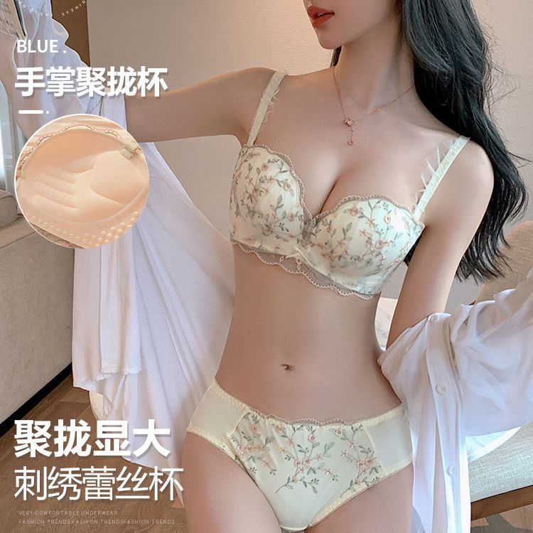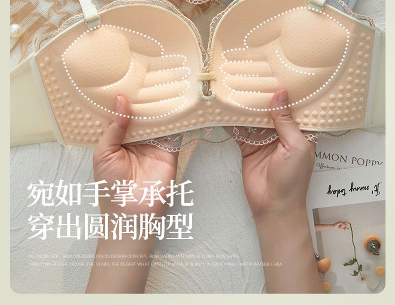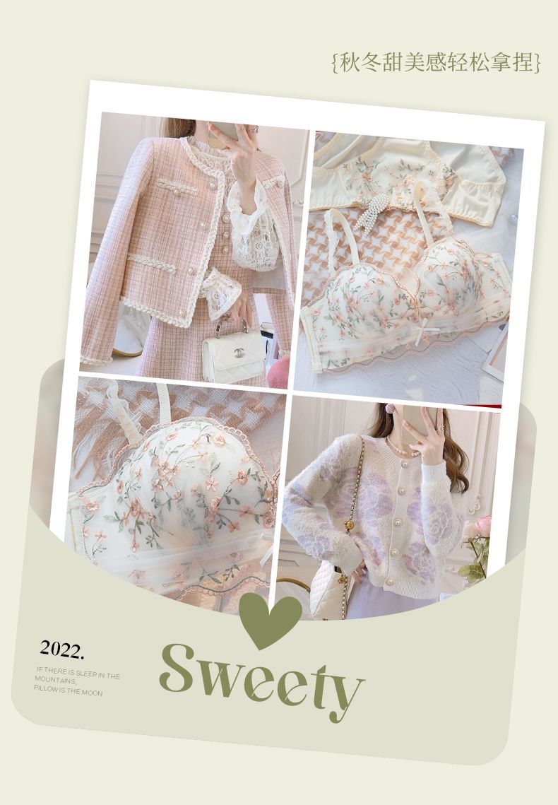 甜欲蕾丝内衣女小胸聚拢上托bra防下垂无钢圈提胸少女碎花文胸罩