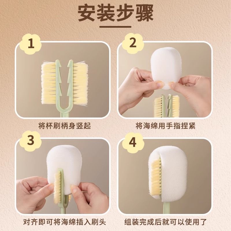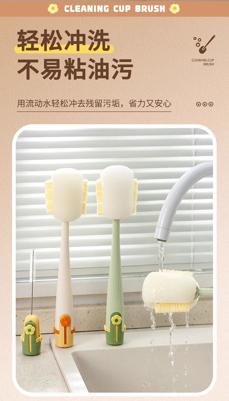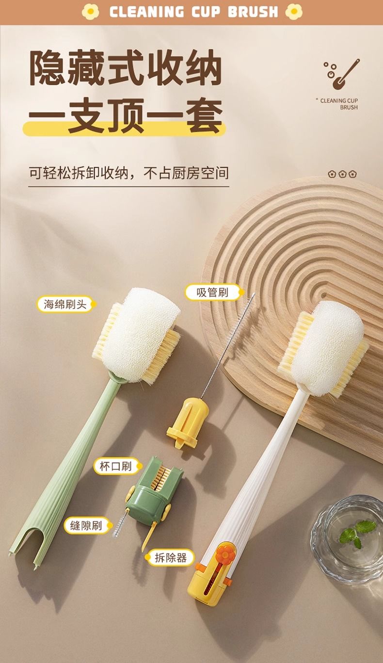 杯刷水杯清洗神器长柄多功能五合一保温杯盖刷奶瓶专用清洁海绵刷