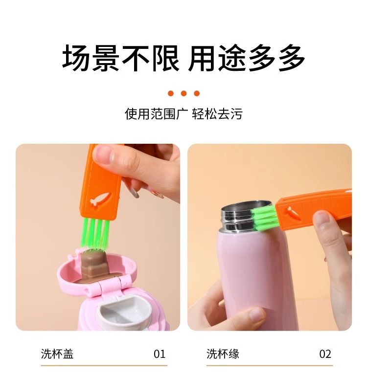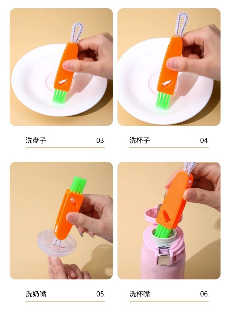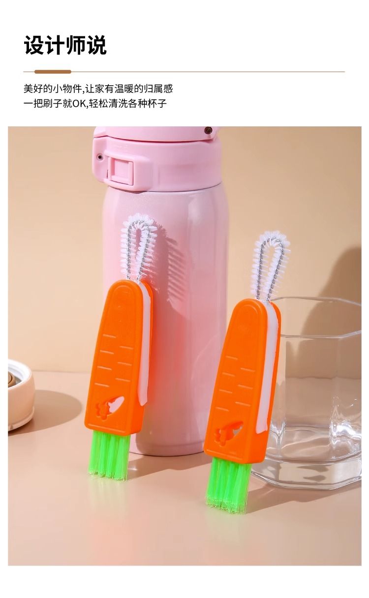 胡萝卜杯刷杯盖吸管刷凹槽清洁刷子奶瓶刷奶嘴刷保温杯缝隙清洗刷