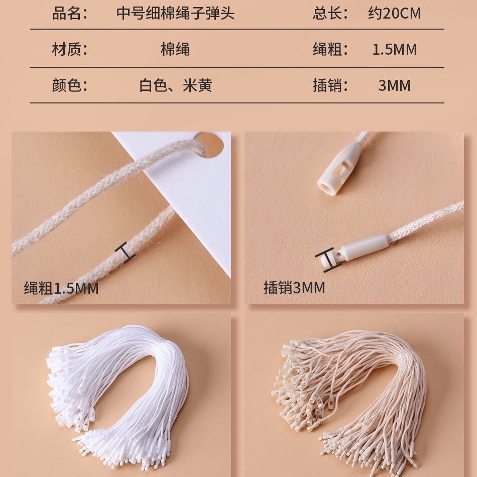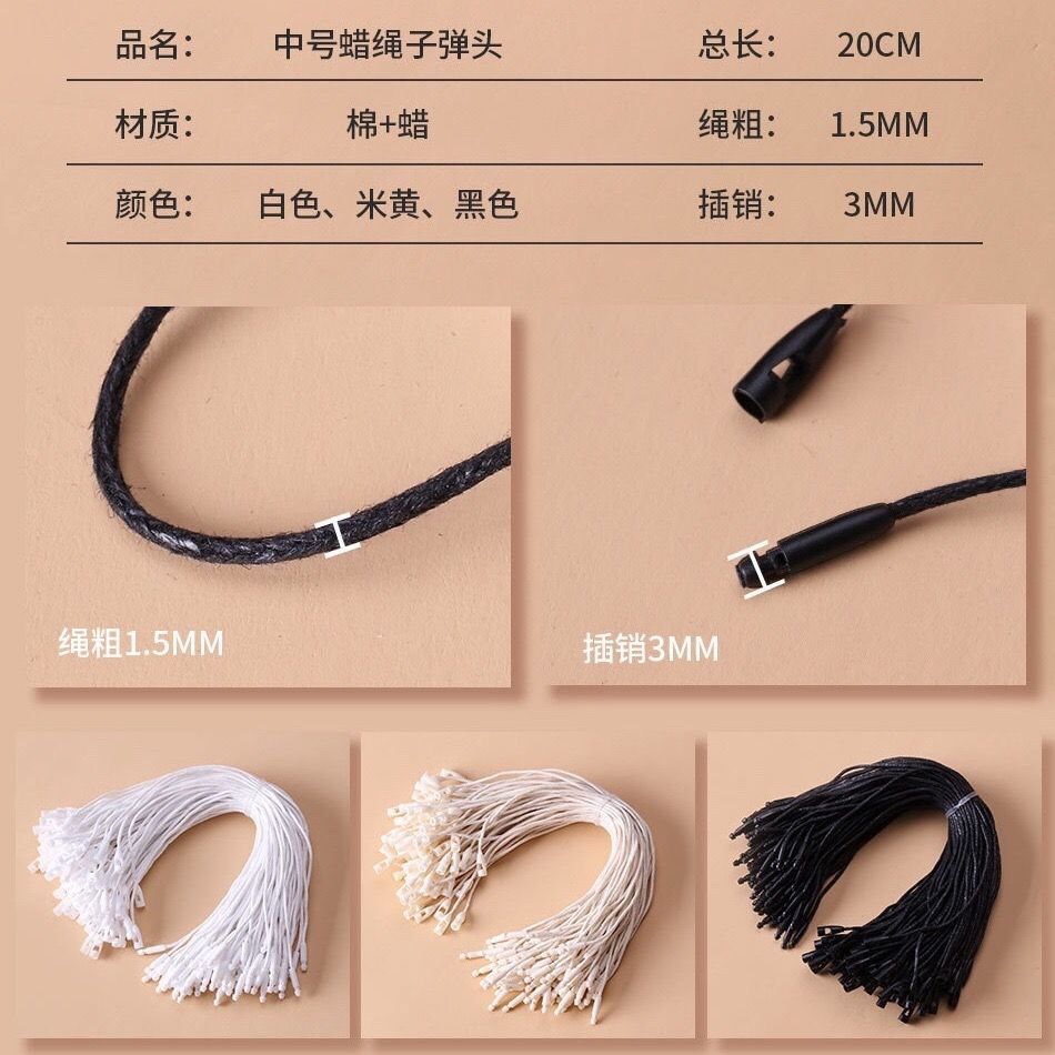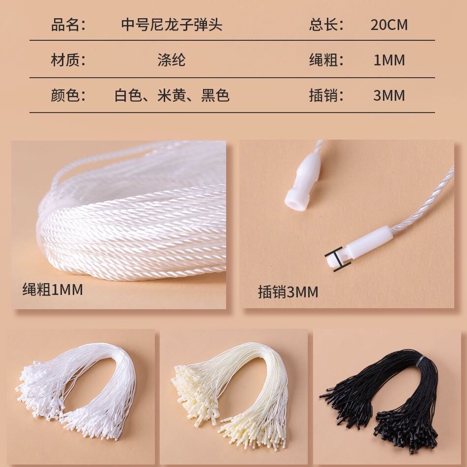 现货通用服装吊粒吊绳蜡绳涤纶棉绳尼龙白色黑色吊牌绳子衣服绳线