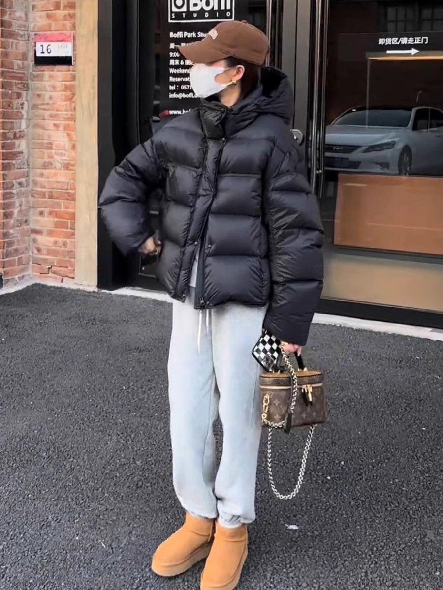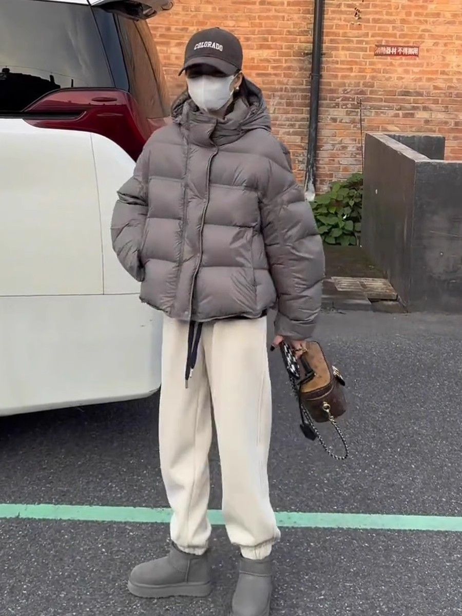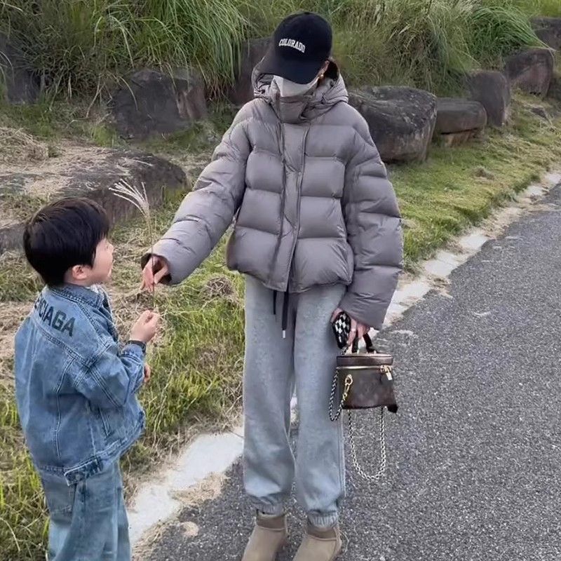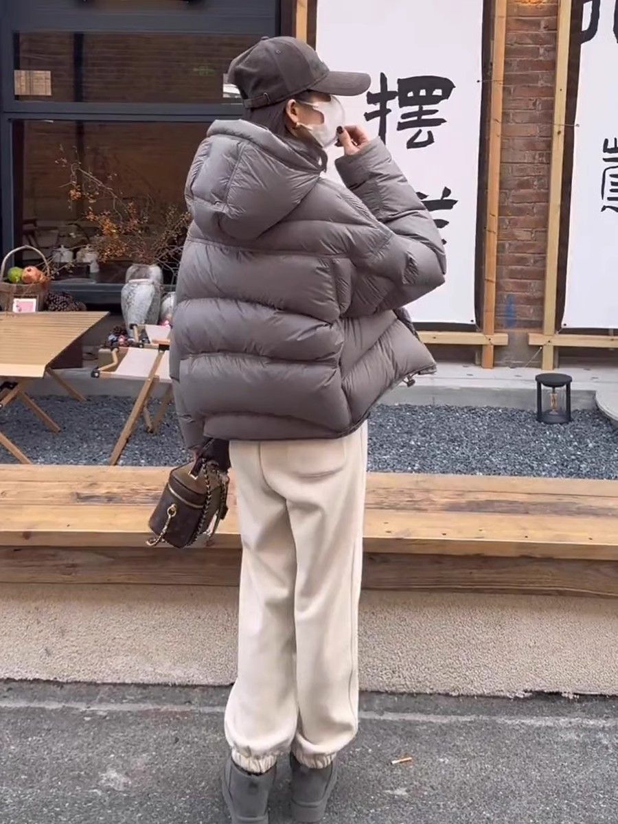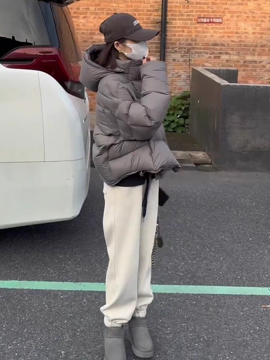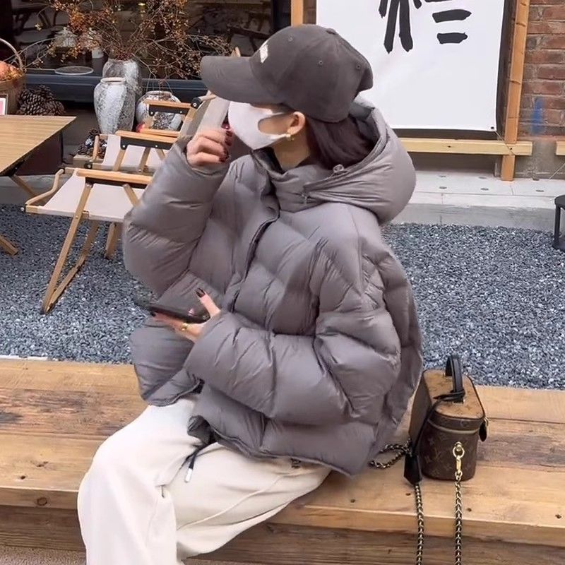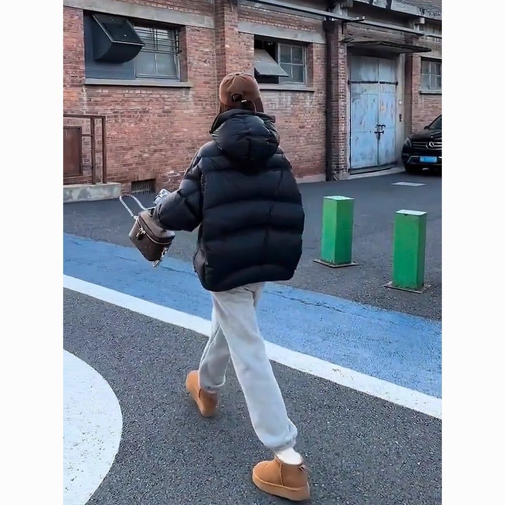 短款泡芙龟背连帽羽绒服女冬季新款2024爆款加厚保暖白鸭绒面包服
