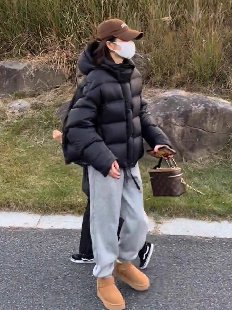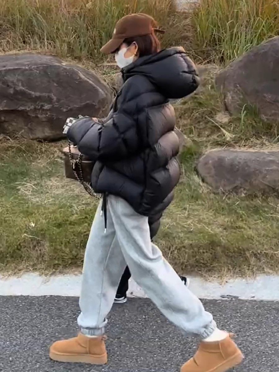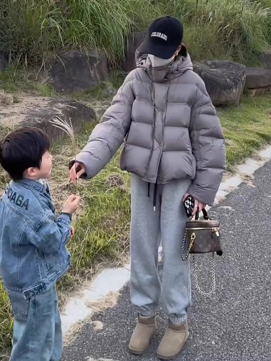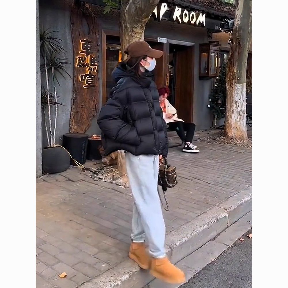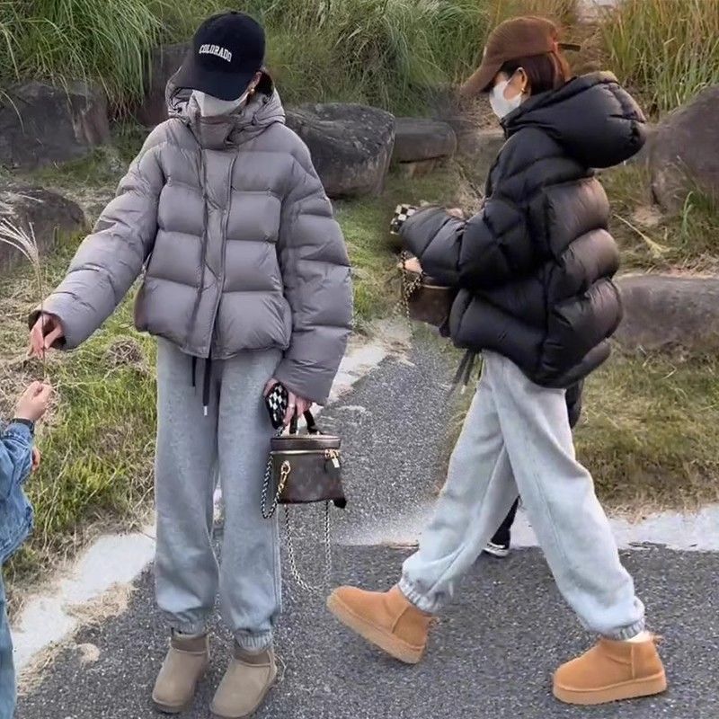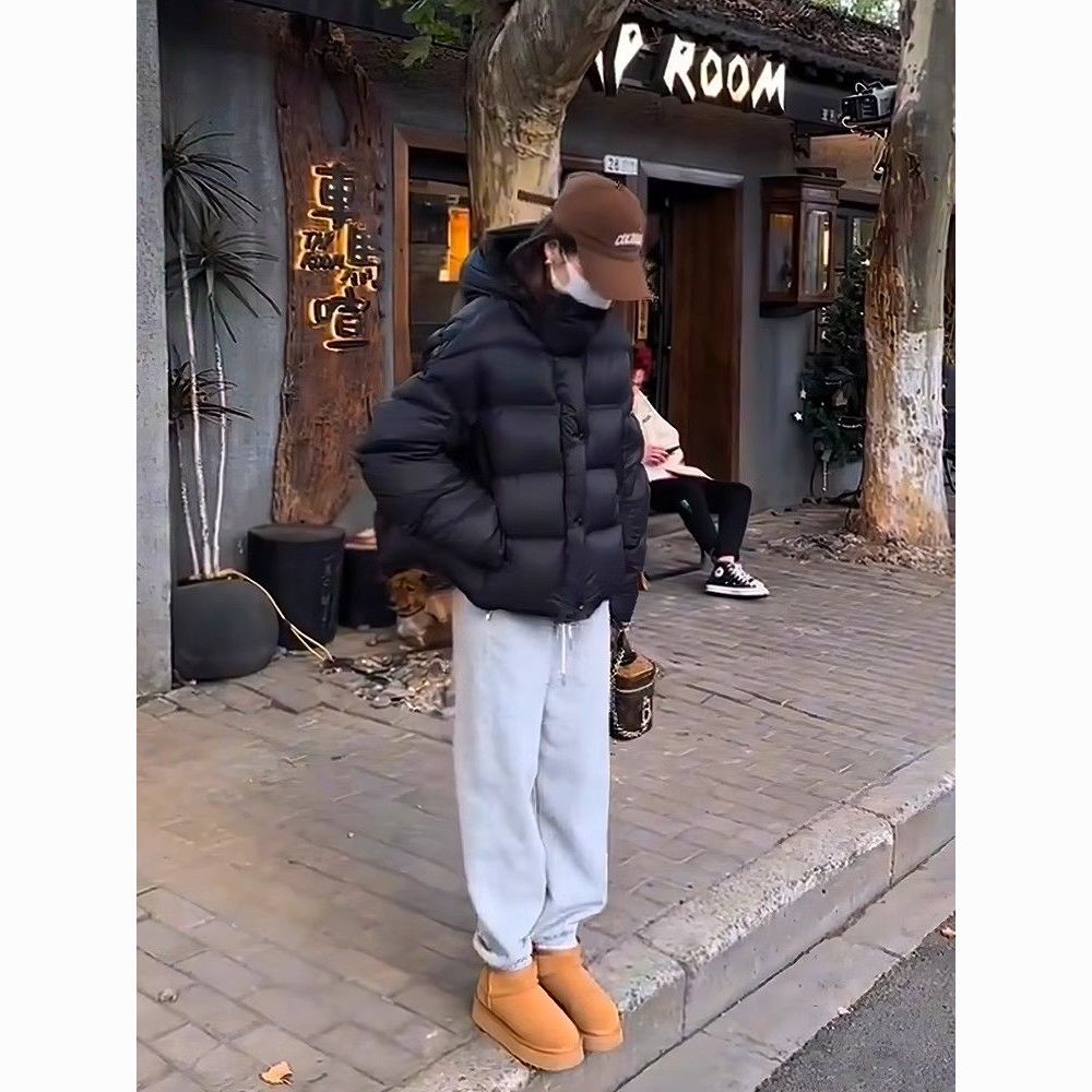 短款泡芙龟背连帽羽绒服女冬季新款2024爆款加厚保暖白鸭绒面包服