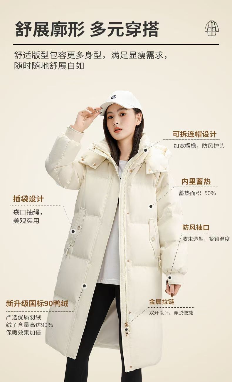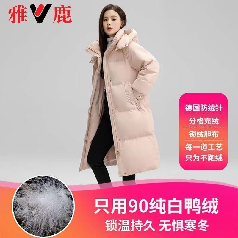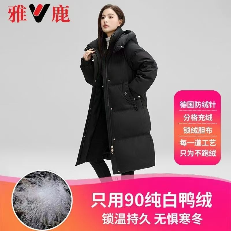 雅鹿羽绒服2024长款时尚韩版新款加厚中长款冬季宽松保暖鸭绒外套