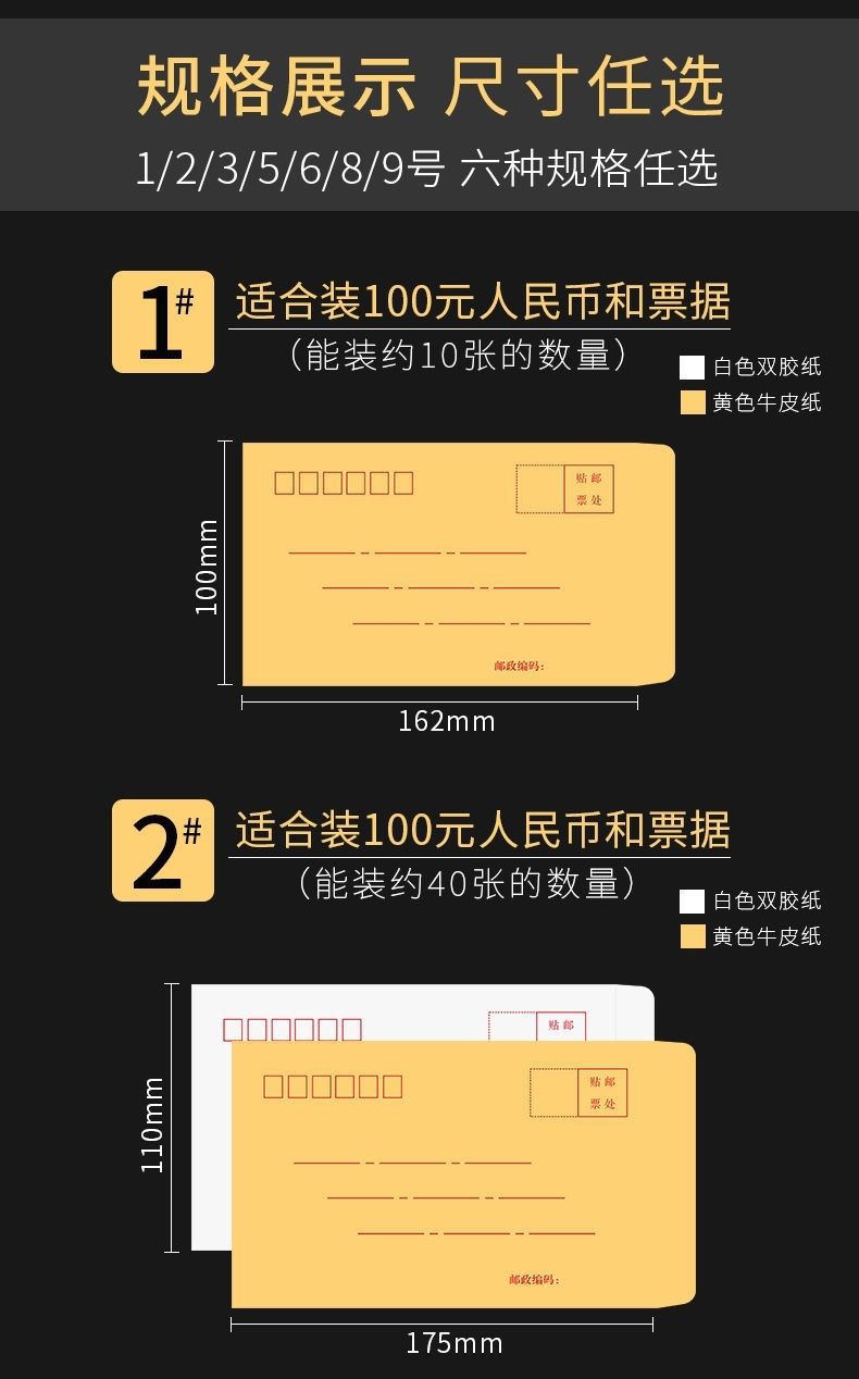 100个黄色信封牛皮纸邮局标准常规信封工资袋增值税发票信封定制