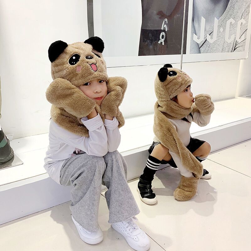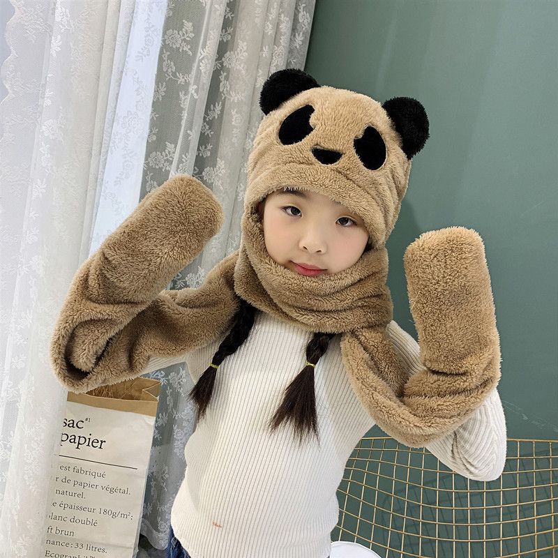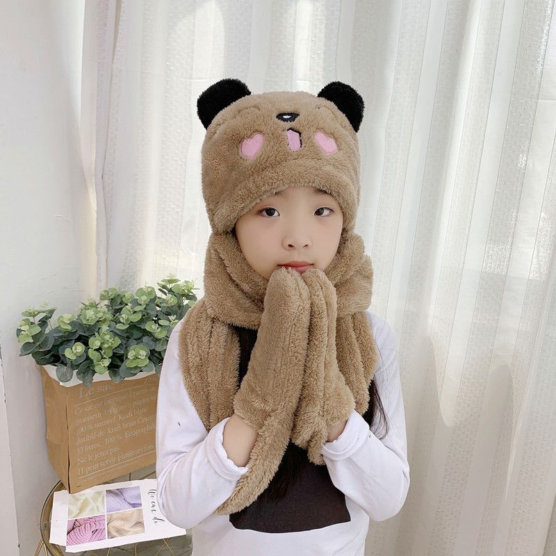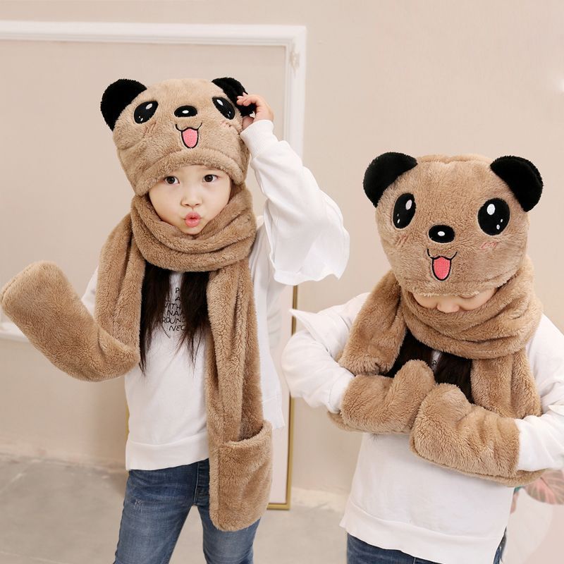 秋冬季儿童帽子围巾手套三件套一体加厚保暖男女童宝宝帽子学生